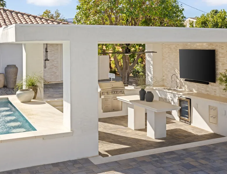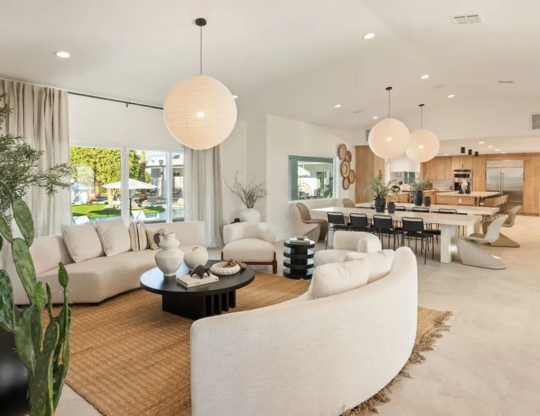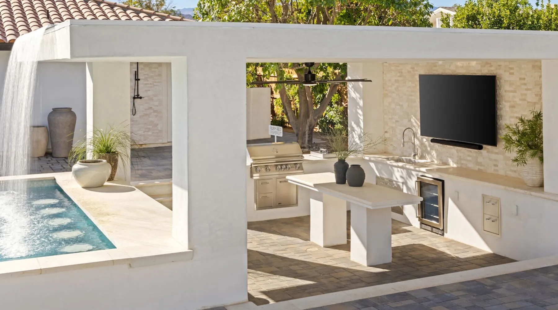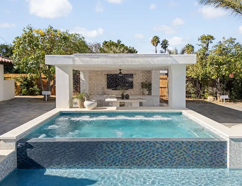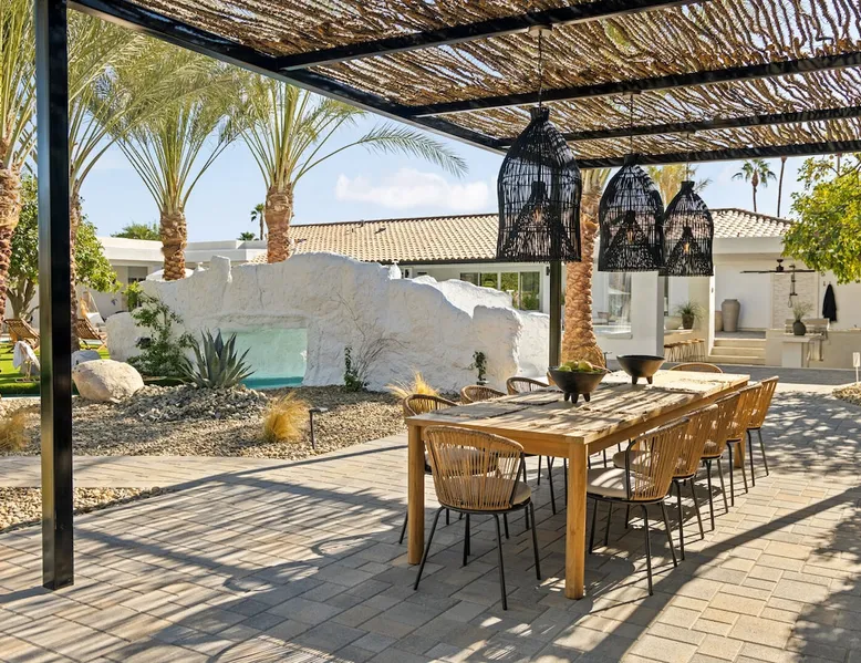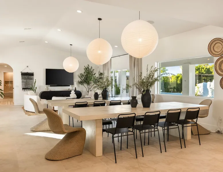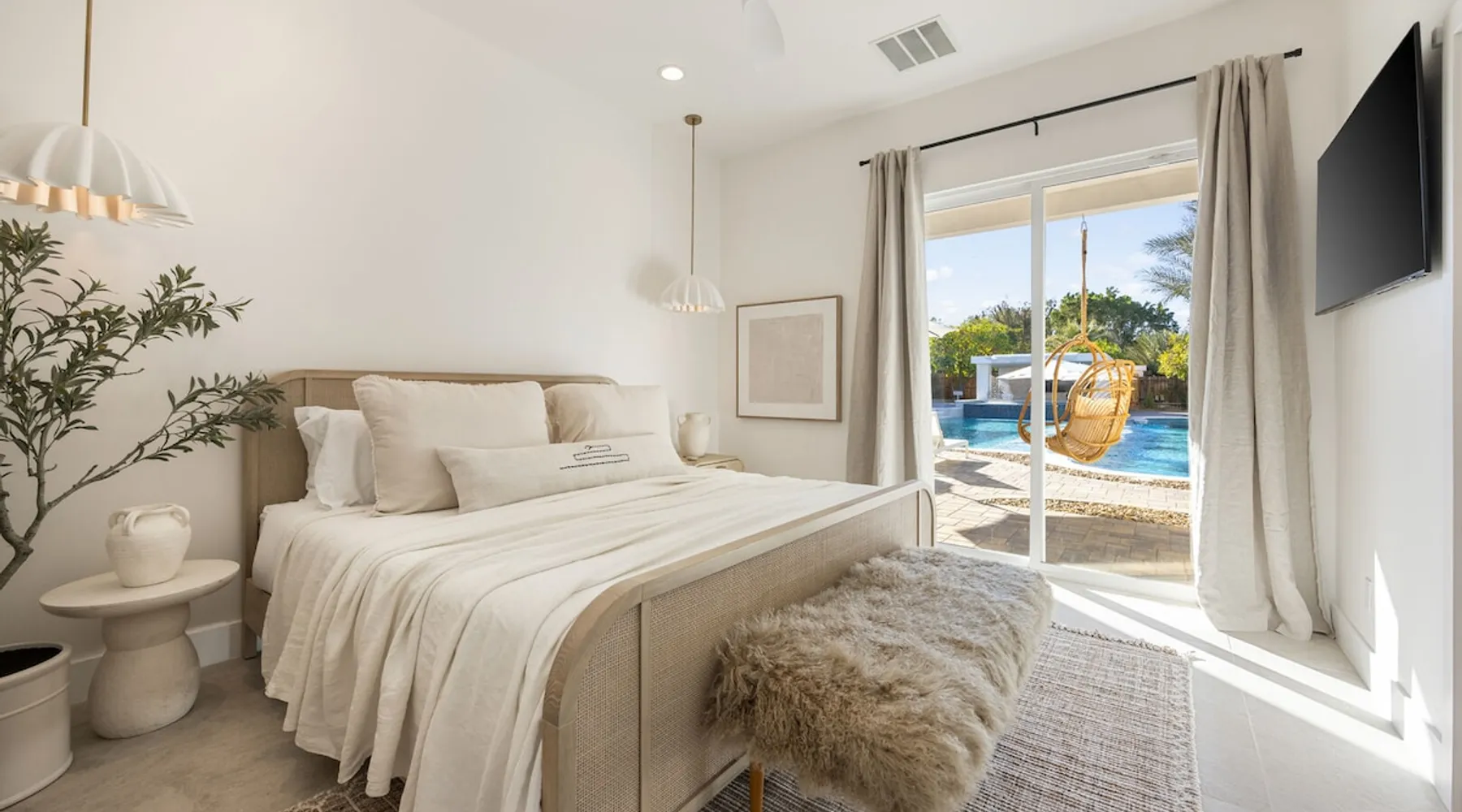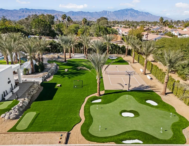 Welcome to Isla, an exclusive TRAVLR Vacation Home! We invite you to discover Isla, a breathtaking luxury vacation home that redefines the art of relaxation and entertainment. Nestled on a sprawling acre of desert land transformed into a pure oasis, this architectural masterpiece spans over 5,400 square feet and is designed to cater to large groups, corporate retreats, and unforgettable events. The space Experience the grounds of Isla and discover the grand central island that gives the property its name. Surrounded by a sparkling lazy river pool that beckons you to jump in and let the moving river take you around. Immerse yourself in the tranquility of cascading waterfalls and enjoy swimming beneath the enchanting grotto. With a thrilling pool slide and expansive lounging areas, every moment spent here is a celebration of leisure. Isla features 10 professionally curated bedrooms with a total of 16 beds and 9 luxurious bathrooms, ensuring comfort and privacy for everyone. The open concept communal spaces are perfect for entertaining, whether you’re hosting a dinner party or a casual gathering. Enjoy the seamless integration of smart home automation, designed for effortless guest use throughout your stay. For the active traveler, Isla boasts a range of amenities that elevate your vacation experience. Inside, there is a dedicated game room with TV, billiards table, ping pong and small gym. Challenge friends to a match on the sport court made for pickleball and basketball or play around on the expansive putting green with chipping area and sand traps. Enjoy a leisurely afternoon in the hammock garden or engage in friendly competition on the bocce ball court. The expansive green lawn is perfect for soccer, football, or a fun game of cornhole, while the fire pit invites cozy evenings under the stars. The outdoor kitchen is a culinary dream, perfect for preparing gourmet meals or enjoying a barbecue with loved ones. And as the sun sets, the magical ambiance of Isla comes alive, providing the ultimate backdrop for memorable evenings. Isla isn’t just a vacation rental; it’s a destination where luxury meets adventure, and every detail is curated for your enjoyment. Come experience the unparalleled beauty and sophistication of Isla, where your dream getaway awaits. Uno is the primary suite furnished with a king-sized bed and en suite bathroom with walk-in shower and separate tub and private access to the expansive backyard Dos: King bed, reach in closet and shared hall bathroom Tres: King bed & en suite bathroom Cuatro: King bed & en suite bathroom Cinco: Two sets of full size bunks (4 beds), direct patio access & en suite bathroom Seis: Two sets of full size bunks (4 beds), direct patio access & en suite bathroom Siete: King bed, direct patio access & Jack n Jill bathroom shared with Ocho Ocho: King bed, direct patio access & Jack n Jill bathroom shared with Siete Nueve: King bed, direct patio access & Jack n Jill bathroom shared with Diez Diez: King bed, direct patio access & Jack n Jill bathroom shared with Nueve Bed Summary: 8 King, 8 Full (4 sets of bunk beds). Queen Size Air Mattress upon request. Sleeps up to 20. There is space available for up to 8 cars total. Street parking is not permitted. Oversized vehicles are not permitted. Permit #: STR2024-0331 Guest access TRAVLR Vacation Home properties are accessible using a keyless system that allows entry into the home for your entire stay. Arrival information, including access codes will be emailed 5-days prior to your arrival. Other things to note - FREQUENTLY ASKED QUESTIONS - WHAT TIME IS CHECK-IN AND CHECK OUT? Check in is after 3PM local time, and check out is no later than 11AM. Early check in and late check out may be available for your reservation upon request. Please reach out for the cost and availability. WILL I NEED TO MEET THE PROPERTY MANAGER TO GET A KEY? TRAVLR Vacation Home properties are accessible using a keyless system that allows entry into the home for your entire stay. DO YOU PROVIDE DAILY CLEANING SERVICE? TRAVLR Vacation Homes provides a departure clean on all stays. A mid-week or mid-stay clean can be provided for an additional fee. CAN WE HAVE THE POOL HEATED? During the winter, the temperature of pools can range between 50-70 degrees. If you would like the pool to be heated to 80-82 degrees, we do charge a fee of $300/night. Please let your property manager know at least 48-hours in advance of your arrival if you would like pool heat added to your reservation. WHAT IS PROVIDED WITH MY ACCOMMODATIONS? All of our vacation rentals are furnished and have a kitchen with amenities including a microwave, coffee maker, toaster and blender. Each property is stocked with cooking and serving items including plates, bowls and utensils, as well as a can opener, corkscrew measuring spoons and more. The coffee maker takes ground coffee and we also offer a spice rack, salt and pepper. There are bath towels, pool towels and bed linens. We also provide an initial supply of trash liners, toilet paper, hand soap and dishwasher soap. Bathrooms are stocked with shampoo, conditioner and liquid body wash. Laundry facilities are also equipped with laundry soap and dryer sheets. CAN I SHIP A PACKAGE TO MY VACATION HOME? We do not recommend shipping directly to the home, we do not have mailbox keys, and there are many different people with access to the home: vendors, housekeeping, Guest Services staff, etc... so we cannot be responsible for packages once delivered. DO YOUR HOMES HAVE OUTDOOR MUSIC SYSTEMS? Yes! The entire property both inside and out is filled with speakers that are setup in different zones so you can enjoy it wherever you are and even have different music playing in different areas. To use, simply download the Sonos app and connect to our Wi-Fi system. You can then control your music from Spotify, Apple Music and more. Due to city regulations though, the outdoor music speakers will not work between the hours of 9PM a