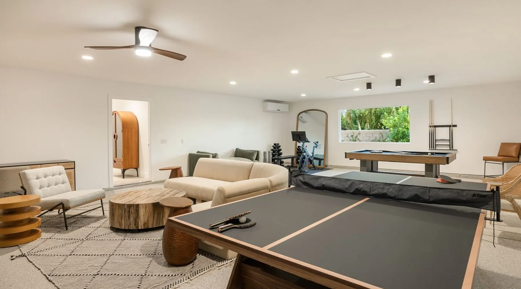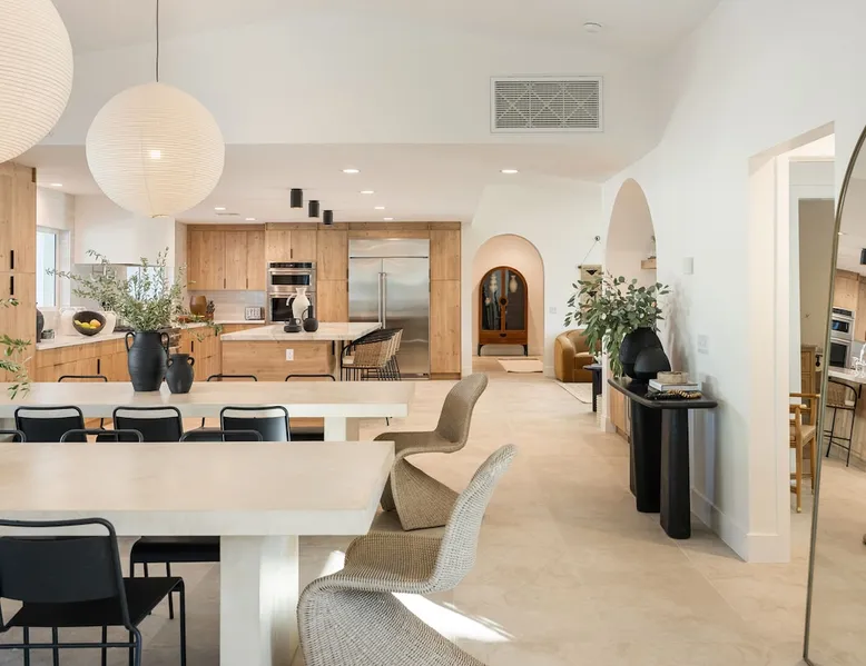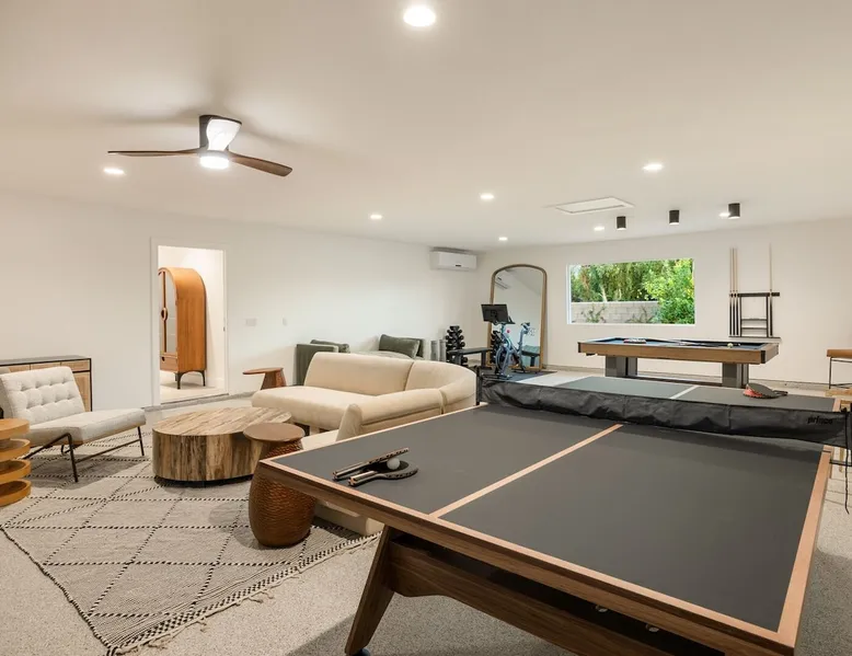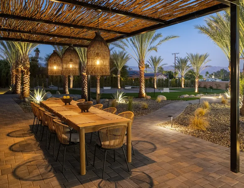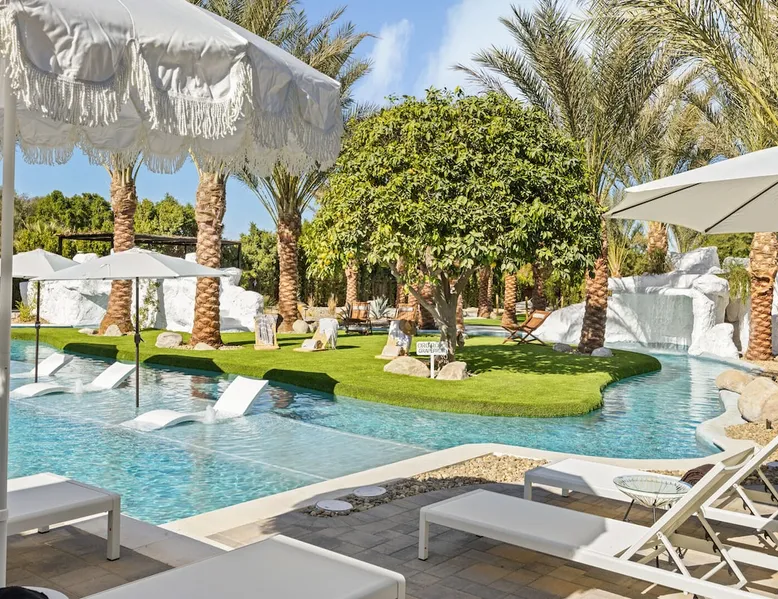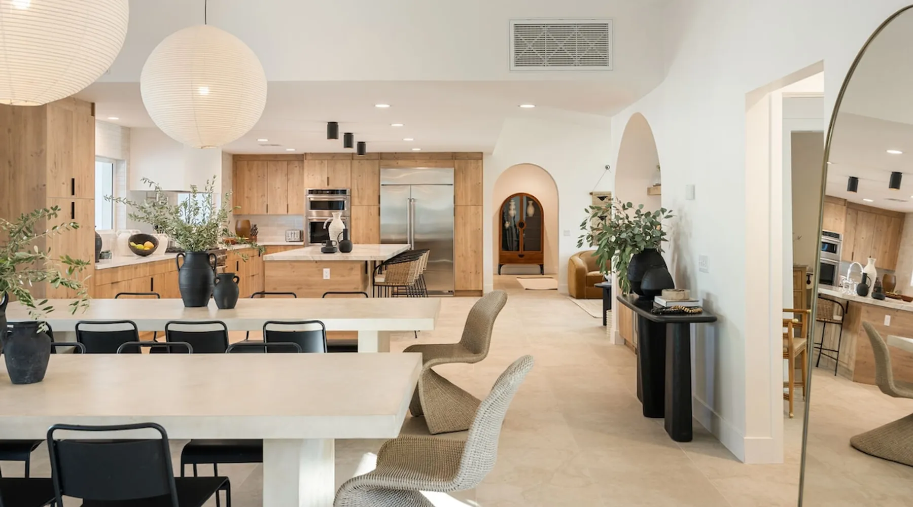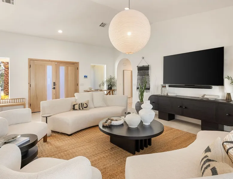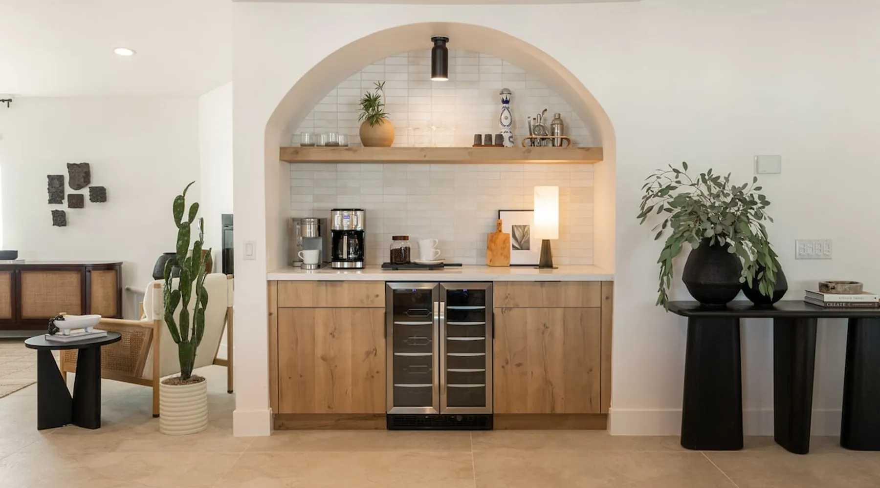 Welcome to Isla, an exclusive TRAVLR Vacation Home! We invite you to discover Isla, a breathtaking luxury vacation home that redefines the art of relaxation and entertainment. Nestled on a sprawling acre of desert land transformed into a pure oasis, this architectural masterpiece spans over 5,400 square feet and is designed to cater to large groups, corporate retreats, and unforgettable events. The space Experience the grounds of Isla and discover the grand central island that gives the property its name. Surrounded by a sparkling lazy river pool that beckons you to jump in and let the moving river take you around. Immerse yourself in the tranquility of cascading waterfalls and enjoy swimming beneath the enchanting grotto. With a thrilling pool slide and expansive lounging areas, every moment spent here is a celebration of leisure. Isla features 10 professionally curated bedrooms with a total of 16 beds and 9 luxurious bathrooms, ensuring comfort and privacy for everyone. The open concept communal spaces are perfect for entertaining, whether you’re hosting a dinner party or a casual gathering. Enjoy the seamless integration of smart home automation, designed for effortless guest use throughout your stay. For the active traveler, Isla boasts a range of amenities that elevate your vacation experience. Inside, there is a dedicated game room with TV, billiards table, ping pong and small gym. Challenge friends to a match on the sport court made for pickleball and basketball or play around on the expansive putting green with chipping area and sand traps. Enjoy a leisurely afternoon in the hammock garden or engage in friendly competition on the bocce ball court. The expansive green lawn is perfect for soccer, football, or a fun game of cornhole, while the fire pit invites cozy evenings under the stars. The outdoor kitchen is a culinary dream, perfect for preparing gourmet meals or enjoying a barbecue with loved ones. And as the sun sets, the magical ambiance of Isla comes alive, providing the ultimate backdrop for memorable evenings. Isla isn’t just a vacation rental; it’s a destination where luxury meets adventure, and every detail is curated for your enjoyment. Come experience the unparalleled beauty and sophistication of Isla, where your dream getaway awaits. Uno is the primary suite furnished with a king-sized bed and en suite bathroom with walk-in shower and separate tub and private access to the expansive backyard Dos: King bed, reach in closet and shared hall bathroom Tres: King bed & en suite bathroom Cuatro: King bed & en suite bathroom Cinco: Two sets of full size bunks (4 beds), direct patio access & en suite bathroom Seis: Two sets of full size bunks (4 beds), direct patio access & en suite bathroom Siete: King bed, direct patio access & Jack n Jill bathroom shared with Ocho Ocho: King bed, direct patio access & Jack n Jill bathroom shared with Siete Nueve: King bed, direct patio access & Jack n Jill bathroom shared with Diez Diez: King bed, direct patio access & Jack n Jill bathroom shared with Nueve Bed Summary: 8 King, 8 Full (4 sets of bunk beds). Queen Size Air Mattress upon request. Sleeps up to 20. There is space available for up to 8 cars total. Street parking is not permitted. Oversized vehicles are not permitted. Permit #: STR2024-0331 Guest access TRAVLR Vacation Home properties are accessible using a keyless system that allows entry into the home for your entire stay. Arrival information, including access codes will be emailed 5-days prior to your arrival. Other things to note - FREQUENTLY ASKED QUESTIONS - WHAT TIME IS CHECK-IN AND CHECK OUT? Check in is after 3PM local time, and check out is no later than 11AM. Early check in and late check out may be available for your reservation upon request. Please reach out for the cost and availability. WILL I NEED TO MEET THE PROPERTY MANAGER TO GET A KEY? TRAVLR Vacation Home properties are accessible using a keyless system that allows entry into the home for your entire stay. DO YOU PROVIDE DAILY CLEANING SERVICE? TRAVLR Vacation Homes provides a departure clean on all stays. A mid-week or mid-stay clean can be provided for an additional fee. CAN WE HAVE THE POOL HEATED? During the winter, the temperature of pools can range between 50-70 degrees. If you would like the pool to be heated to 80-82 degrees, we do charge a fee of $300/night. Please let your property manager know at least 48-hours in advance of your arrival if you would like pool heat added to your reservation. WHAT IS PROVIDED WITH MY ACCOMMODATIONS? All of our vacation rentals are furnished and have a kitchen with amenities including a microwave, coffee maker, toaster and blender. Each property is stocked with cooking and serving items including plates, bowls and utensils, as well as a can opener, corkscrew measuring spoons and more. The coffee maker takes ground coffee and we also offer a spice rack, salt and pepper. There are bath towels, pool towels and bed linens. We also provide an initial supply of trash liners, toilet paper, hand soap and dishwasher soap. Bathrooms are stocked with shampoo, conditioner and liquid body wash. Laundry facilities are also equipped with laundry soap and dryer sheets. CAN I SHIP A PACKAGE TO MY VACATION HOME? We do not recommend shipping directly to the home, we do not have mailbox keys, and there are many different people with access to the home: vendors, housekeeping, Guest Services staff, etc... so we cannot be responsible for packages once delivered. DO YOUR HOMES HAVE OUTDOOR MUSIC SYSTEMS? Yes! The entire property both inside and out is filled with speakers that are setup in different zones so you can enjoy it wherever you are and even have different music playing in different areas. To use, simply download the Sonos app and connect to our Wi-Fi system. You can then control your music from Spotify, Apple Music and more. Due to city regulations though, the outdoor music speakers will not work between the hours of 9PM a