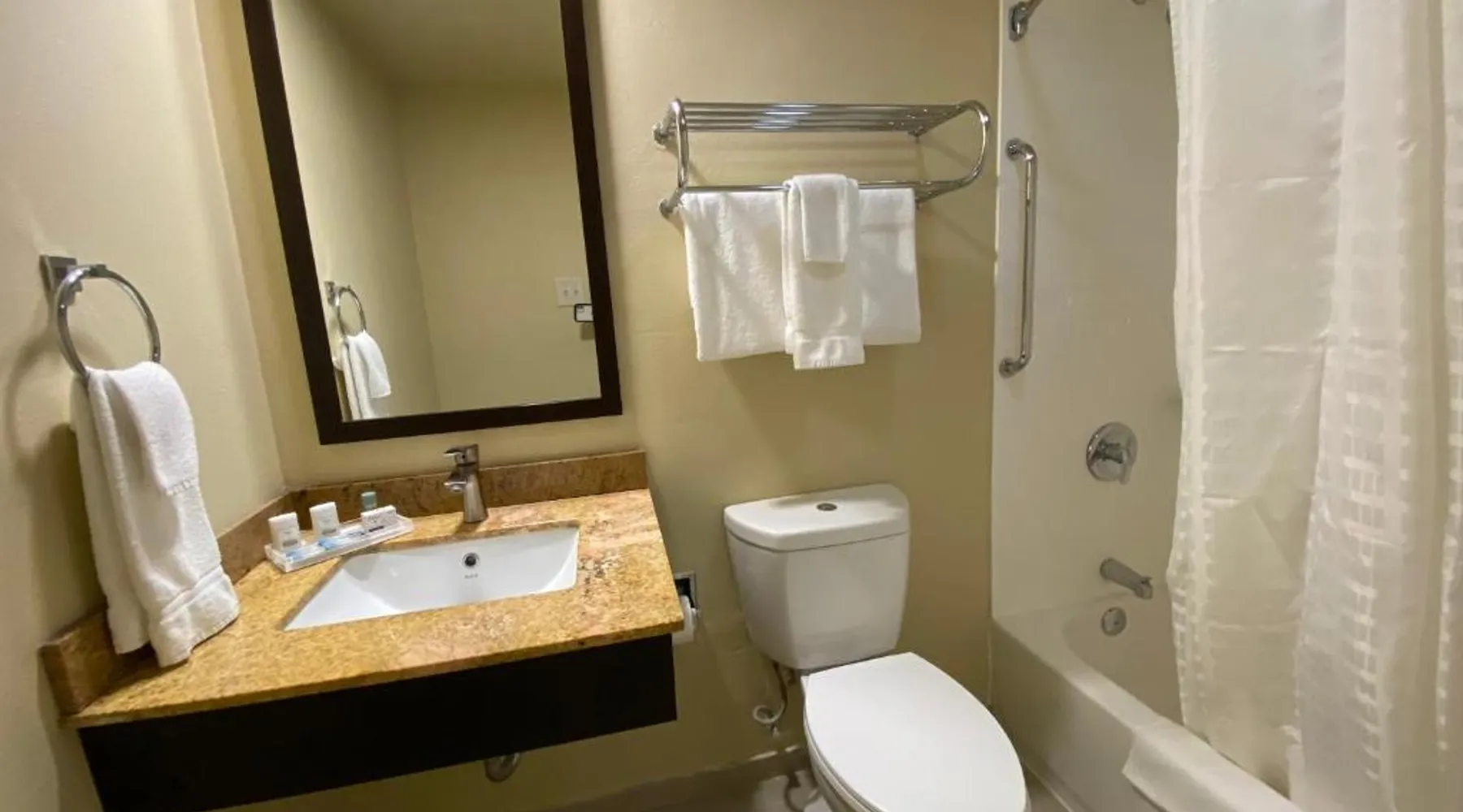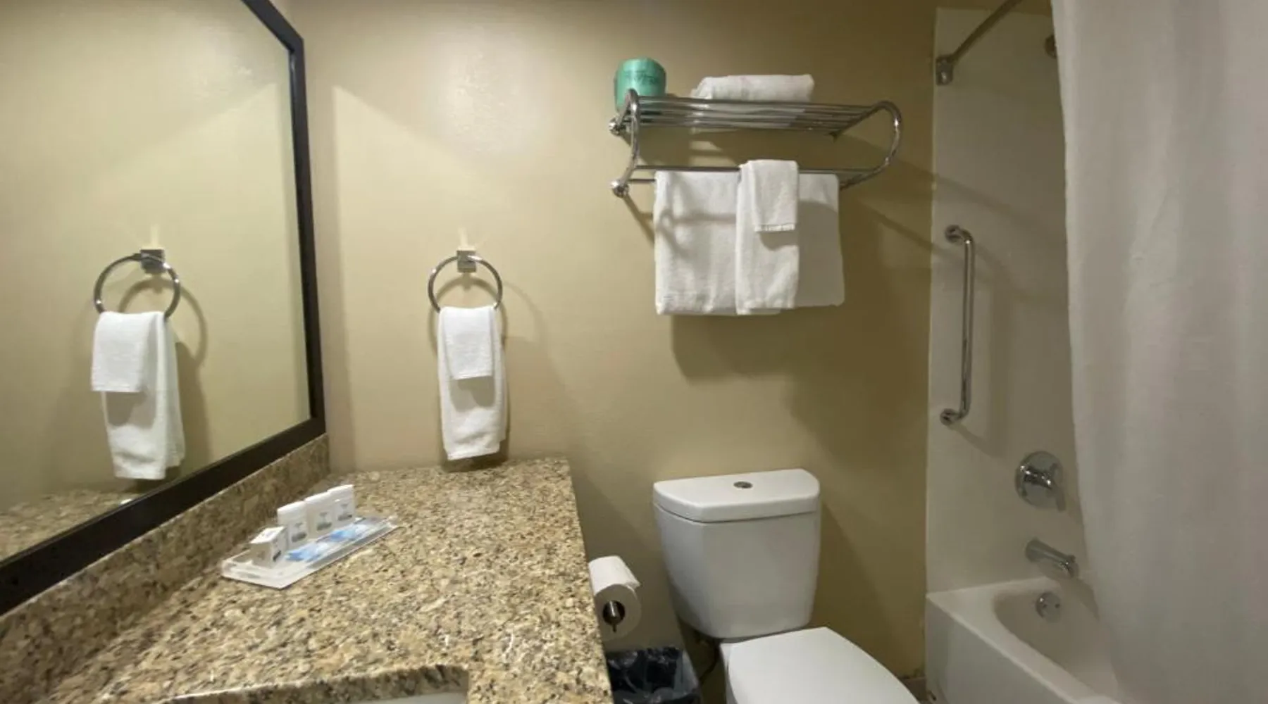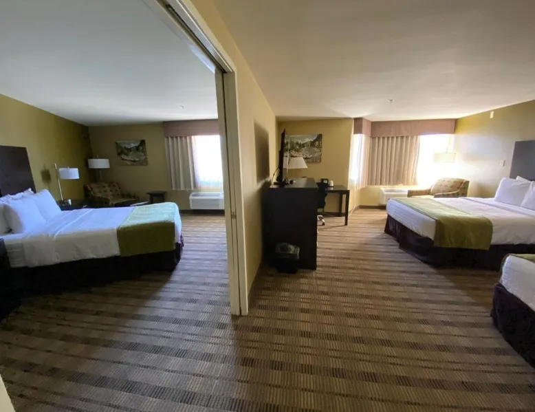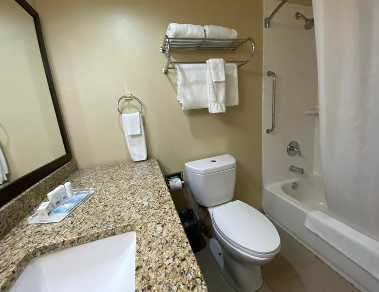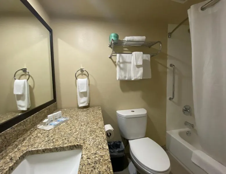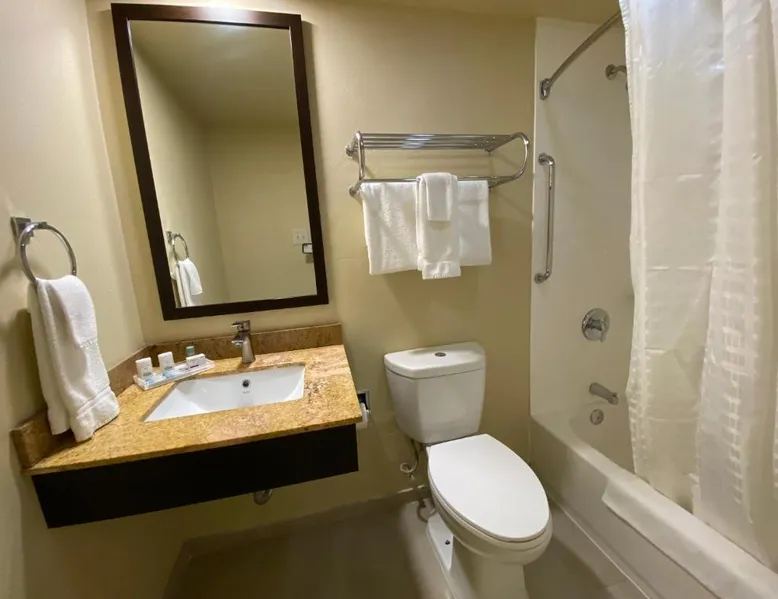 Comfortable Accommodations: Pagosa Lodge in Pagosa Springs offers comfortable rooms with air-conditioning, private bathrooms, and modern amenities. Each room includes a tea and coffee maker, refrigerator, work desk, and free toiletries. Facilities and Services: Guests can enjoy a fitness center, free WiFi, and free on-site private parking. Additional services include a elevator, ski equipment hire, housekeeping, and a picnic area. Breakfast and Dining: A continental breakfast is served daily, featuring fresh pastries, fruits, and juices. The hotel provides a relaxing environment with lake views. Activities and Attractions: Pagosa Lodge is located 19 mi from Chimney Rock National Monument and 29 mi from Wolf Creek Ski Resort. Durango-La Plata County Airport is 56 mi away. Providing free toiletries, this twin room includes a private bathroom with a bath, a shower and a hairdryer. This twin room is air-conditioned and features a flat-screen TV, a tea and coffee maker and heating. The unit offers 3 beds.