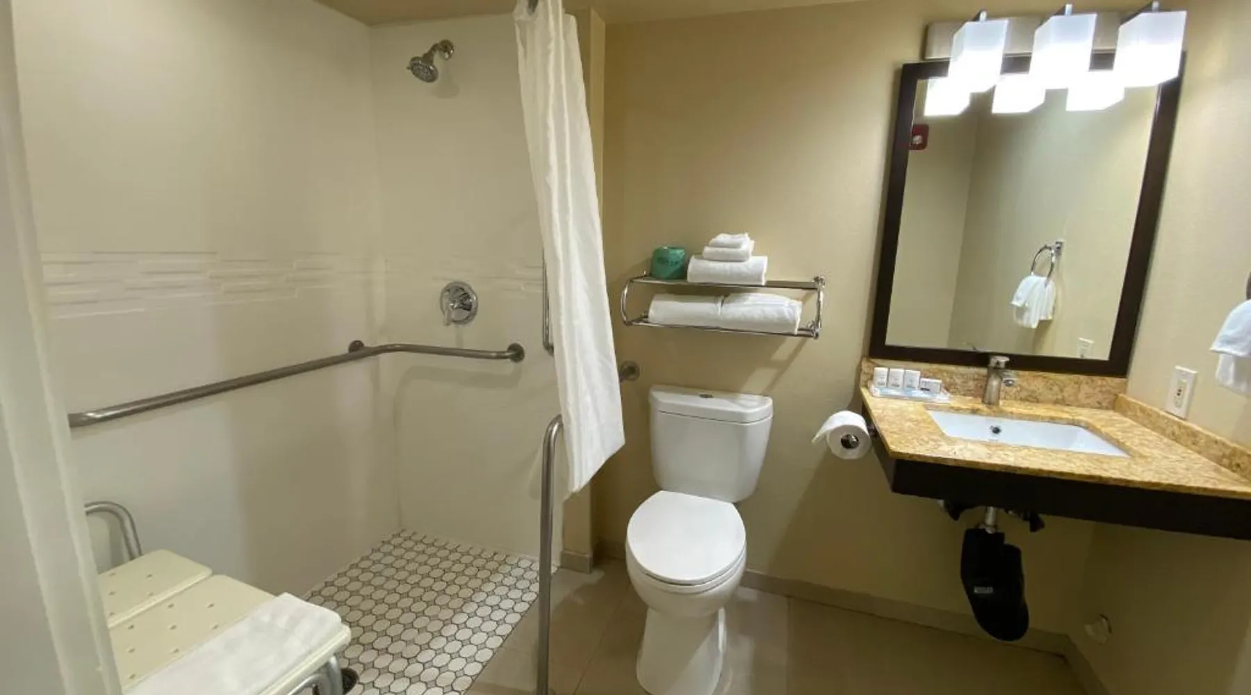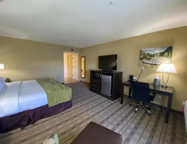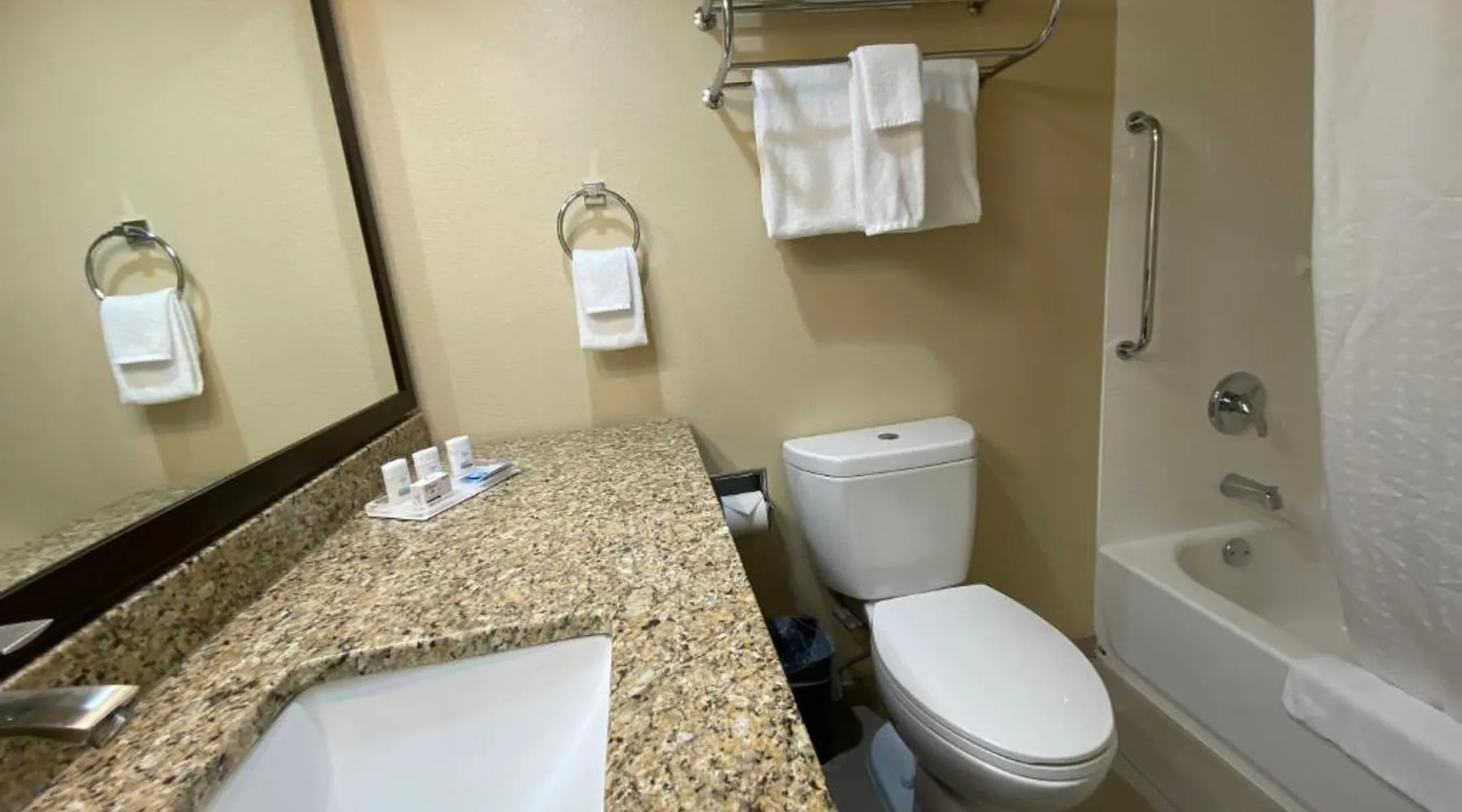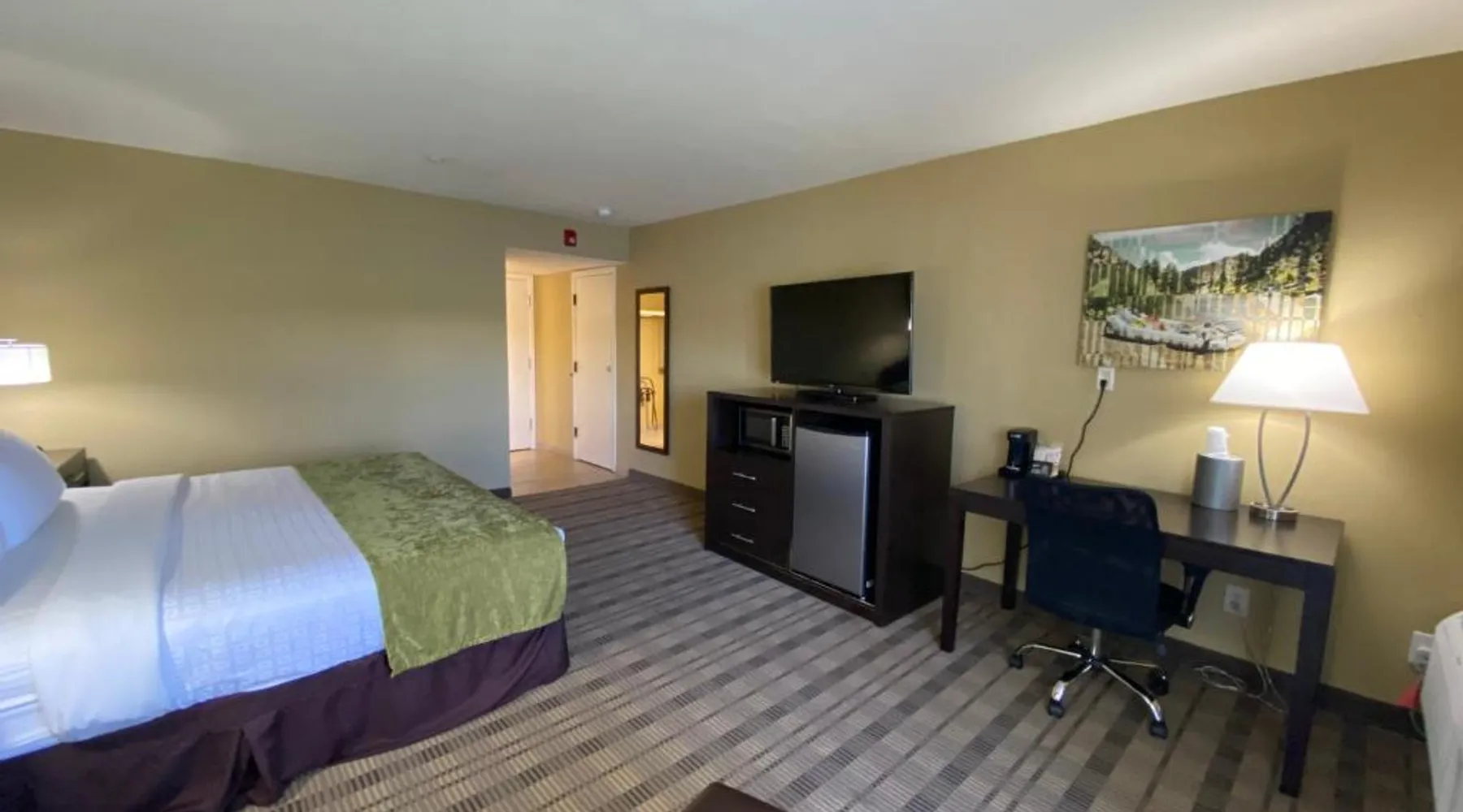 Comfortable Accommodations: Pagosa Lodge in Pagosa Springs offers comfortable rooms with air-conditioning, private bathrooms, and modern amenities. Each room includes a tea and coffee maker, refrigerator, work desk, and free toiletries. Facilities and Services: Guests can enjoy a fitness center, free WiFi, and free on-site private parking. Additional services include a elevator, ski equipment hire, housekeeping, and a picnic area. Breakfast and Dining: A continental breakfast is served daily, featuring fresh pastries, fruits, and juices. The hotel provides a relaxing environment with lake views. Activities and Attractions: Pagosa Lodge is located 19 mi from Chimney Rock National Monument and 29 mi from Wolf Creek Ski Resort. Durango-La Plata County Airport is 56 mi away. Providing free toiletries, this twin room includes a private bathroom with a bath, a shower and a hairdryer. This twin room is air-conditioned and features a flat-screen TV, a tea and coffee maker and heating. The unit offers 3 beds.