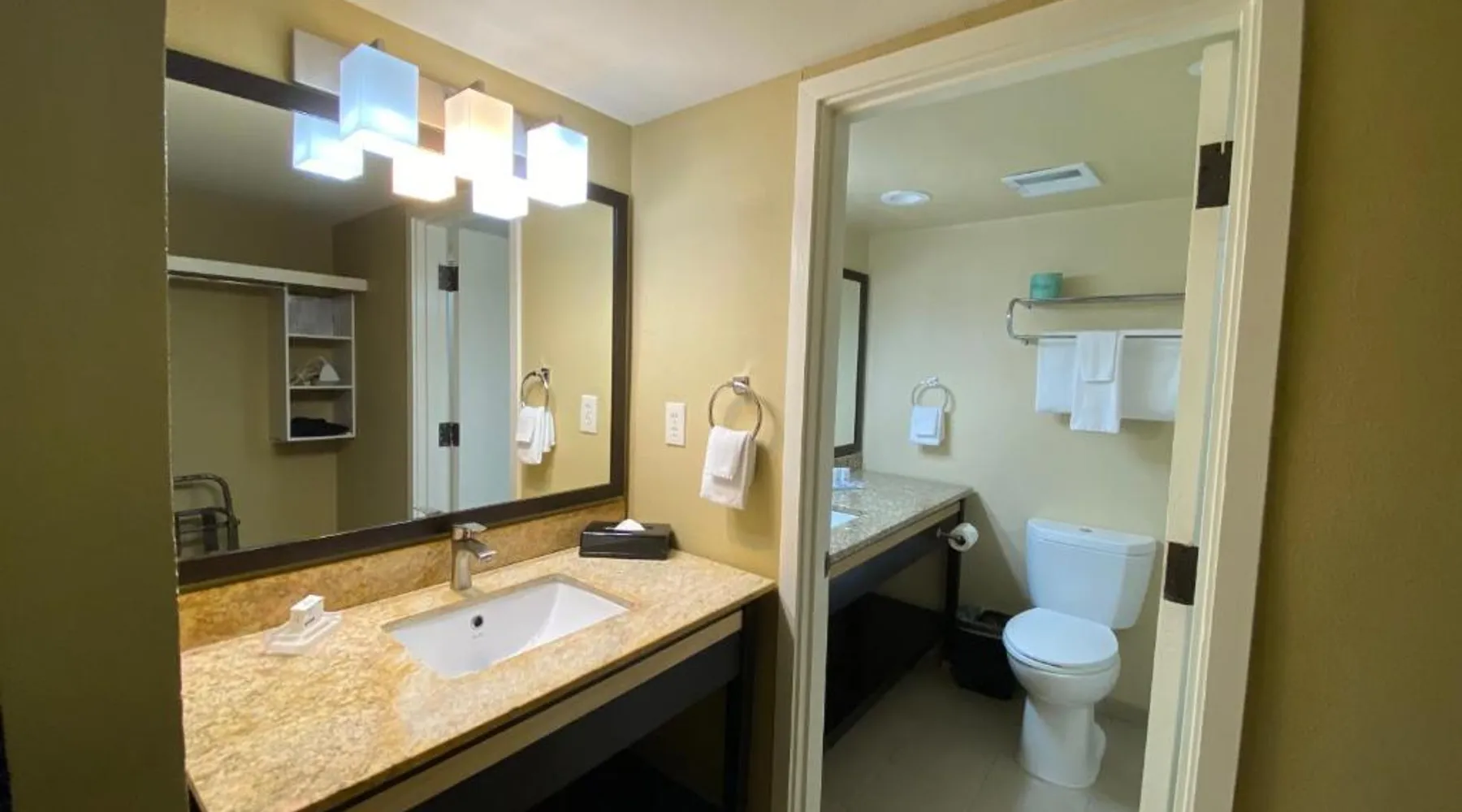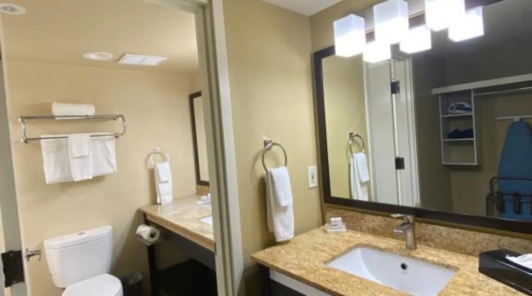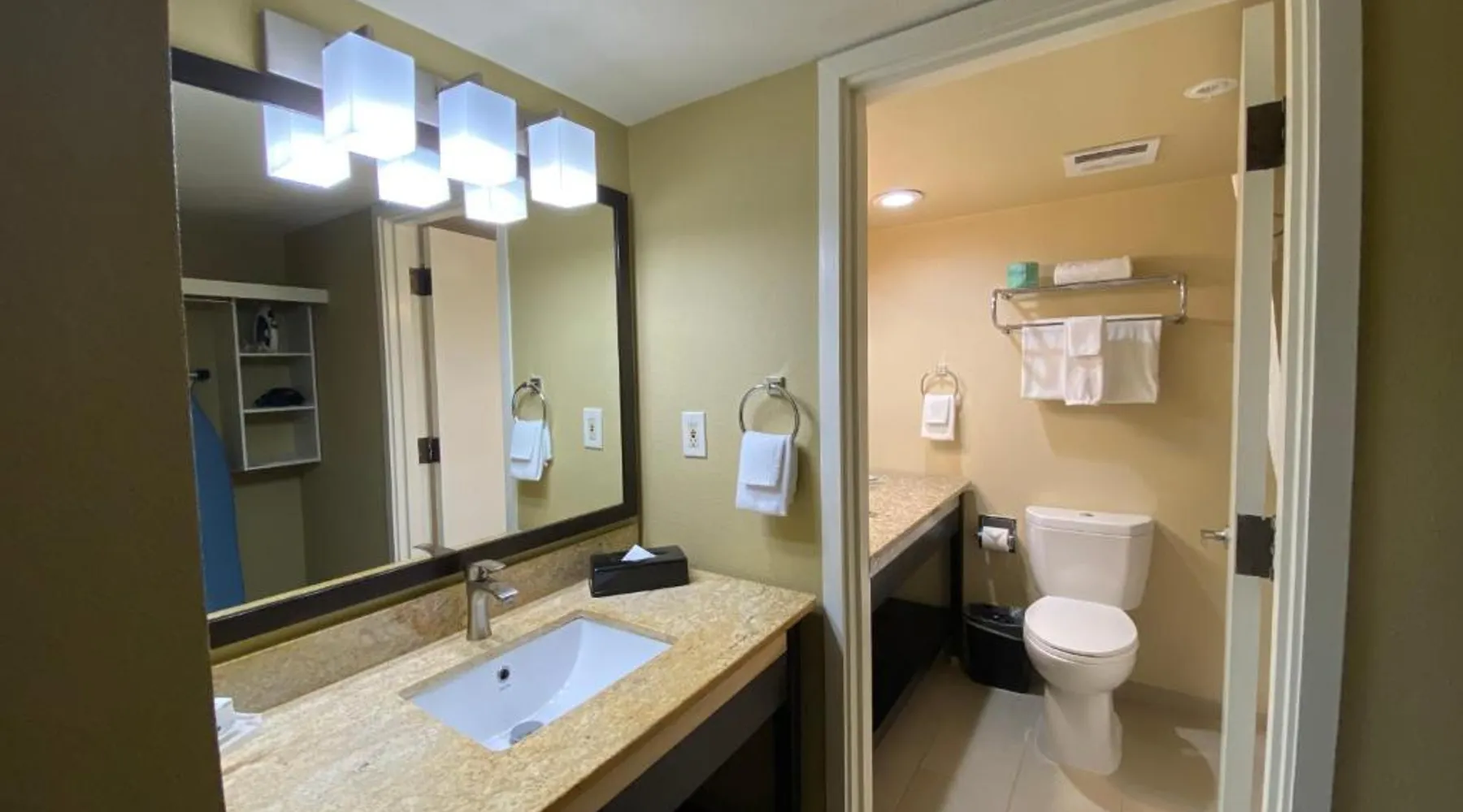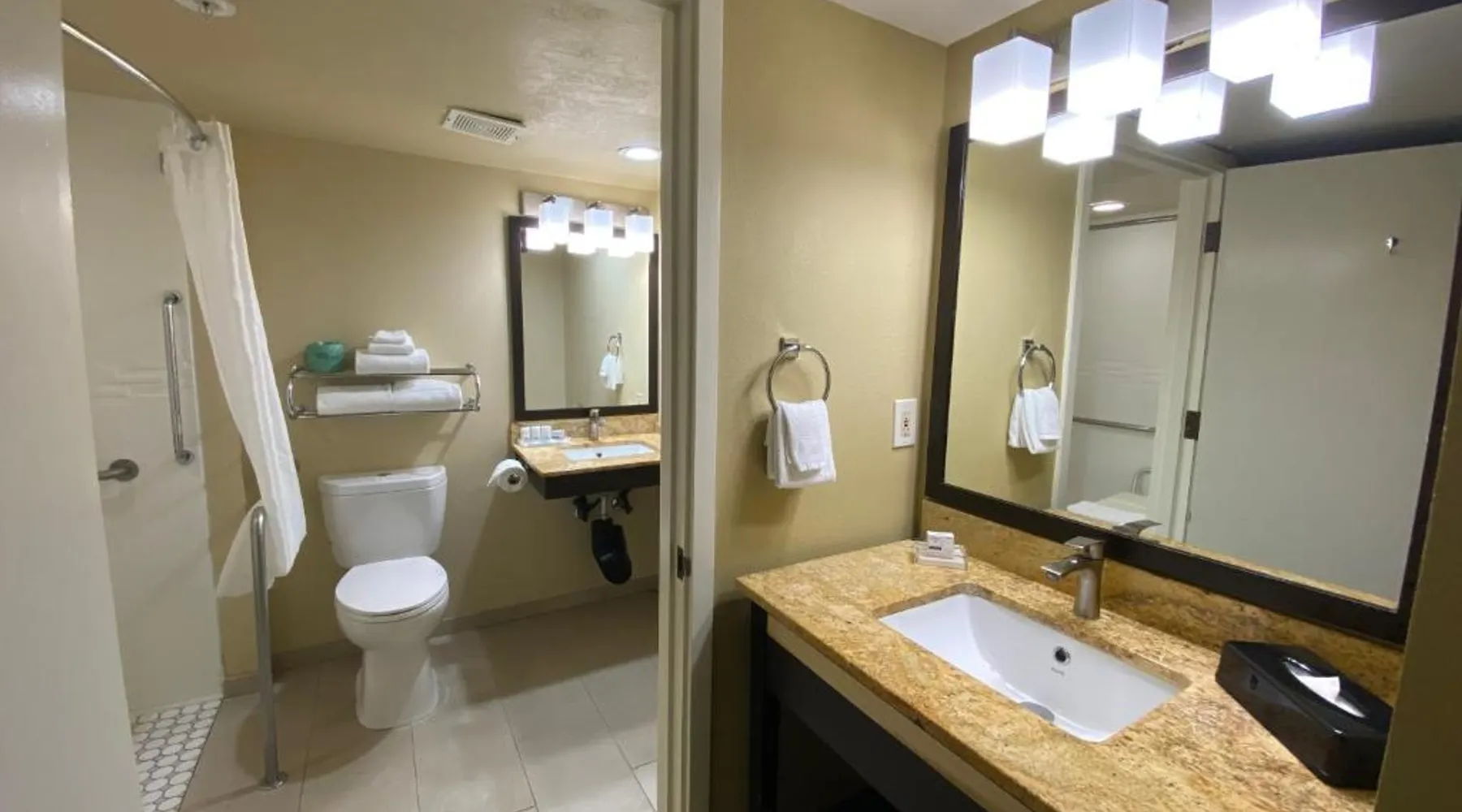 Comfortable Accommodations: Pagosa Lodge in Pagosa Springs offers comfortable rooms with air-conditioning, private bathrooms, and modern amenities. Each room includes a tea and coffee maker, refrigerator, work desk, and free toiletries. Facilities and Services: Guests can enjoy a fitness center, free WiFi, and free on-site private parking. Additional services include a elevator, ski equipment hire, housekeeping, and a picnic area. Breakfast and Dining: A continental breakfast is served daily, featuring fresh pastries, fruits, and juices. The hotel provides a relaxing environment with lake views. Activities and Attractions: Pagosa Lodge is located 19 mi from Chimney Rock National Monument and 29 mi from Wolf Creek Ski Resort. Durango-La Plata County Airport is 56 mi away. Providing free toiletries, this twin room includes a private bathroom with a bath, a shower and a hairdryer. This twin room is air-conditioned and features a flat-screen TV, a tea and coffee maker and heating. The unit offers 3 beds.