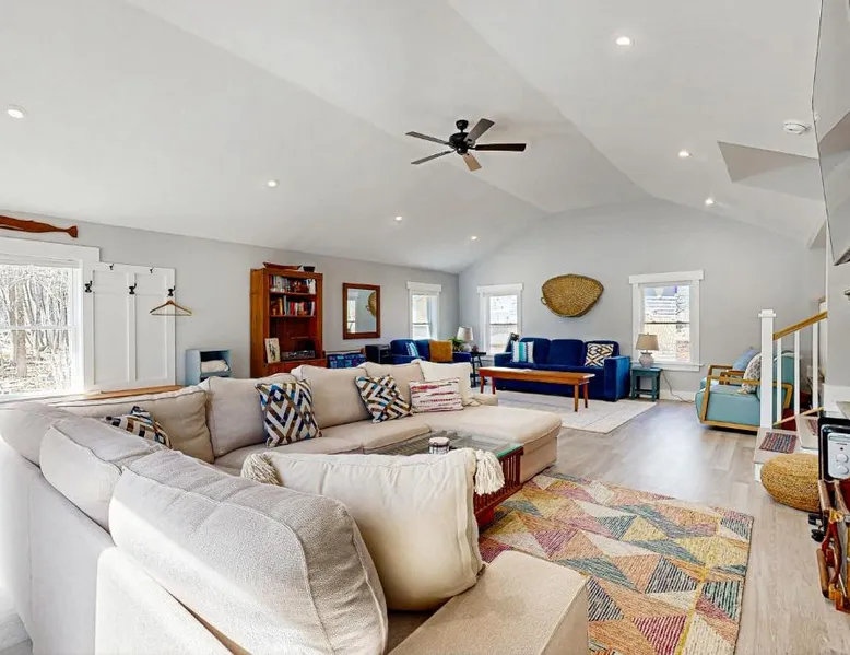 Spacious Holiday Home in Bridgton: Eagle's Nest offers a spacious holiday home in Bridgton, Maine. The property features four bedrooms and two bathrooms, ensuring ample space for all guests. Modern Amenities: The home includes a fully equipped kitchen with a refrigerator, oven, stovetop, microwave, dishwasher, and toaster. Additional amenities include a washing machine, dining area, work desk, and free toiletries. Dining and Leisure: Guests can enjoy meals at the on-site restaurant or relax in the seating area. The property is located a few steps from Highland Lake Beach and close to White Mountain National Forest (21 mi). Portland International Jetport is 39 mi away. The spacious holiday home features 4 bedrooms and 2 bathrooms with a hairdryer and free toiletries. Meals can be prepared in the kitchen, which is equipped with a stovetop, a refrigerator, a dishwasher and kitchenware. The holiday home provides a washing machine, a private entrance, a seating area, a dining area, as well as a flat-screen TV. The unit offers 7 beds.