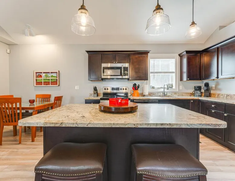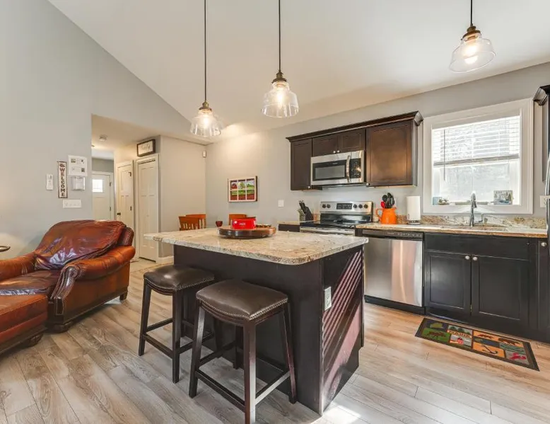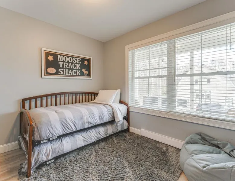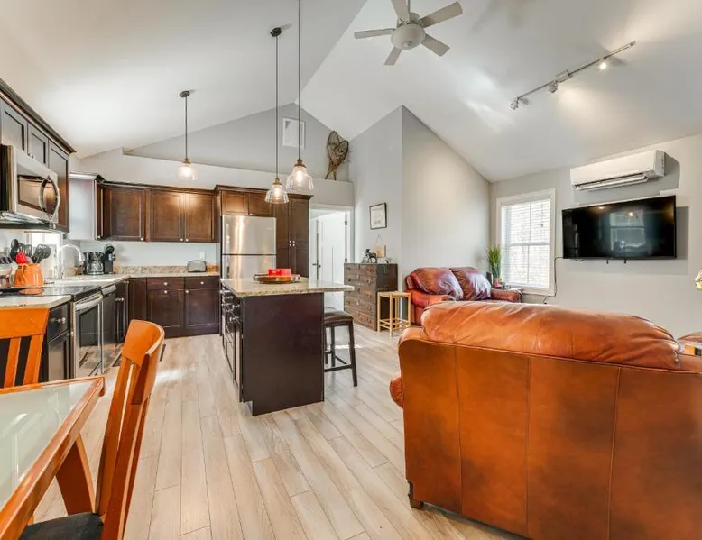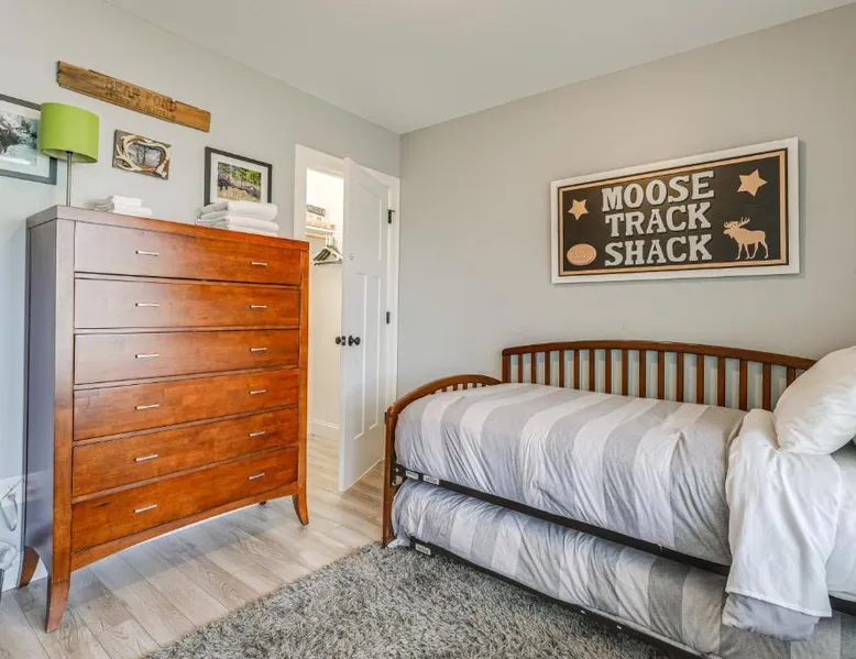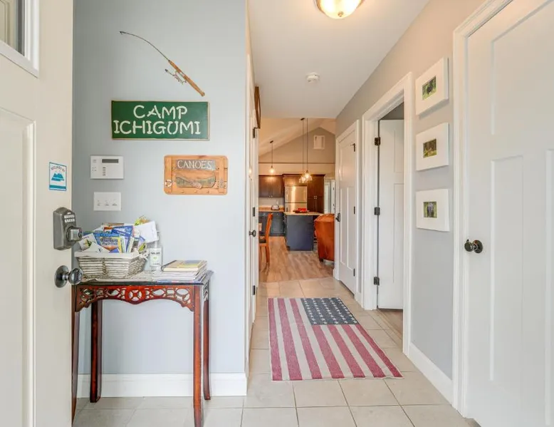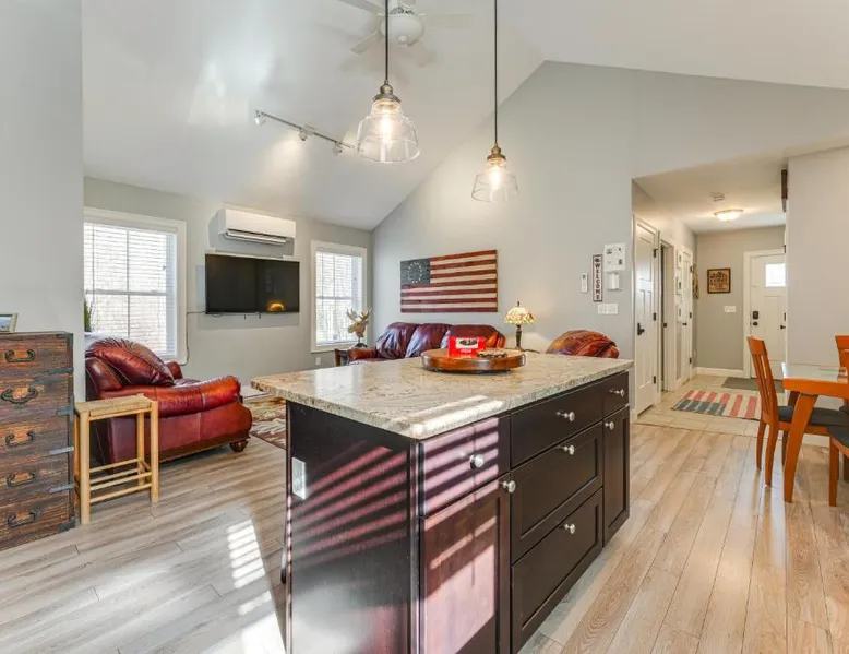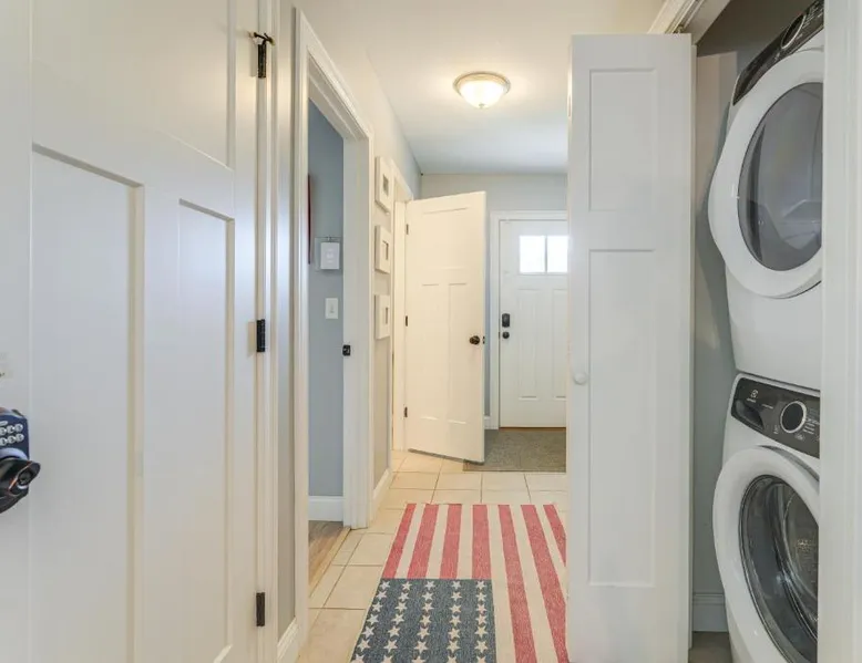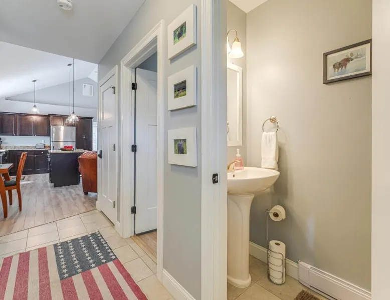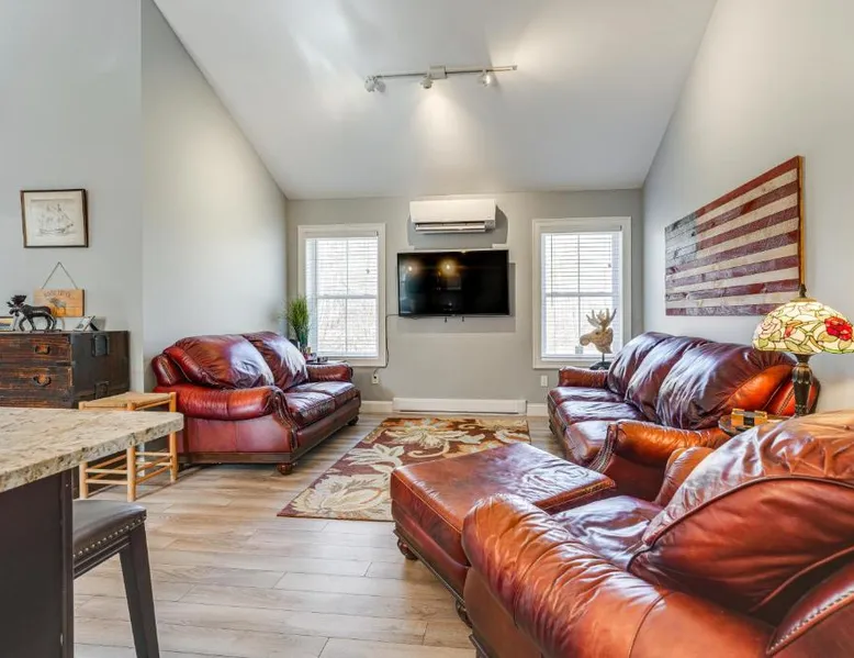 Comfortable Living: Ski, Hike and Boat Modern Bridgton Retreat in Bridgton offers two bedrooms and two bathrooms. The living room includes a dining table and a work desk. Modern Amenities: Guests enjoy free WiFi, air-conditioning, a washing machine, and a fully equipped kitchen with a coffee machine, microwave, dishwasher, and oven. Additional amenities include a hairdryer, free toiletries, and a TV. Convenient Location: Located 43 mi from Portland International Jetport, the property is 19 mi from White Mountain National Forest and 30 mi from Mount Washington Observatory Weather Discovery Center. Featuring a private entrance, this air-conditioned holiday home consists of 1 living room, 2 separate bedrooms and 2 bathrooms with a shower and a hairdryer. Meals can be prepared in the kitchen, which is equipped with a stovetop, a refrigerator, a dishwasher and kitchenware. The holiday home provides a washing machine, a coffee machine, a wardrobe, tumble dryer, as well as a flat-screen TV with cable channels. The unit offers 3 beds.