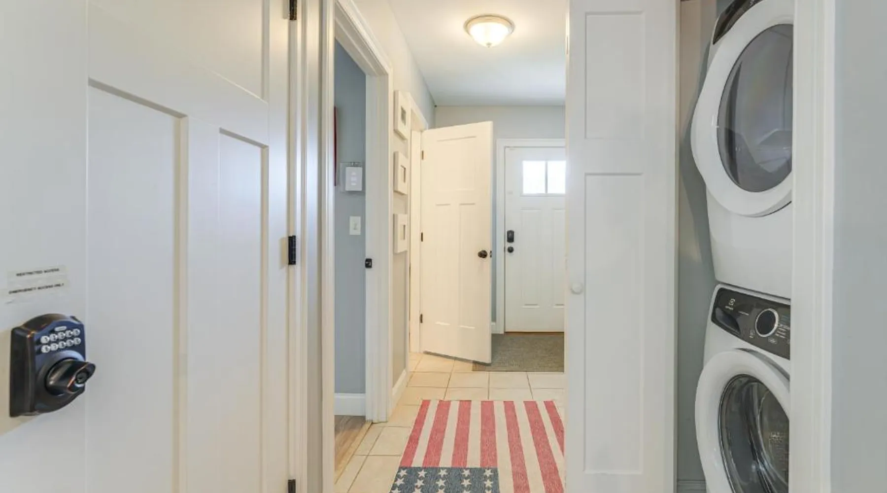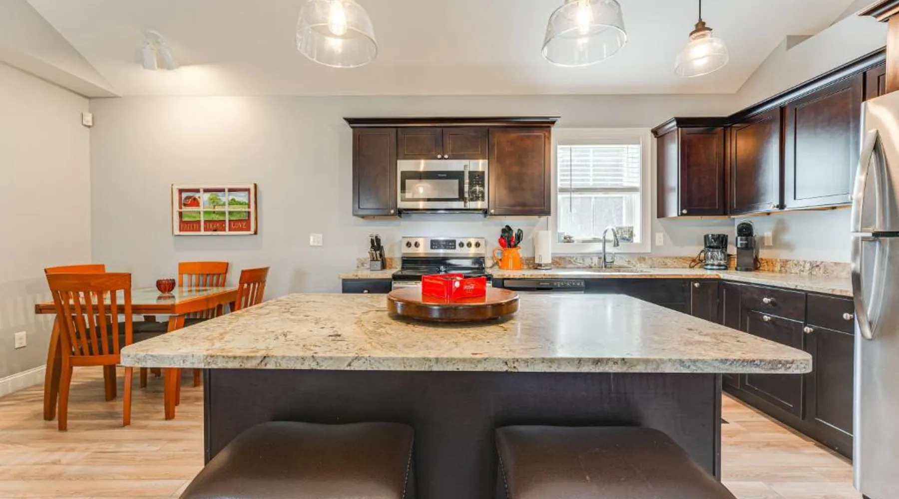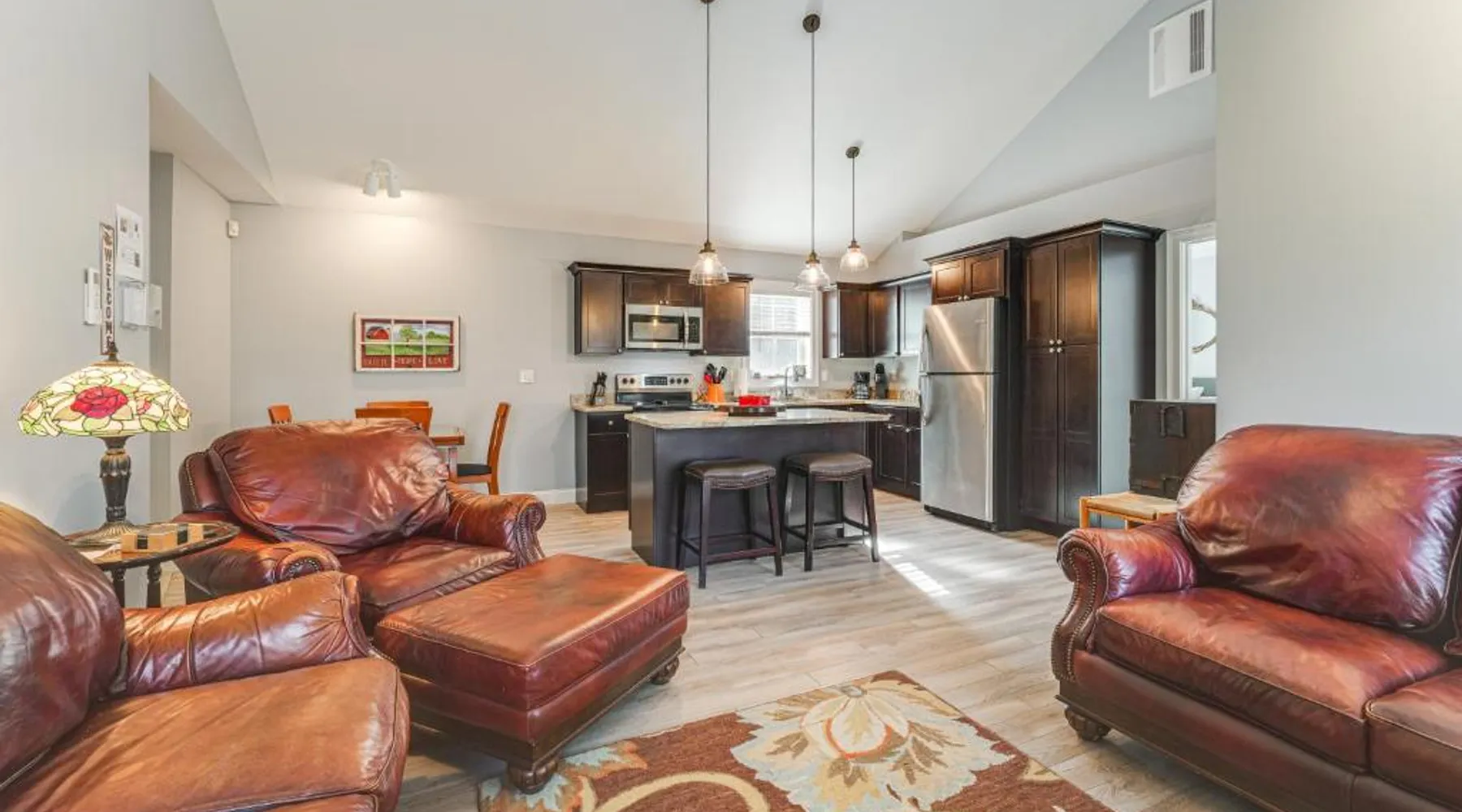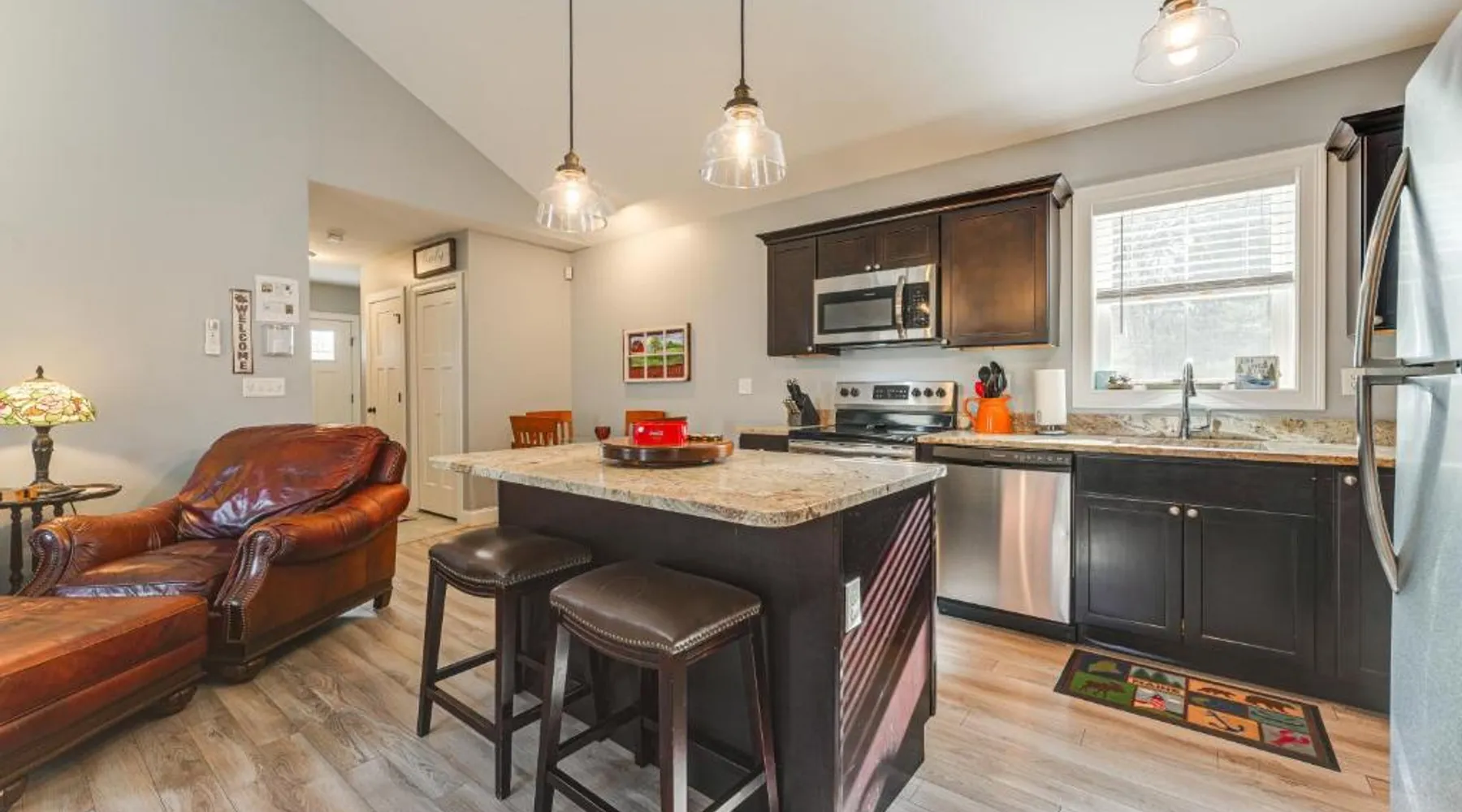 Comfortable Living: Ski, Hike and Boat Modern Bridgton Retreat in Bridgton offers two bedrooms and two bathrooms. The living room includes a dining table and a work desk. Modern Amenities: Guests enjoy free WiFi, air-conditioning, a washing machine, and a fully equipped kitchen with a coffee machine, microwave, dishwasher, and oven. Additional amenities include a hairdryer, free toiletries, and a TV. Convenient Location: Located 43 mi from Portland International Jetport, the property is 19 mi from White Mountain National Forest and 30 mi from Mount Washington Observatory Weather Discovery Center. Featuring a private entrance, this air-conditioned holiday home consists of 1 living room, 2 separate bedrooms and 2 bathrooms with a shower and a hairdryer. Meals can be prepared in the kitchen, which is equipped with a stovetop, a refrigerator, a dishwasher and kitchenware. The holiday home provides a washing machine, a coffee machine, a wardrobe, tumble dryer, as well as a flat-screen TV with cable channels. The unit offers 3 beds.