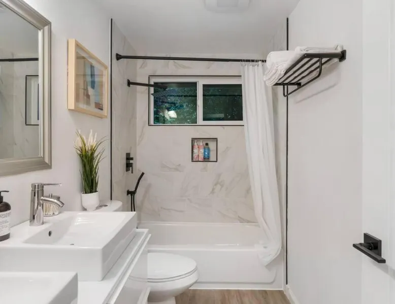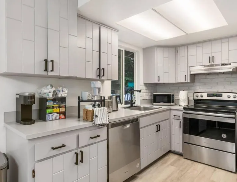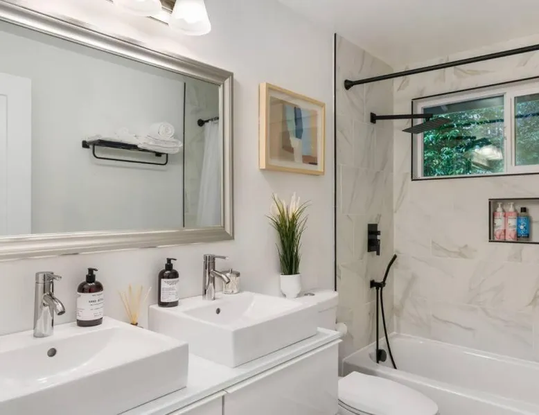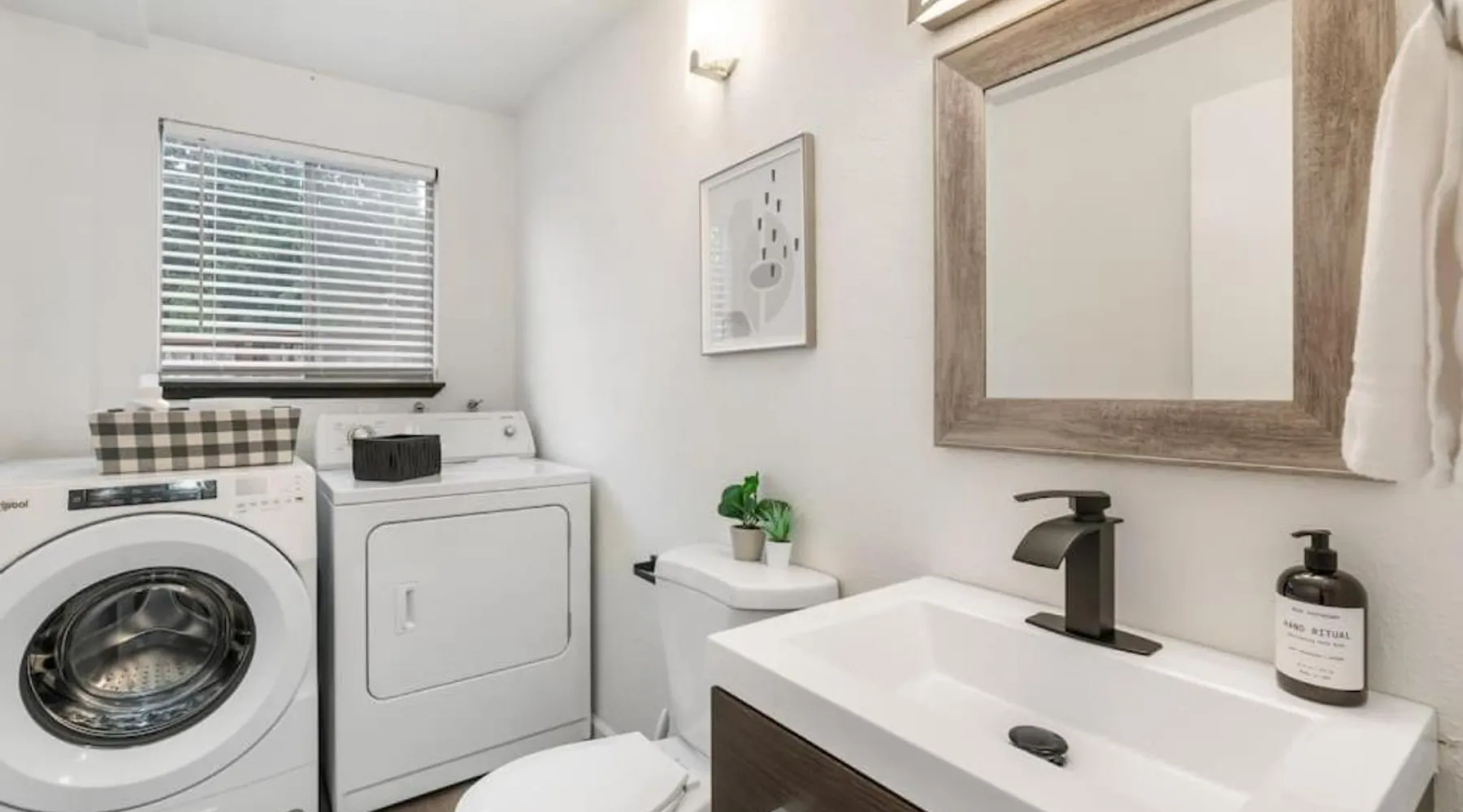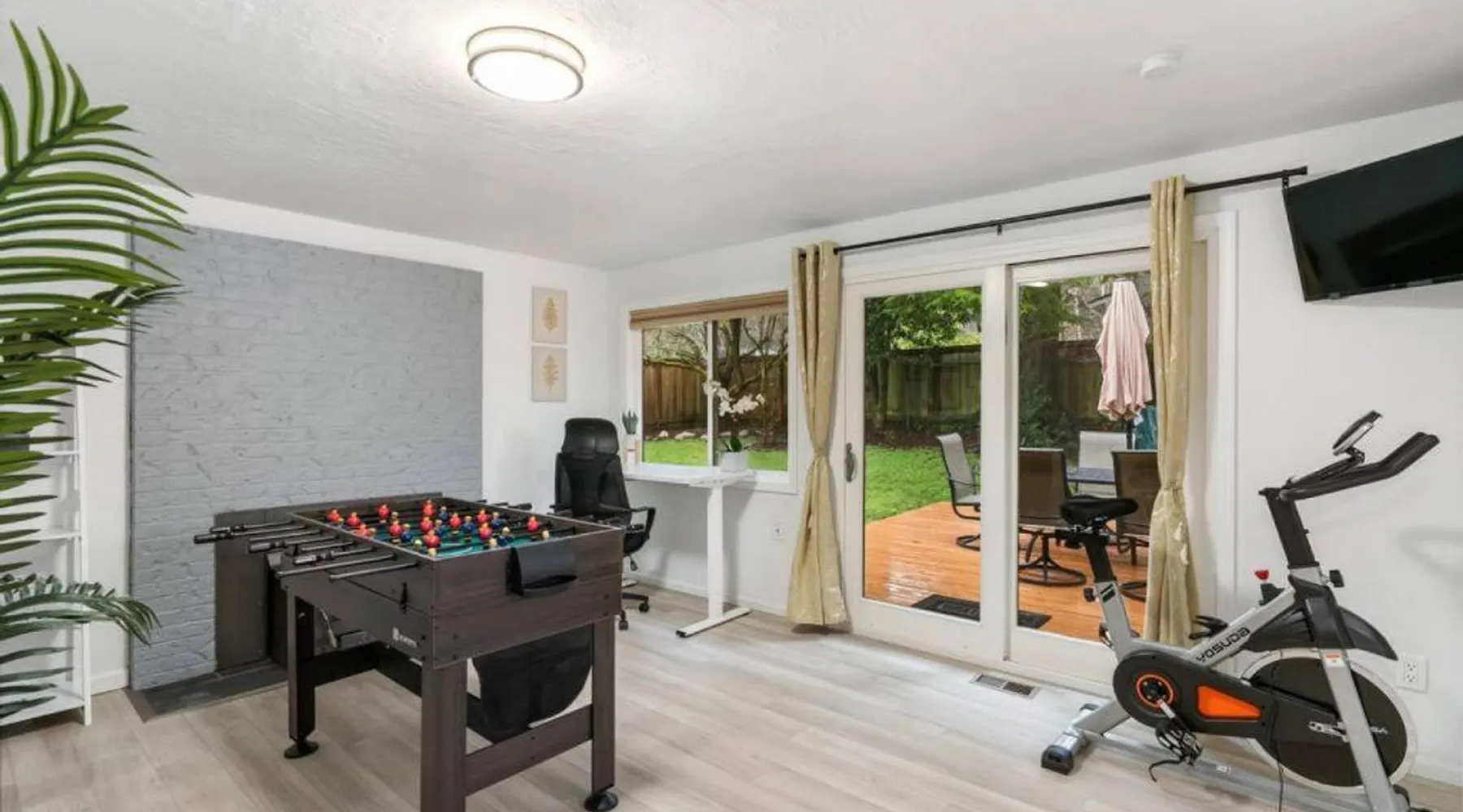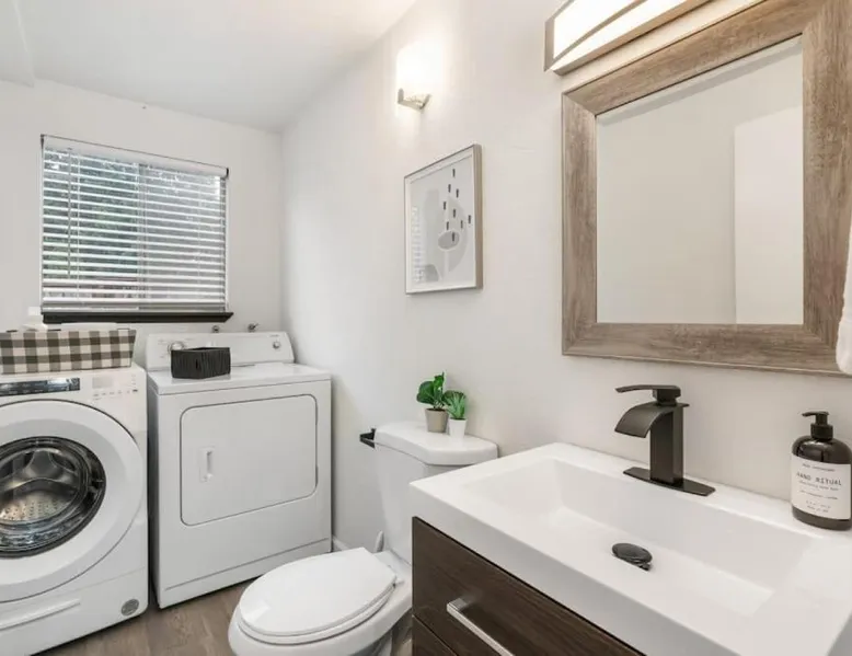 Spacious Accommodations: Comfortable Kirkland Home for Family & Remote Work in Kirkland offers a spacious holiday home with three bedrooms and two bathrooms. The property includes a fully equipped kitchen, air-conditioning, and a work desk. Modern Amenities: Guests enjoy free WiFi, a garden, and a washing machine. The home features a dishwasher, microwave, and a variety of kitchenware. Additional amenities include a TV, hairdryer, and free toiletries. Convenient Location: Located 15 mi from Snohomish County Airport, the property is a 16-minute walk from Juanita Beach Park. Nearby attractions include the Space Needle (16 mi) and the University of Washington (14 mi). The spacious holiday home has 3 bedrooms and 2 bathrooms with a bath and free toiletries. In the well-equipped kitchen, guests will find a stovetop, a refrigerator, a dishwasher and kitchenware. The holiday home offers air conditioning, a washing machine, a tea and coffee maker, tumble dryer, as well as a TV. The unit has 4 beds.