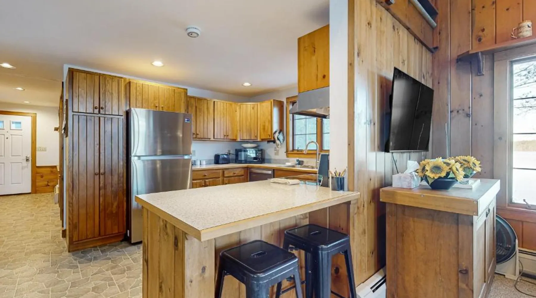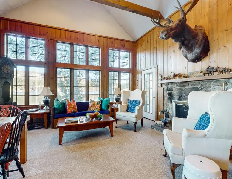 Spacious Holiday Home in Denmark: Moose Haven offers a spacious holiday home in Denmark. The property features four bedrooms and three bathrooms, ensuring ample space for all guests. Exceptional Facilities: Guests can enjoy a restaurant, outdoor fireplace, outdoor seating area, and picnic area. The property also includes a patio, kitchen, barbecue, and lake and mountain views. Comfortable Amenities: The holiday home provides streaming services, a washing machine, and a work desk. Additional amenities include a dishwasher, microwave, and free toiletries. Local Attractions: Located 17 mi from White Mountain National Forest and 45 mi from Portland International Jetport, Moose Haven is close to skiing and other activities. Featuring a private entrance, this spacious holiday home also consists of 4 bedrooms, a seating area and 3 bathrooms with a walk-in shower and a hairdryer. Guests will find a stovetop, a refrigerator, a dishwasher and kitchenware in the kitchen. The holiday home also provides guests with a barbecue. The holiday home provides a flat-screen TV with streaming services, a washing machine, a tea and coffee maker, a dining area as well as lake views. The unit offers 5 beds.