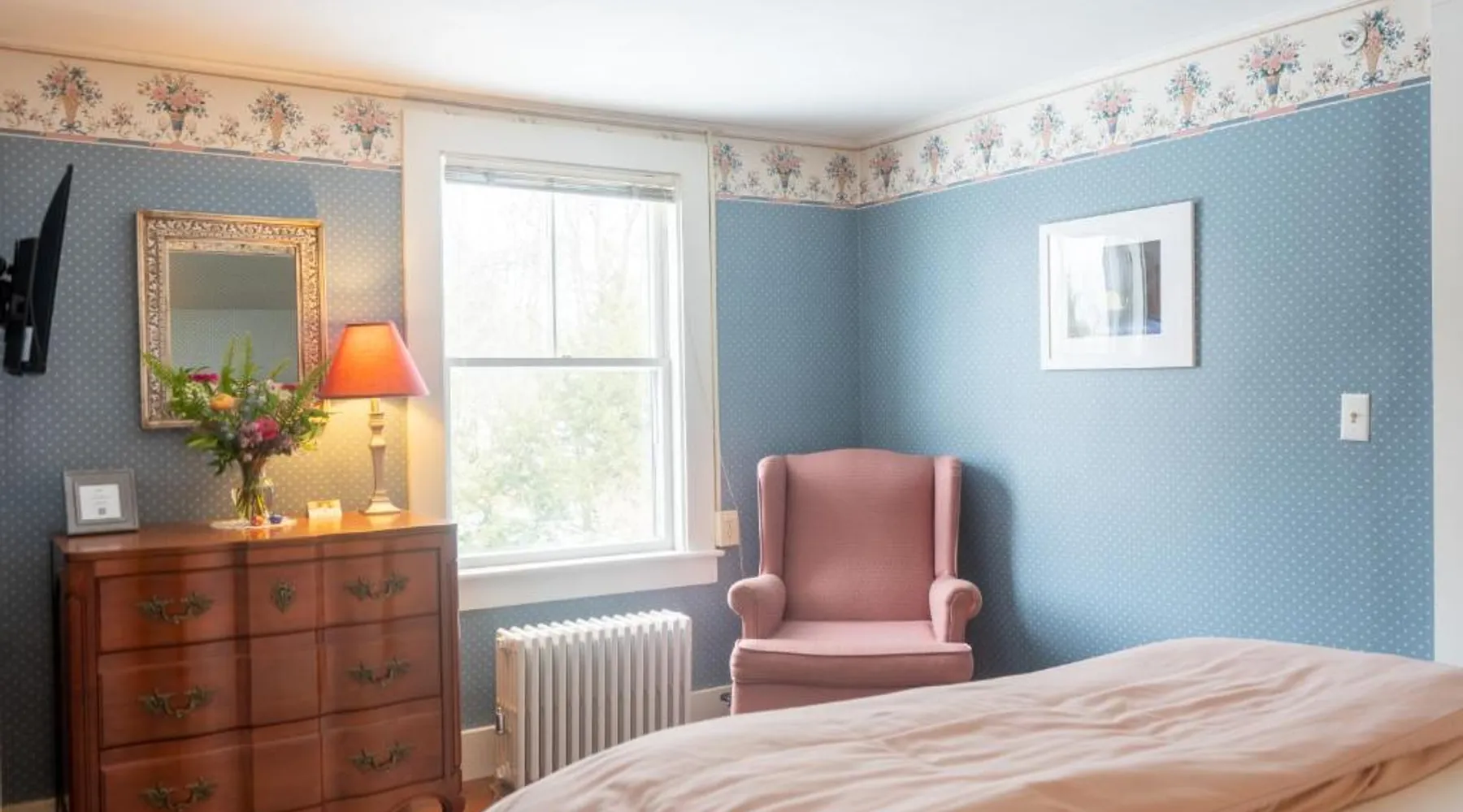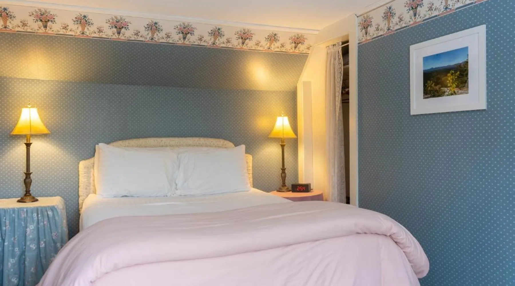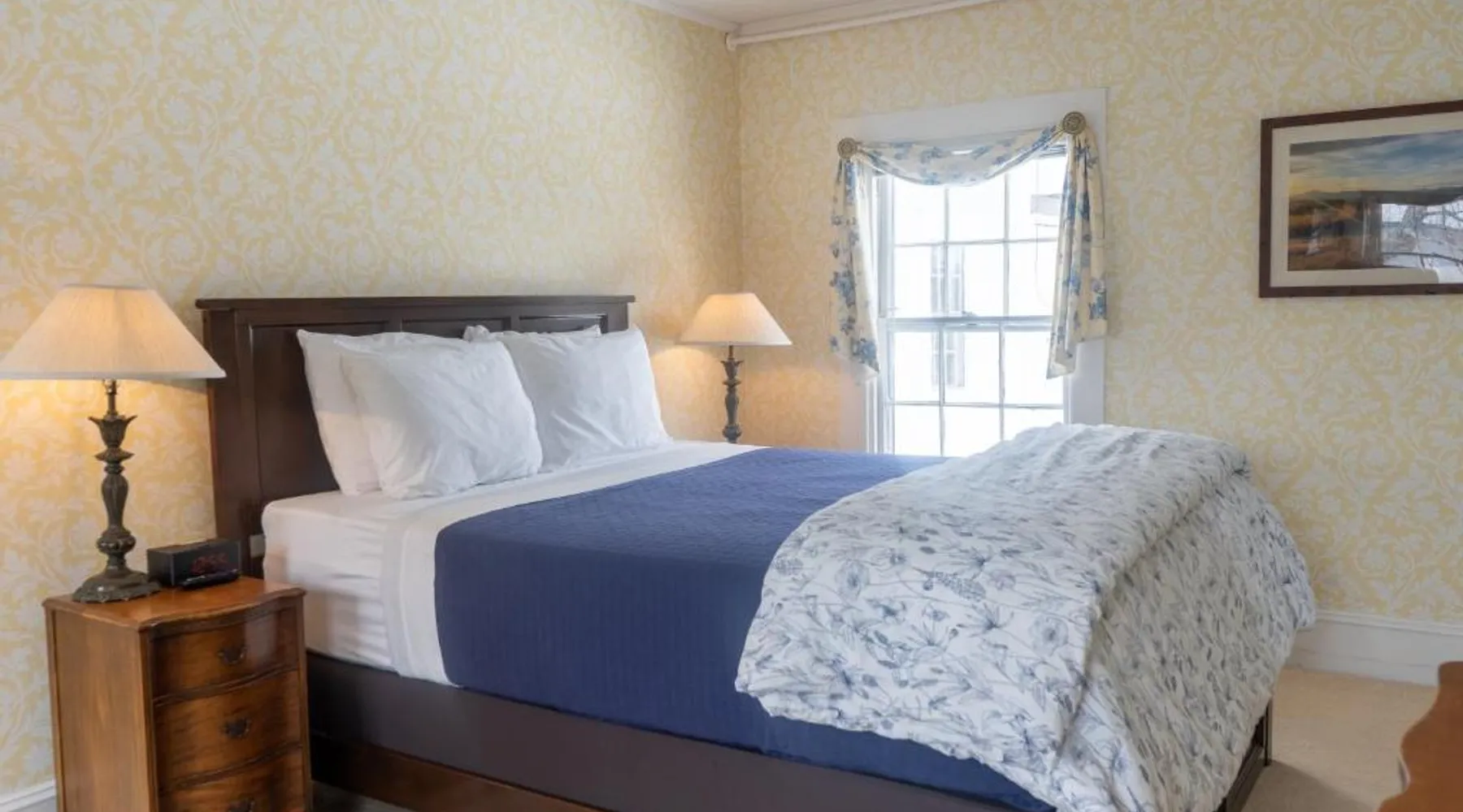 Historic Setting: The White Gables Inn in Fryeburg offers a unique stay within a historic building. Guests enjoy mountain views and a tranquil garden setting. Comfortable Accommodations: Rooms feature air-conditioning, private bathrooms with walk-in showers, and free WiFi. Additional amenities include bathrobes, spa baths, and parquet floors. Dining Experience: A variety of breakfast options are available, including American, vegetarian, vegan, and gluten-free. Breakfast includes warm dishes and juice. Local Attractions: Located 5 mi from White Mountain National Forest and 47 mi from Portland International Jetport. Nearby attractions include Mount Washington Observatory Weather Discovery Center (8.7 mi) and Story Land Amusement Park (16 mi). Providing free toiletries, this double room includes a private bathroom with a walk-in shower and a hairdryer. This double room features air conditioning, a wardrobe, flat-screen TV with streaming services, as well as chocolate for guests. The unit offers 1 bed.