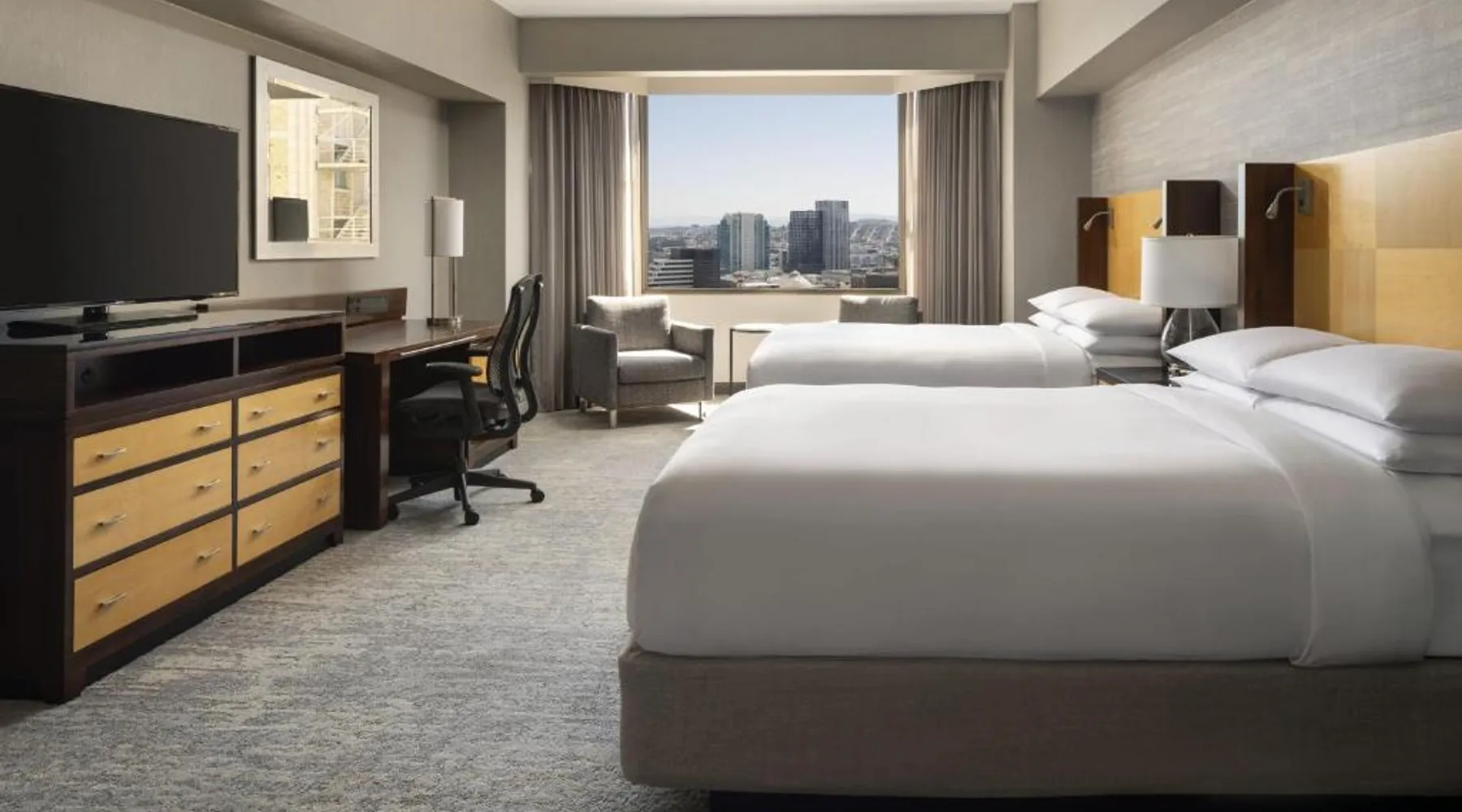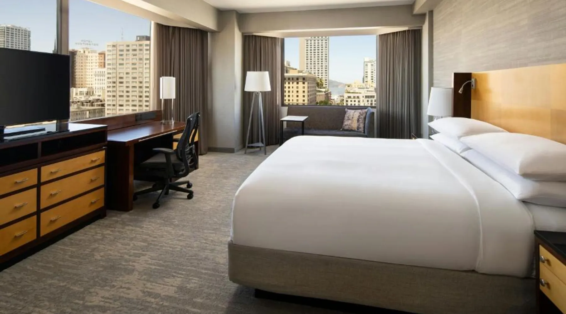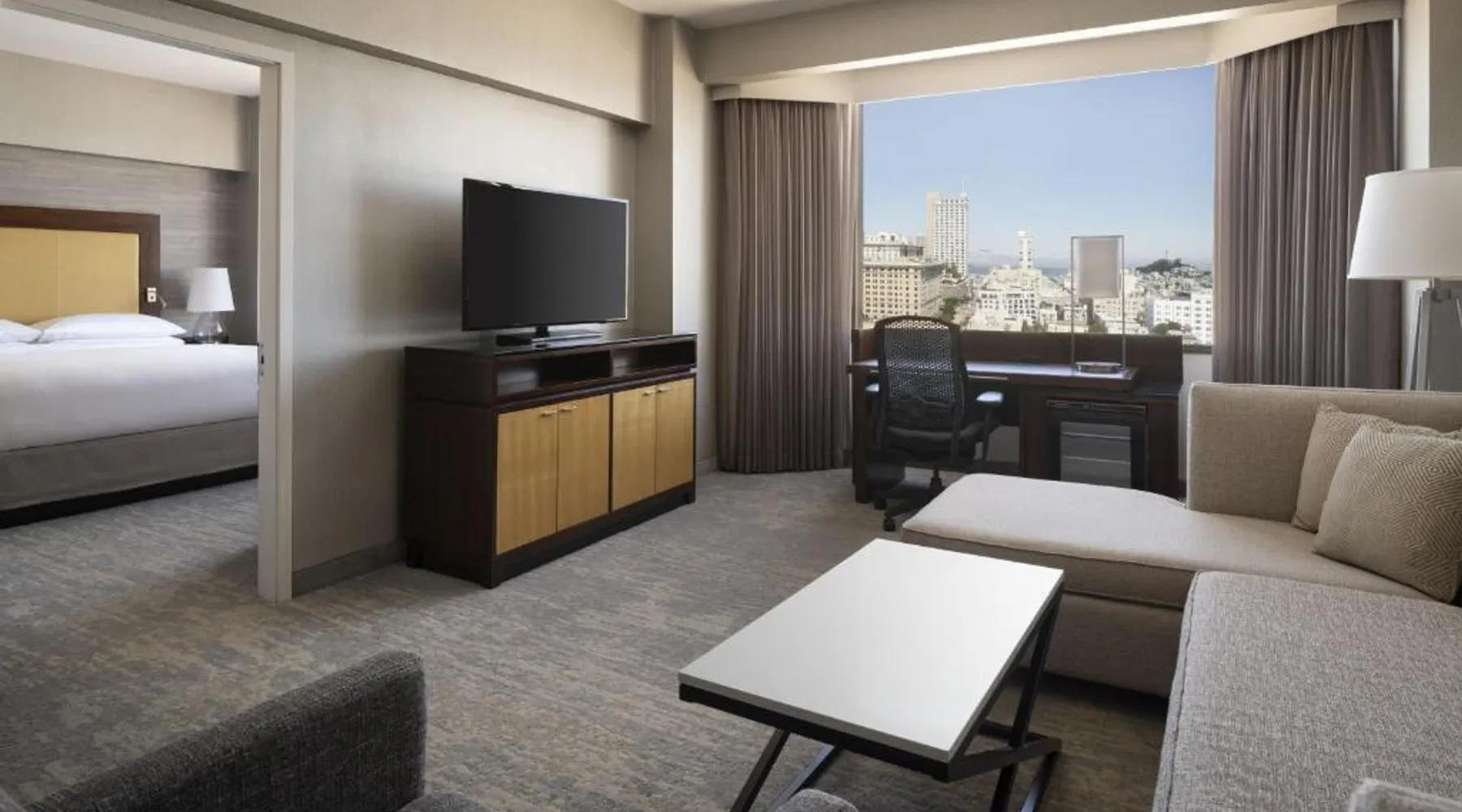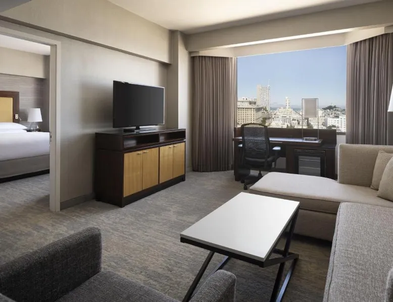 This hotel, located in the center of San Francisco, is 0.7 miles from both the Moscone Center and the Financial District. It offers a well-equipped fitness centre and chic, modern rooms. All guest rooms include a HDTV and MP3 dock. Tea and coffee making facilities are offered with each room of San Francisco Marriott Union Square. A 24-hour front desk service is available from San Francisco Marriott Union Square. WiFi access is provided throughout the hotel. Marriott Union Square’s restaurant serves a range of regional and international meals. The hotel’s bar, bin480, offers cocktails and refreshing beverages. Alcatraz Island is 2 miles from Marriott Union Square San Francisco. Providing free toiletries, this suite includes a private bathroom with a bath, a shower and a hairdryer. The suite features carpeted floors, a seating area with a flat-screen TV with cable channels, air conditioning, soundproof walls, as well as a tea and coffee maker.