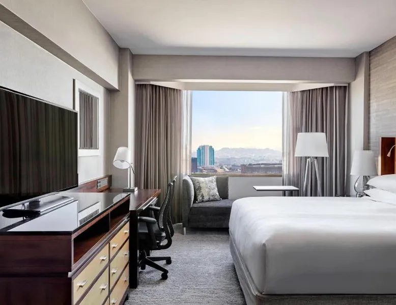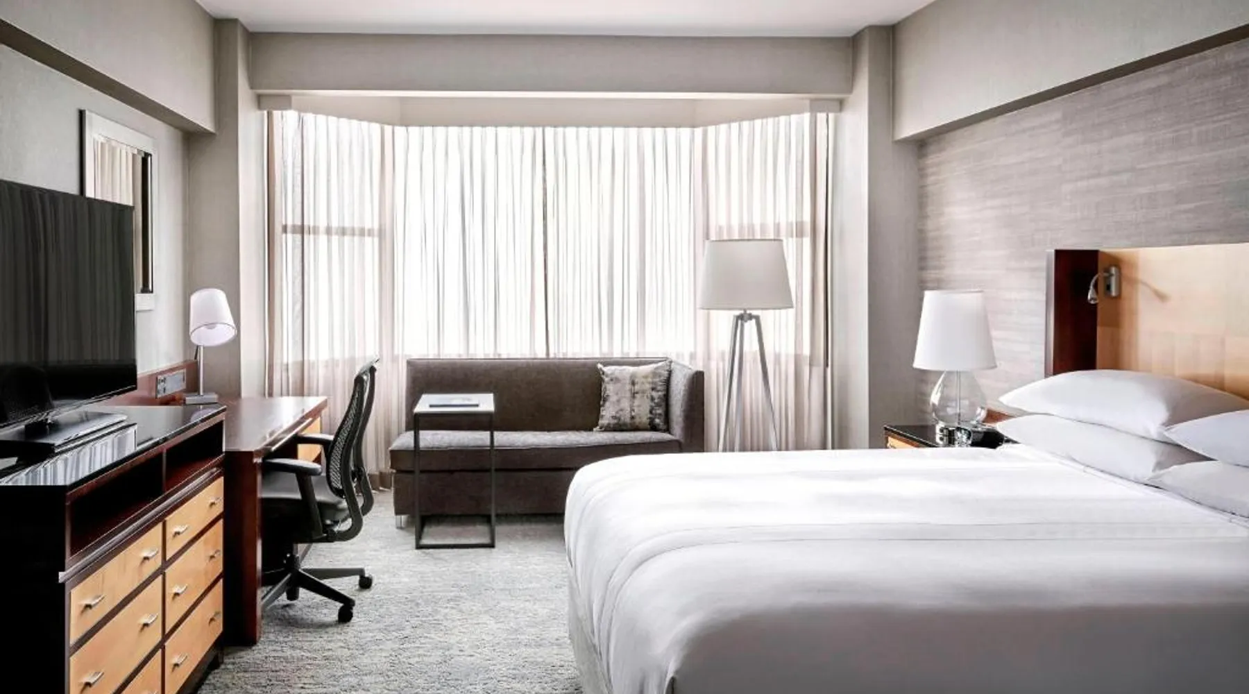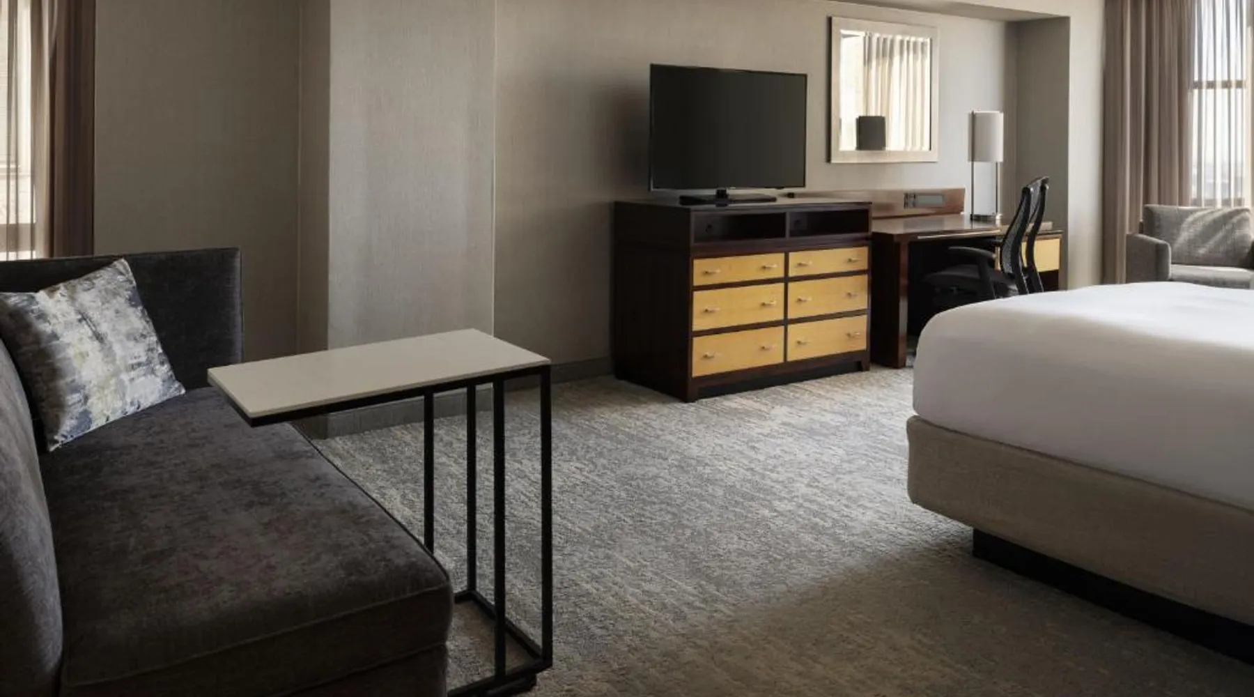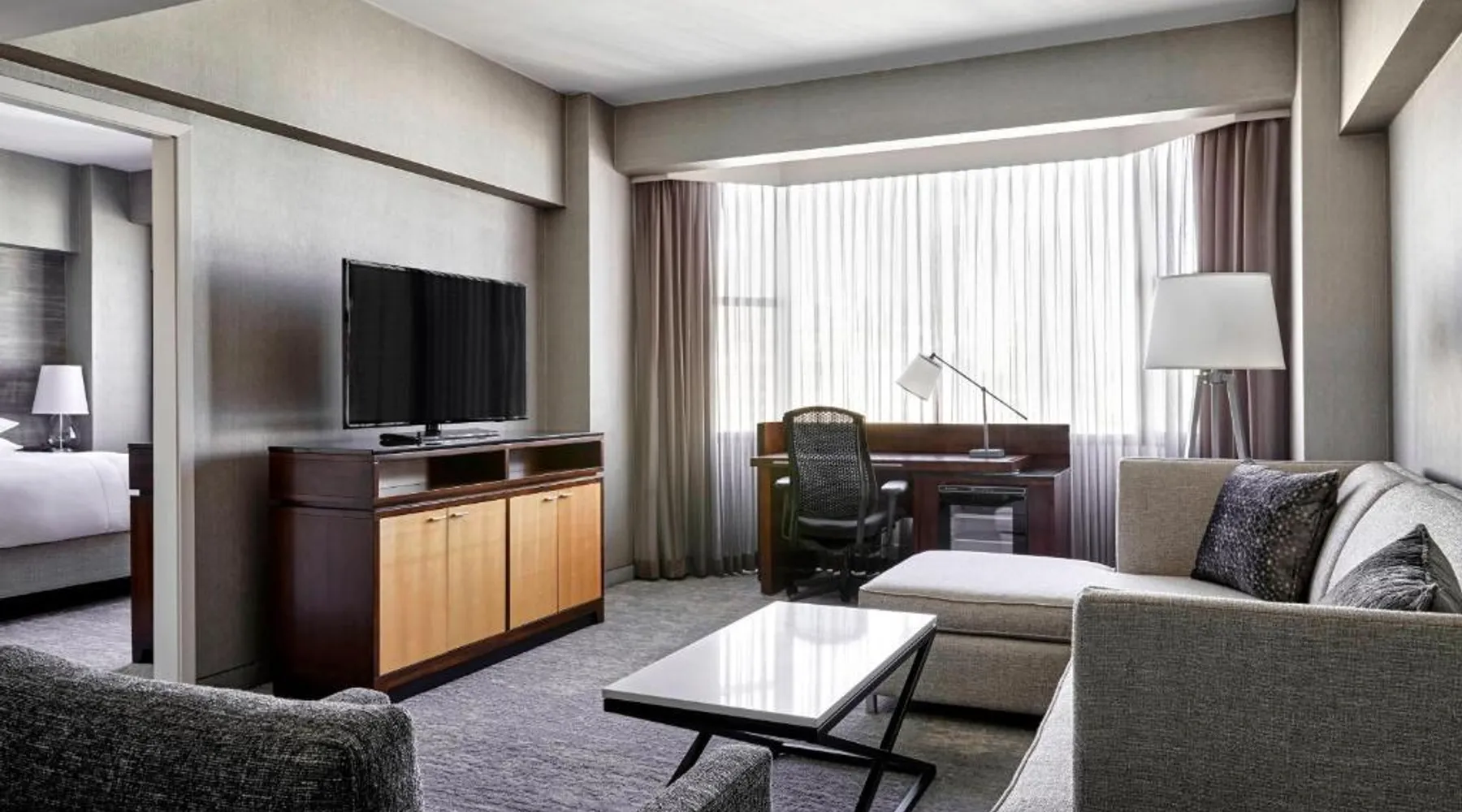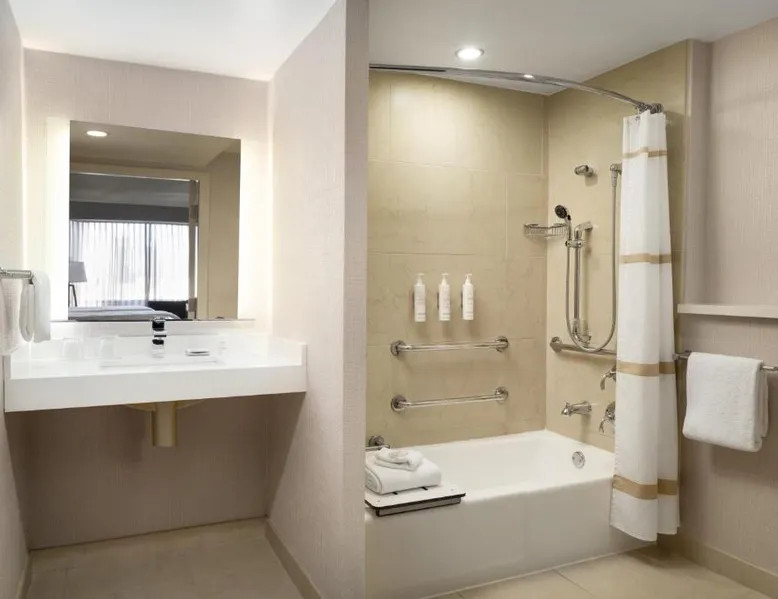 This hotel, located in the center of San Francisco, is 0.7 miles from both the Moscone Center and the Financial District. It offers a well-equipped fitness centre and chic, modern rooms. All guest rooms include a HDTV and MP3 dock. Tea and coffee making facilities are offered with each room of San Francisco Marriott Union Square. A 24-hour front desk service is available from San Francisco Marriott Union Square. WiFi access is provided throughout the hotel. Marriott Union Square’s restaurant serves a range of regional and international meals. The hotel’s bar, bin480, offers cocktails and refreshing beverages. Alcatraz Island is 2 miles from Marriott Union Square San Francisco. Providing free toiletries, this suite includes a private bathroom with a bath, a shower and a hairdryer. The suite features carpeted floors, a seating area with a flat-screen TV with cable channels, air conditioning, soundproof walls, as well as a tea and coffee maker.