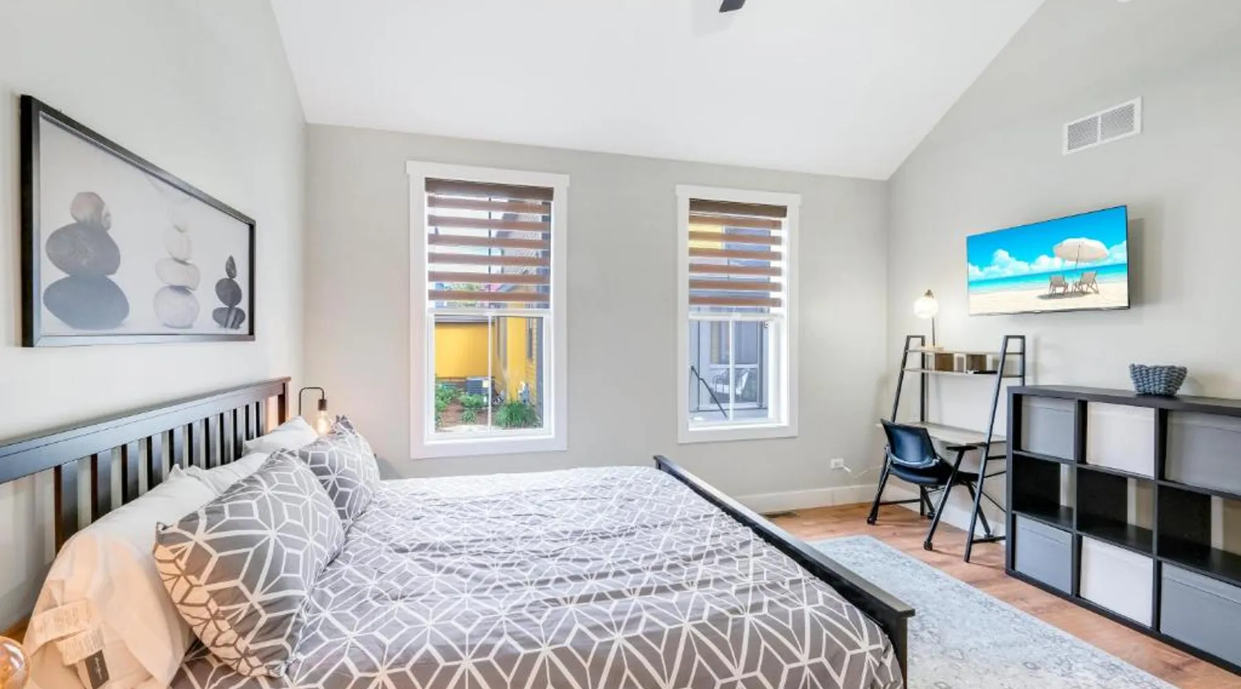 Spacious Holiday Home in Ottawa: Marina Tower offers a spacious holiday home in Ottawa, featuring three bedrooms and two bathrooms. The property includes a fully equipped kitchen with modern appliances, a comfortable dining area, and a cozy seating space. Modern Amenities: Guests enjoy free WiFi, air-conditioning, a washing machine, and a work desk. Additional amenities include a TV, dishwasher, microwave, and a fully equipped kitchen with a refrigerator, oven, stovetop, and toaster. Convenient Location: Located 73 mi from Midway International Airport, Marina Tower is 21 mi from Hegeler Carus Mansion. The surrounding area includes a restaurant, providing easy dining options. This spacious apartment consists of a kitchen, a seating area, 3 separate bedrooms and 2 bathrooms with a bath and a hairdryer. The fully equipped kitchen features a stovetop, a refrigerator, a dishwasher and kitchenware. This apartment is air-conditioned and has a TV, a washing machine, a tea and coffee maker and a dining area. The unit offers 3 beds.