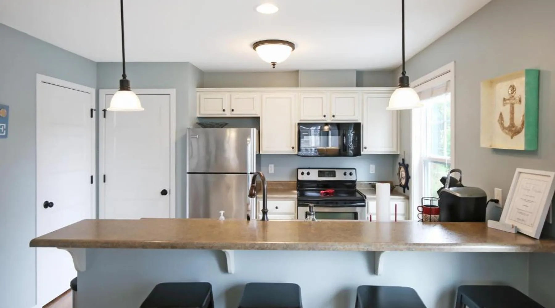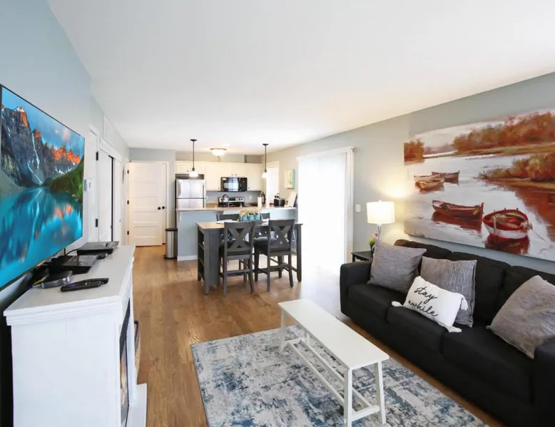Comfortable Accommodations: Red Anchor in Ottawa offers a holiday home with two bedrooms and two bathrooms. The property features air-conditioning, a washing machine, and a fully equipped kitchen with modern appliances. Essential Amenities: Guests enjoy free WiFi, a fireplace, and a dining area. Additional amenities include a TV, tea and coffee maker, hairdryer, and dishwasher. The home is equipped with a refrigerator, microwave, oven, stovetop, and toaster. Convenient Location: Located 74 mi from Midway International Airport, Red Anchor is 21 mi from Hegeler Carus Mansion. The surrounding area provides various attractions and activities for visitors. Guests will have a special experience as this holiday home features a fireplace. The air-conditioned holiday home features 2 bedrooms and 2 bathrooms with a bath and a hairdryer. In the fully equipped kitchen, guests will find a stovetop, a refrigerator, a dishwasher and kitchenware. The holiday home offers a washing machine, a tea and coffee maker, a dining area, heating and a TV. The unit offers 2 beds.