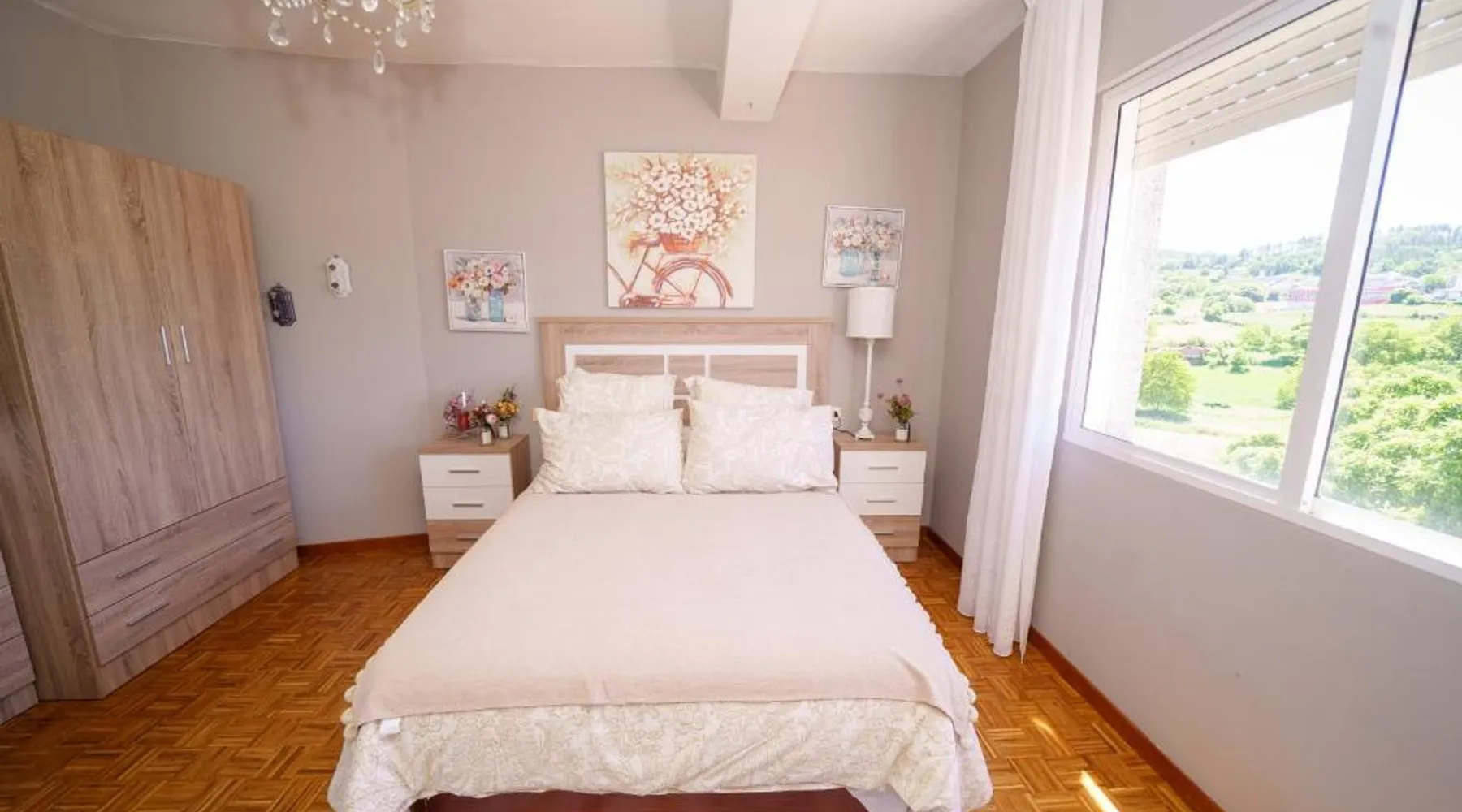Spacious and Pet-Friendly: Antoxos Sacra Home I in Chantada offers a spacious apartment with three bedrooms and a living room. The property is pet-friendly, welcoming guests with their furry companions. Modern Amenities: The apartment includes a fully equipped kitchen with a refrigerator, microwave, stovetop, toaster, and coffee machine. Additional amenities feature a washing machine, dishwasher, and work desk. Convenient Location: Located 62 mi from Santiago de Compostela Airport, the property is near attractions such as As Burgas Thermal Springs (24 mi), Auditorium - Exhibition Center (24 mi), and Pazo da Touza Golf (27 mi). Guest Satisfaction: Highly rated by guests for room comfort, cleanliness, and convenient location. This spacious apartment is consisted of of 1 living room, 3 separate bedrooms and 1 bathroom with a bath and a bidet. The well-fitted kitchen features a stovetop, a refrigerator, kitchenware and a microwave. The apartment offers a washing machine, a tea and coffee maker, a seating area, a dining area, as well as a flat-screen TV. The unit offers 3 beds.