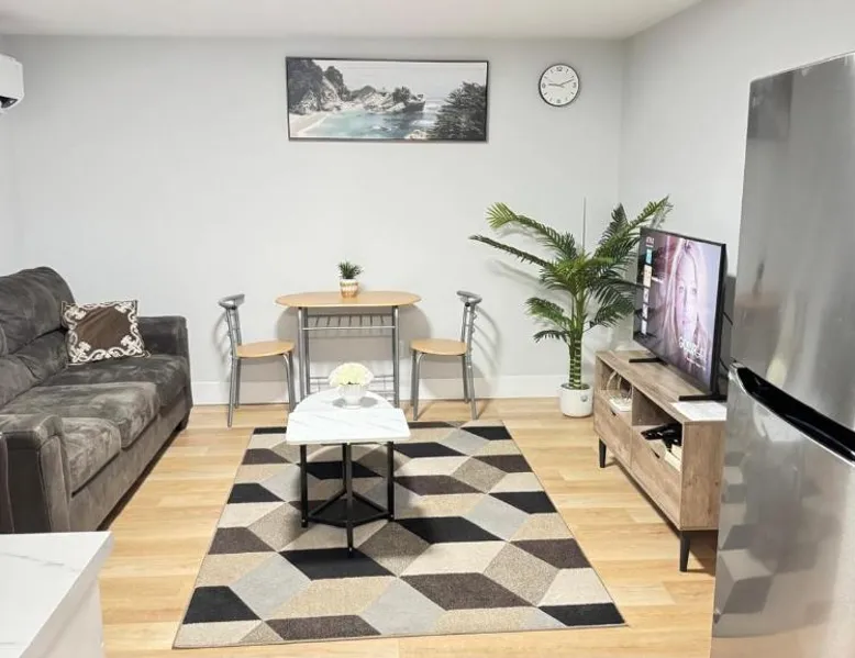 Spacious Living: The Live-more cozy newly built one-bedroom apartment in Moncton offers a spacious layout with one bedroom and a living room. The ground-floor unit features a terrace and free WiFi, ensuring a comfortable stay. Modern Amenities: Guests can enjoy air-conditioning, a kitchenette, balcony, and a hot tub. Additional amenities include a washing machine, streaming services, and a work desk. The property is equipped with free on-site private parking and family rooms. Prime Location: Located 11 mi from Greater Moncton Roméo LeBlanc International Airport and 1.1 mi from Casino New Brunswick, the apartment provides easy access to local attractions. Nearby points include Moncton Golf & Country Club (7.5 mi) and Magic Mountain Water Park (1.6 mi). The hot tub is a top feature of this apartment. Boasting a private entrance, this air-conditioned apartment comes with 1 living room, 1 separate bedroom and 1 bathroom with a bath and a shower. In the well-fitted kitchen, guests will find a stovetop, a refrigerator, kitchenware and an oven. The spacious apartment features a washing machine, soundproof walls, a tea and coffee maker, a flat-screen TV with streaming services, as well as a quiet street view. The unit has 2 beds.