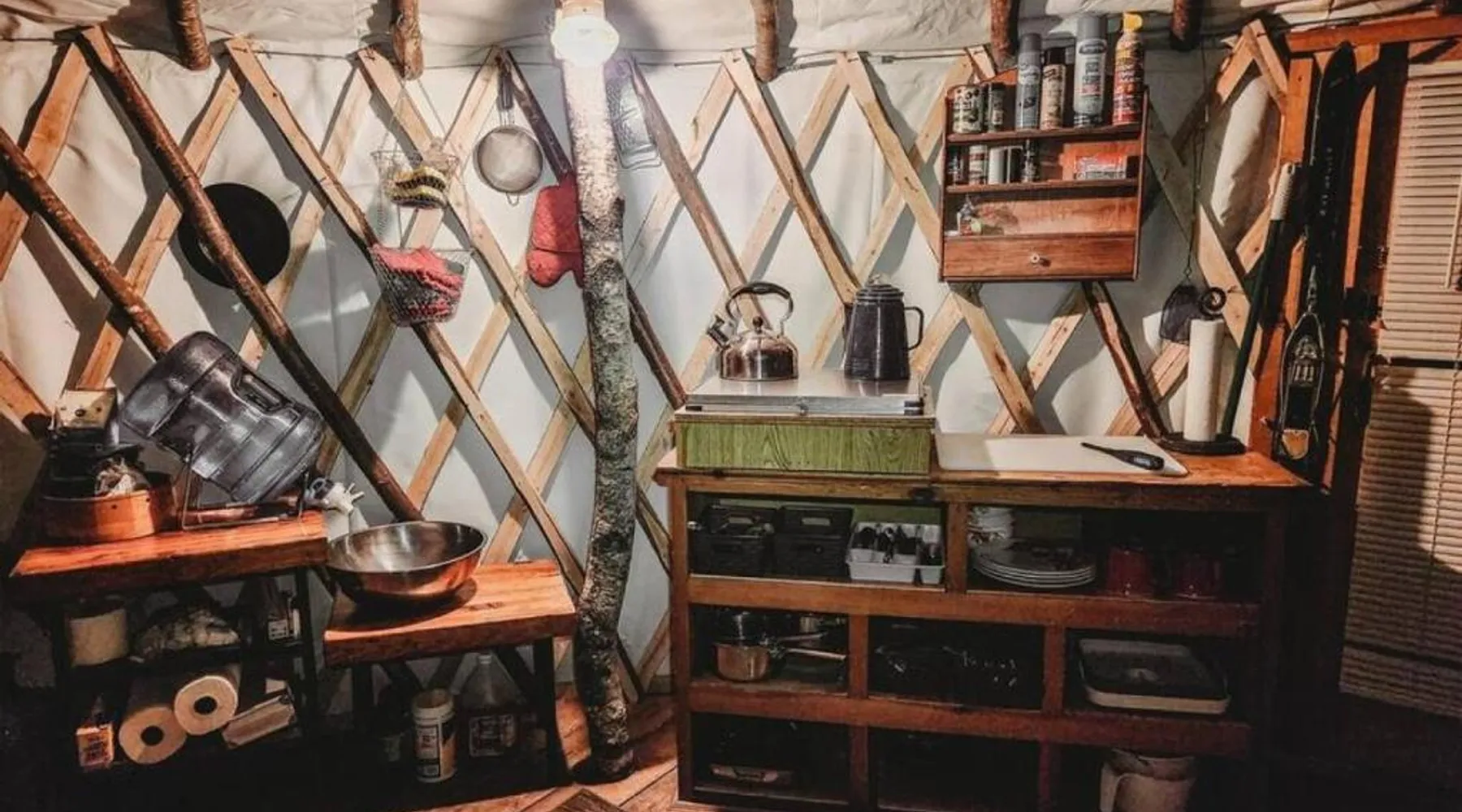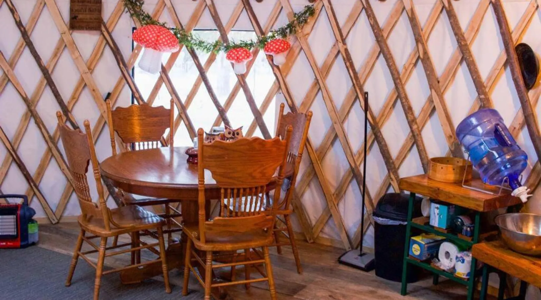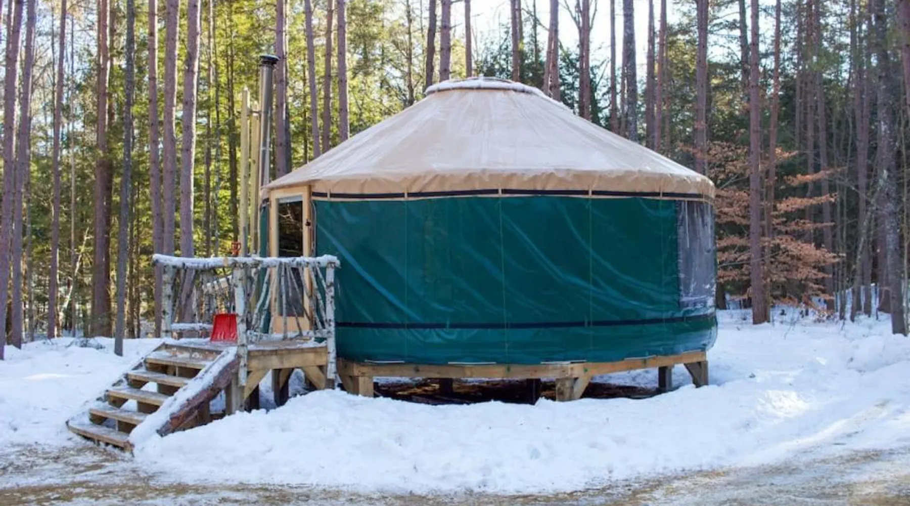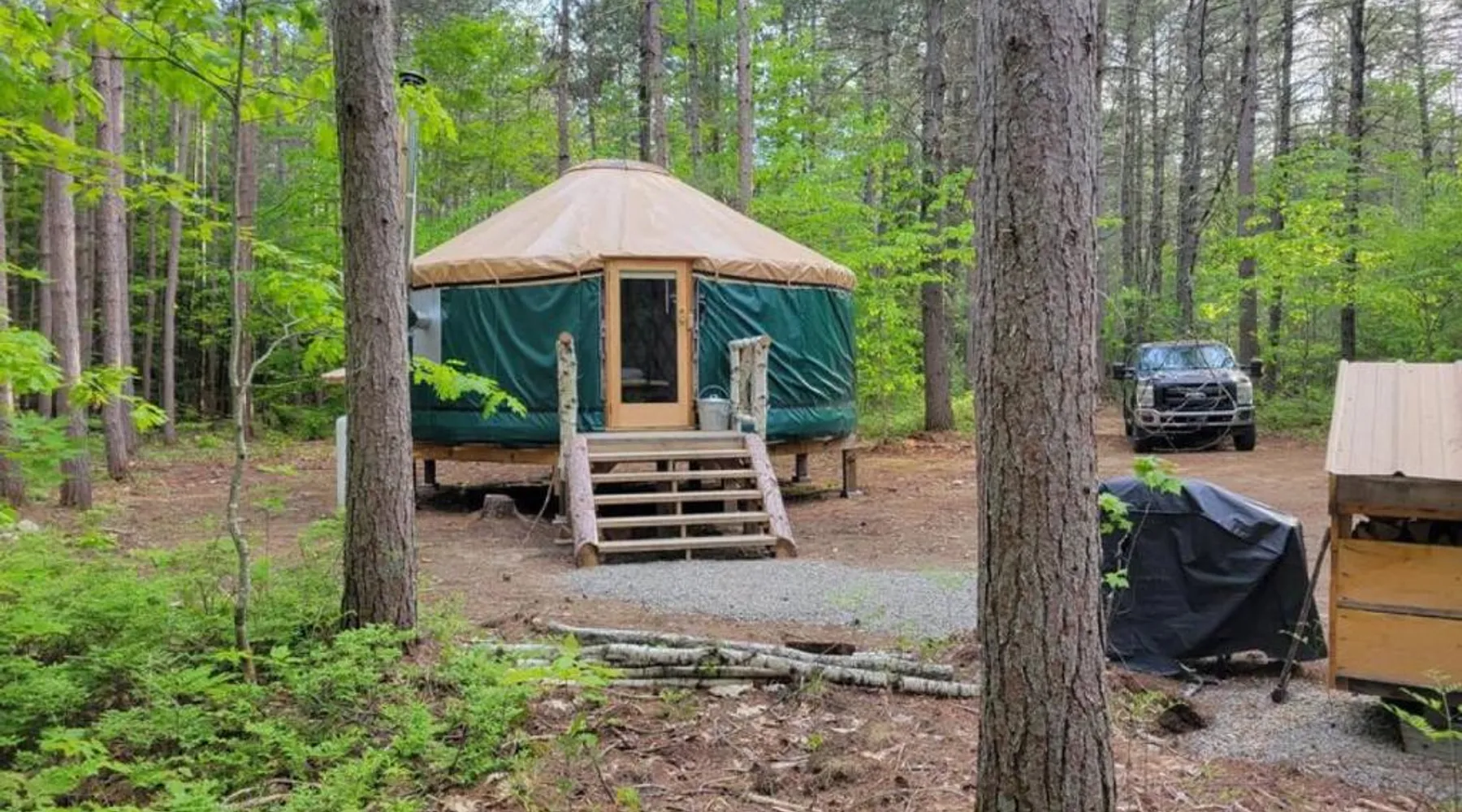 Elegant Accommodations: Rufus III Yurt on the river in Brownfield offers a luxury tent experience with a private garden. The property features a private entrance and a fully equipped kitchen with a stovetop, toaster, and electric kettle. Comfortable Amenities: Guests enjoy a private bathroom with free toiletries, a cozy fireplace, and a barbecue area. Additional amenities include a laundry service, tea and coffee maker, and a fully equipped kitchen with kitchenware. Convenient Location: Located 42 mi from Portland International Jetport, the property is near attractions such as White Mountain National Forest (14 mi), Kahuna Laguna (14 mi), and Mount Washington Observatory Weather Discovery Center (13 mi). The fireplace is a top feature of this tent. Guests will find a stovetop, kitchenware, a tea and coffee maker and a toaster in the well-fitted kitchen. The tent also includes a barbecue. This tent has a private bathroom, a private entrance and heating.