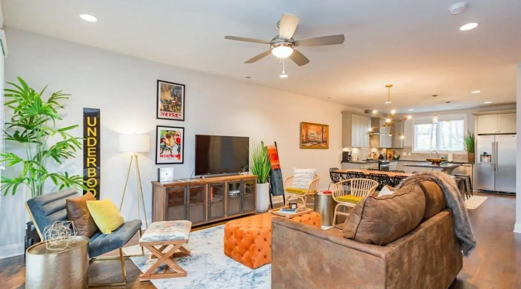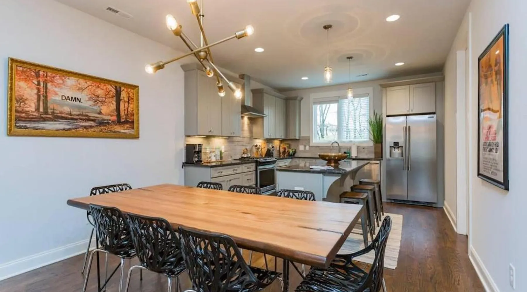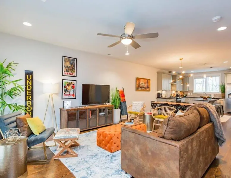 Spacious Accommodations: 2 5 miles to DWNTN 3 King Beds - Garage Parking in Nashville offers a spacious holiday home with three bedrooms and four bathrooms. The living room provides ample space for relaxation. Modern Amenities: Guests enjoy free WiFi, air-conditioning, streaming services, and a washing machine. The fully equipped kitchen includes a refrigerator, microwave, dishwasher, and oven. Additional amenities include a patio, dining table, and outdoor furniture. Convenient Location: Located 6.2 mi from Nashville International Airport, the property is close to Bridgestone Arena, Ryman Auditorium, and the Johnny Cash Museum, each 3.1 mi away. Other attractions include the Grand Ole Opry at 11 mi and The Hermitage at 16 mi. Highly Rated by Guests: Guests appreciate the spaciousness, modern amenities, and excellent location, making it a highly rated choice for a comfortable stay in Nashville. This spacious holiday home consists of 1 living room, 3 separate bedrooms and 4 bathrooms with a bath and free toiletries. In the kitchen, guests will find a stovetop, a refrigerator, a dishwasher and kitchenware. Featuring a patio, this holiday home also provides air conditioning, a washing machine and a TV with streaming services. The unit offers 6 beds.