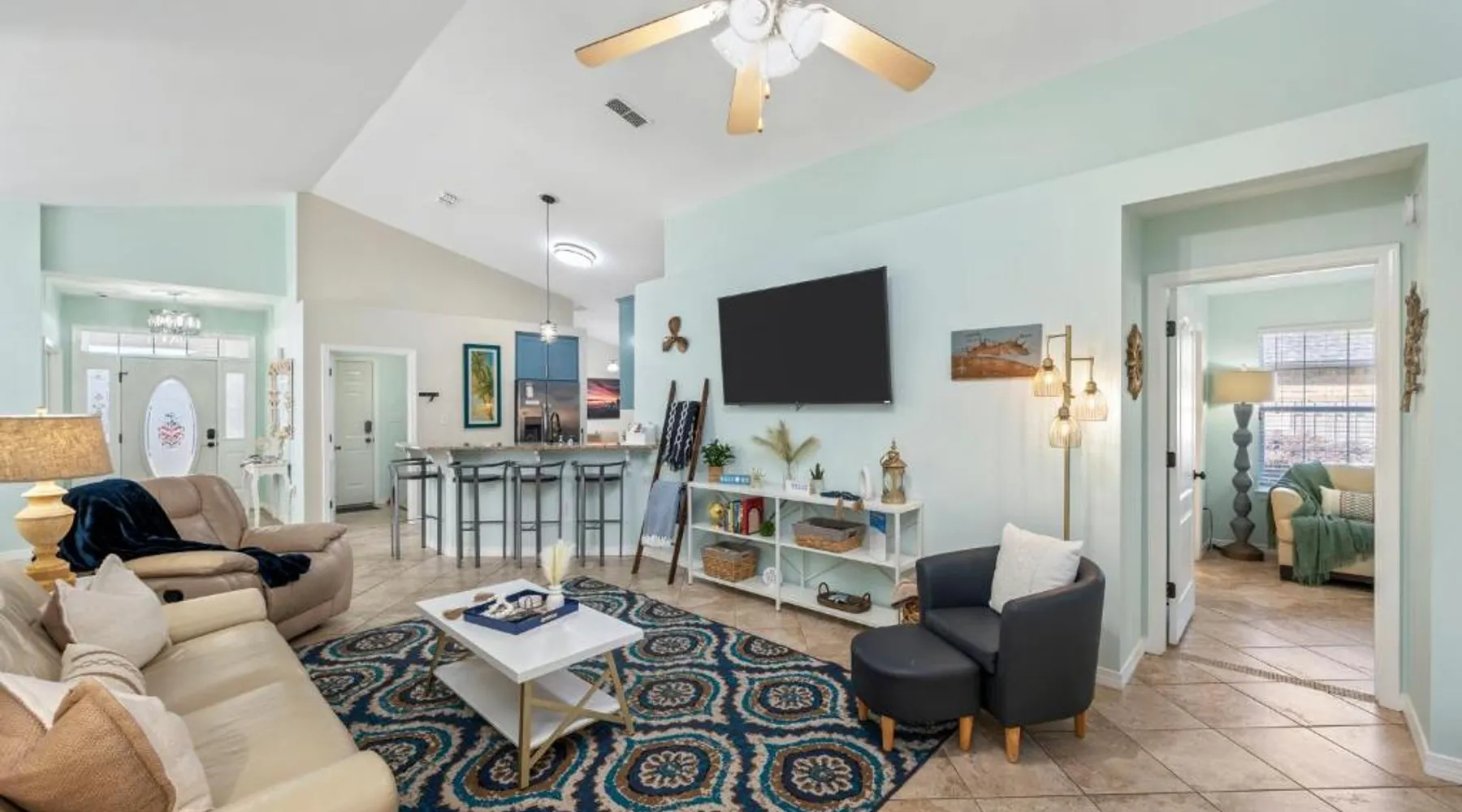 Spacious Accommodations: Beautiful Pet Friendly Home! Tropical Pool, Optional Golf Cart & Pool Heat, Minutes to Beach in Miramar Beach offers a spacious holiday home with four bedrooms and two bathrooms. Family rooms provide ample space for relaxation. Outdoor Amenities: Guests enjoy a year-round outdoor swimming pool, heated pool, and free WiFi. The property features a patio, outdoor dining area, and a barbecue for outdoor entertainment. Convenient Location: Miramar Beach is a 5-minute walk away, while Destin Harbor Boardwalk lies 7.5 mi from the property. Nearby attractions include Big Kahunas and Emerald Coast Science Center. Guest Favorites: Guests highly rate the swimming pool, convenient location, and the location of the property. Guests will have a special experience as the holiday home offers a private pool. Featuring a private entrance, this air-conditioned holiday home consists of 1 living room, 4 separate bedrooms and 2 bathrooms with a bath and a shower. Guests will find a stovetop, a refrigerator, a dishwasher and kitchenware in the kitchen. The holiday home also offers a barbecue. The spacious holiday home provides a washing machine, a tea and coffee maker, a seating area, a flat-screen TV, as well as pool views. The unit offers 7 beds.