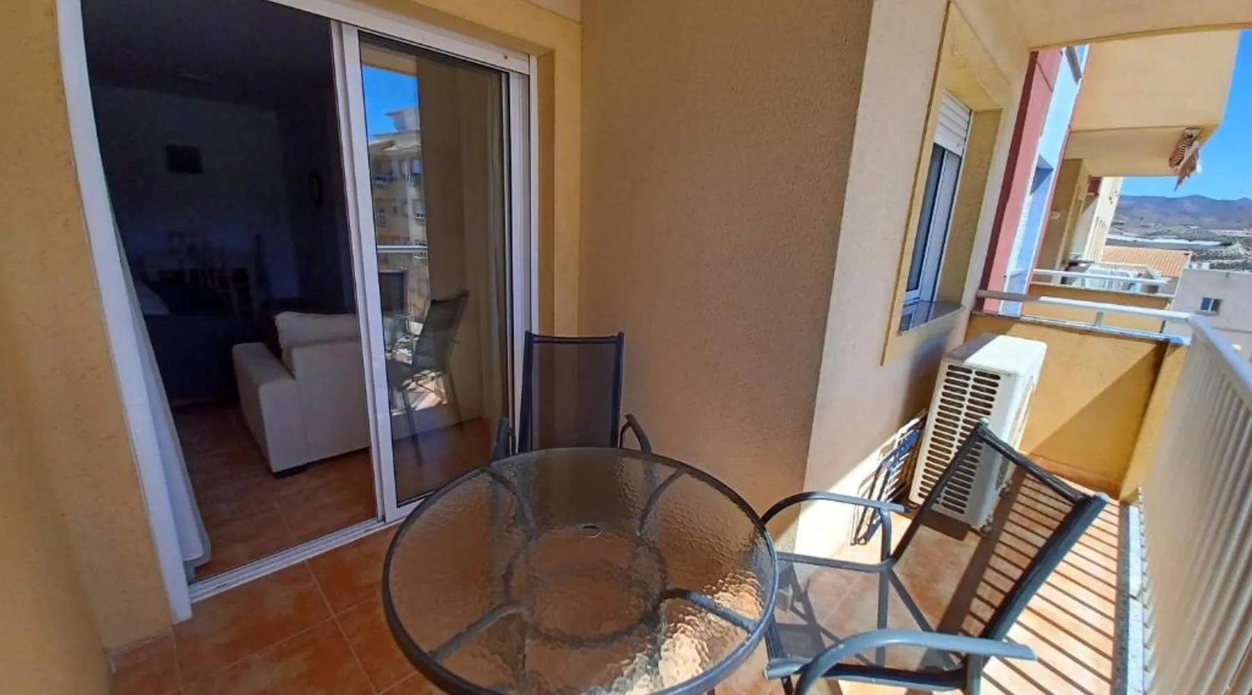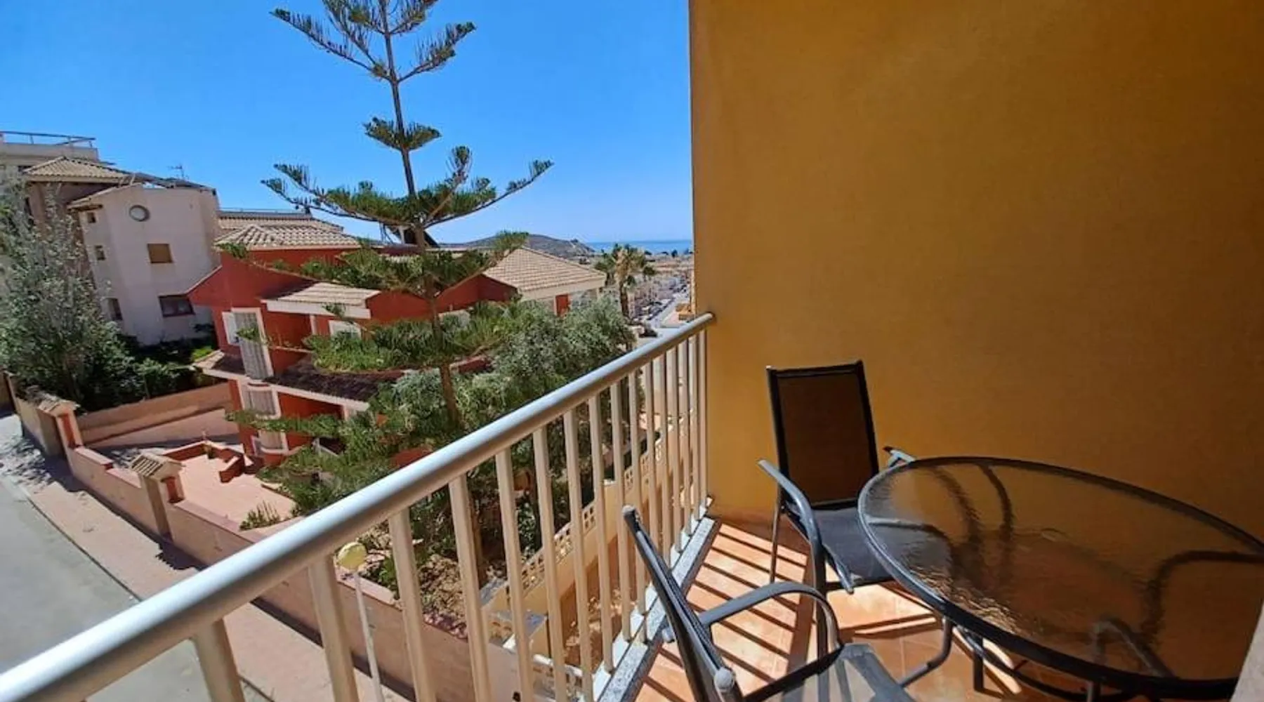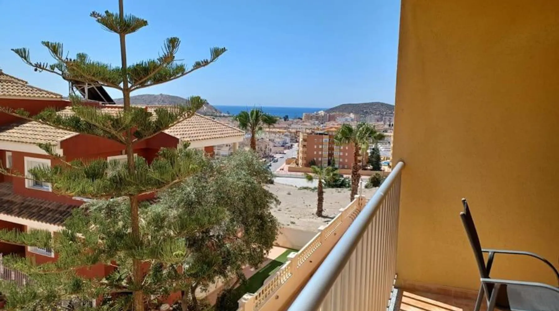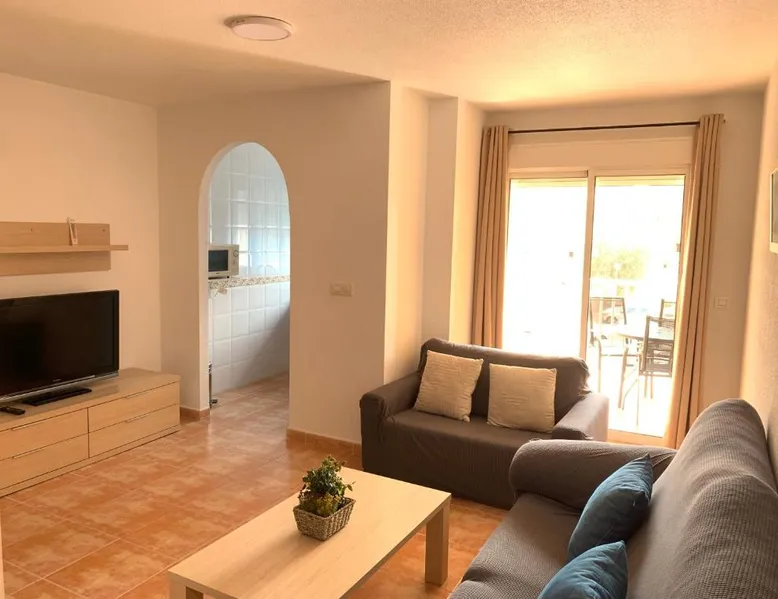 Spacious Accommodations: Brisas del mar in Puerto de Mazarrón offers a spacious apartment with one bedroom and a living room. The property features family rooms and a terrace, providing ample space for relaxation. Exceptional Facilities: Guests can enjoy a saltwater swimming pool and a terrace, perfect for outdoor activities. The apartment includes a kitchenette, balcony, and free on-site private parking. Comfortable Amenities: The apartment is equipped with air-conditioning, a washing machine, and a fully fitted kitchen. Additional amenities include a TV, sofa, and wardrobe, ensuring a comfortable stay. Prime Location: Located 1.1 mi from Isla Beach and 21 mi from Region de Murcia International Airport, Brisas del mar is highly rated by guests for its excellent location and facilities. This spacious apartment includes 1 living room, 1 separate bedroom and 1 bathroom with a bath and a bidet. The apartment's kitchen, which has a refrigerator, is available for cooking and storing food. The air-conditioned apartment offers a flat-screen TV, a washing machine, a coffee machine, a seating area as well as sea views. The unit has 3 beds.