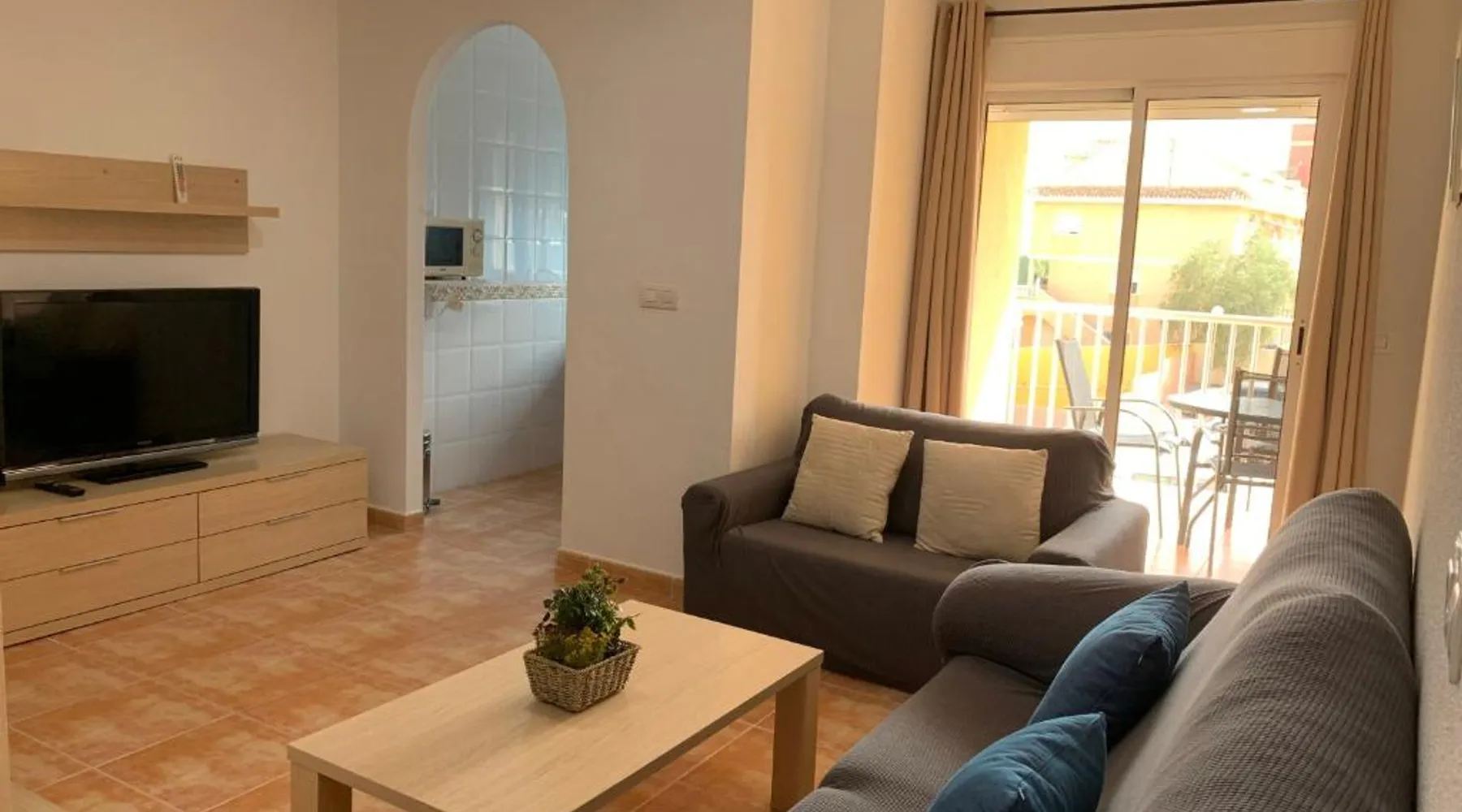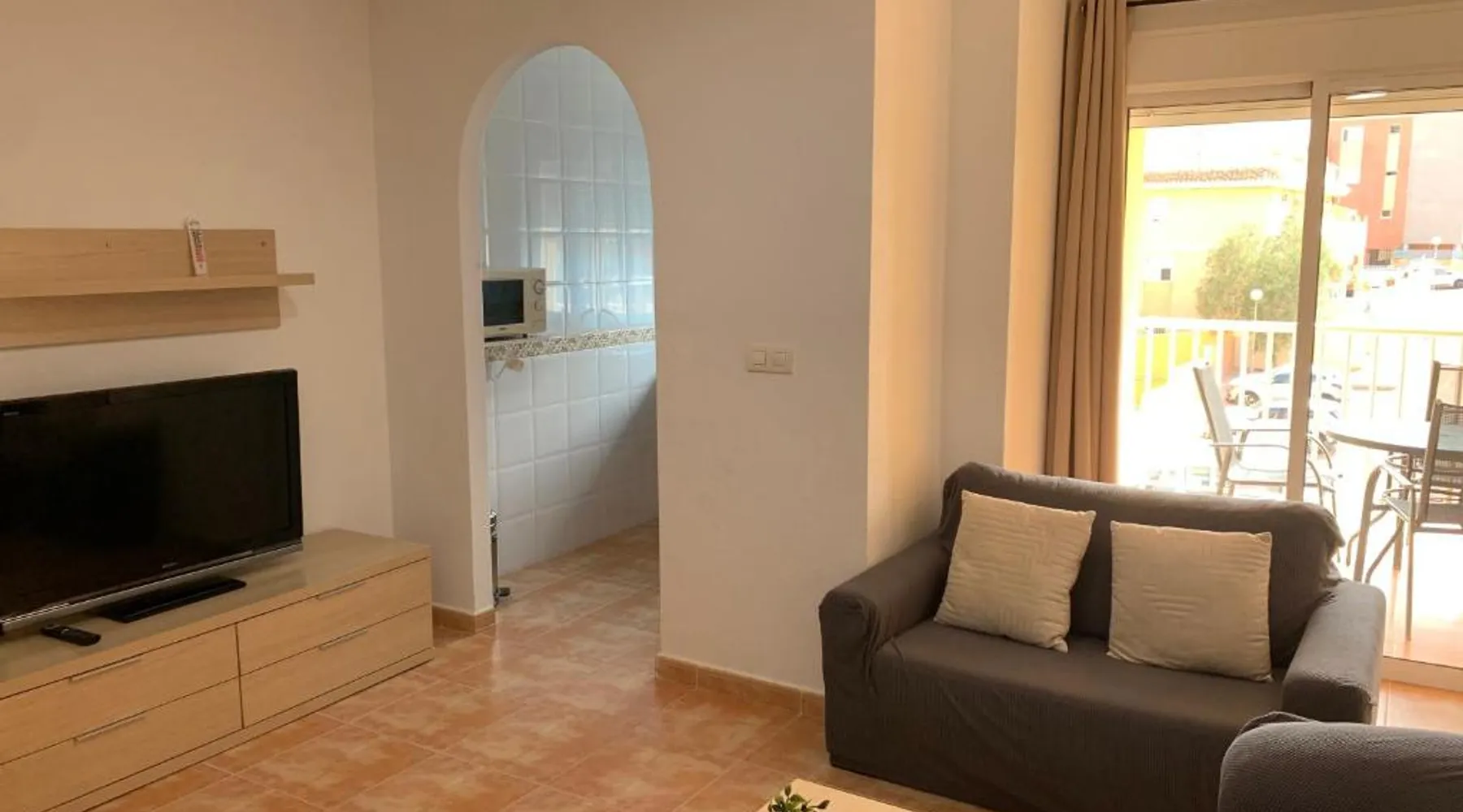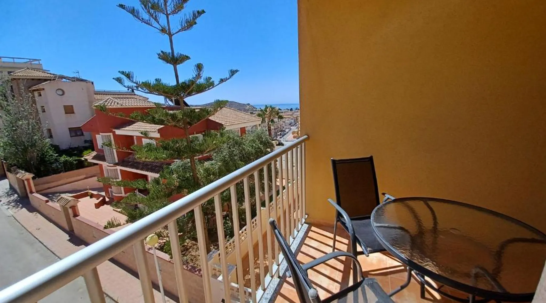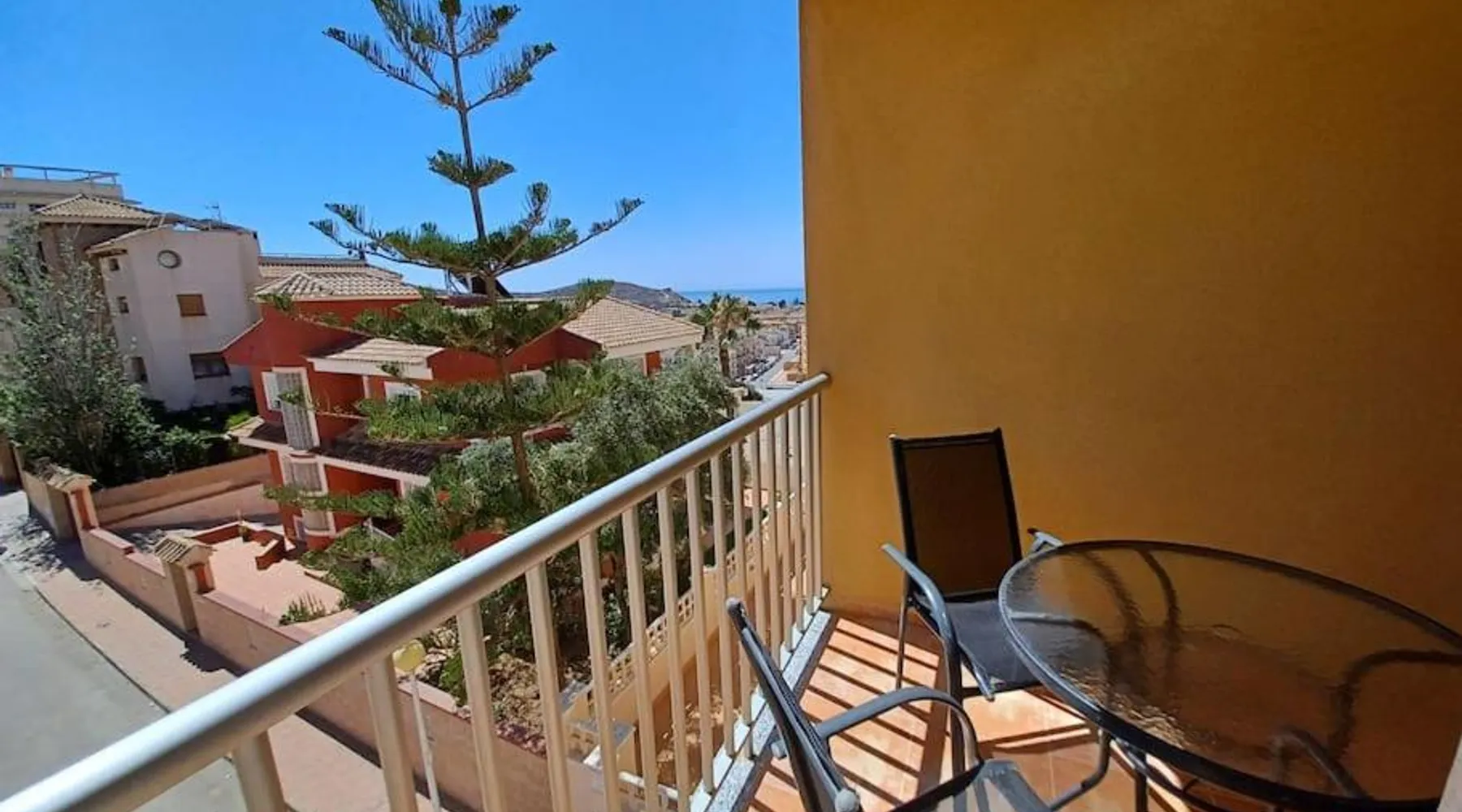 Spacious Accommodations: Brisas del mar in Puerto de Mazarrón offers a spacious apartment with one bedroom and a living room. The property features family rooms and a terrace, providing ample space for relaxation. Exceptional Facilities: Guests can enjoy a saltwater swimming pool and a terrace, perfect for outdoor activities. The apartment includes a kitchenette, balcony, and free on-site private parking. Comfortable Amenities: The apartment is equipped with air-conditioning, a washing machine, and a fully fitted kitchen. Additional amenities include a TV, sofa, and wardrobe, ensuring a comfortable stay. Prime Location: Located 1.1 mi from Isla Beach and 21 mi from Region de Murcia International Airport, Brisas del mar is highly rated by guests for its excellent location and facilities. This spacious apartment includes 1 living room, 1 separate bedroom and 1 bathroom with a bath and a bidet. The apartment's kitchen, which has a refrigerator, is available for cooking and storing food. The air-conditioned apartment offers a flat-screen TV, a washing machine, a coffee machine, a seating area as well as sea views. The unit has 3 beds.