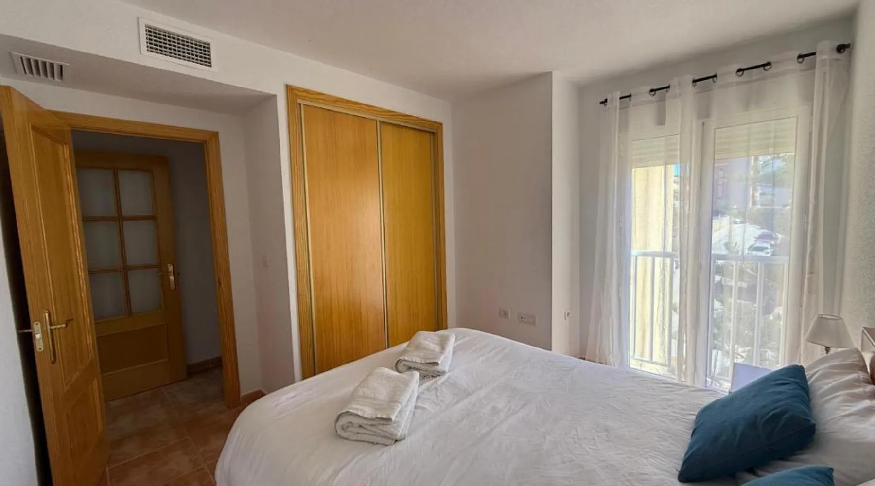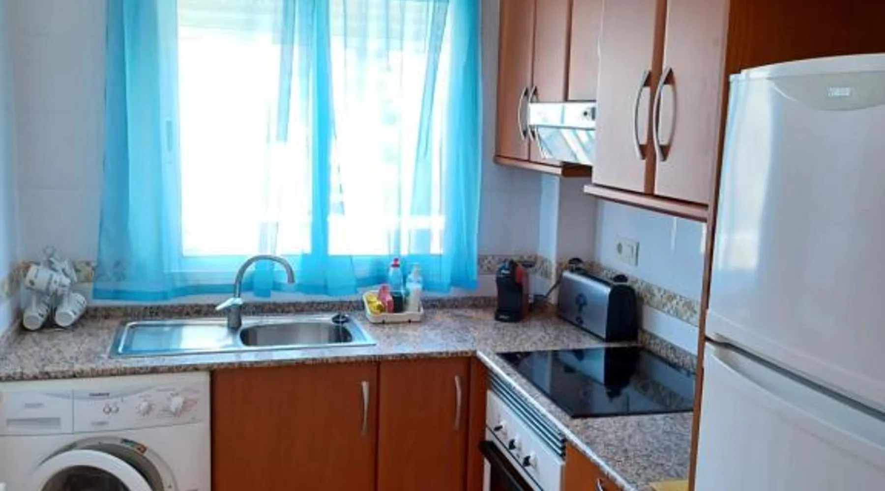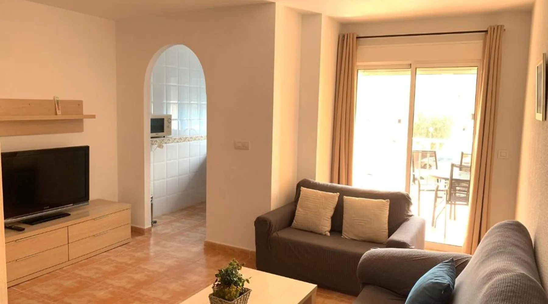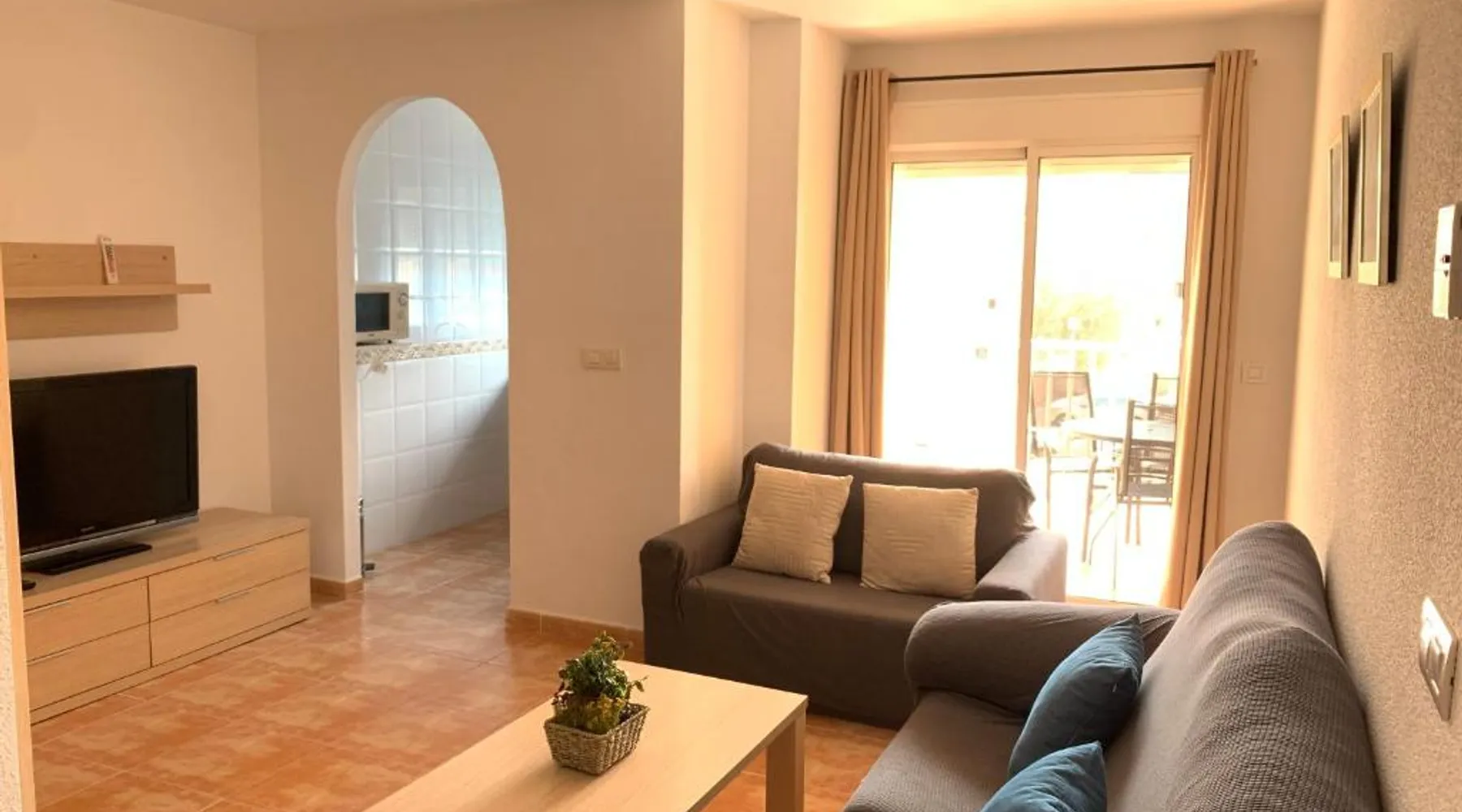 Spacious Accommodations: Brisas del mar in Puerto de Mazarrón offers a spacious apartment with one bedroom and a living room. The property features family rooms and a terrace, providing ample space for relaxation. Exceptional Facilities: Guests can enjoy a saltwater swimming pool and a terrace, perfect for outdoor activities. The apartment includes a kitchenette, balcony, and free on-site private parking. Comfortable Amenities: The apartment is equipped with air-conditioning, a washing machine, and a fully fitted kitchen. Additional amenities include a TV, sofa, and wardrobe, ensuring a comfortable stay. Prime Location: Located 1.1 mi from Isla Beach and 21 mi from Region de Murcia International Airport, Brisas del mar is highly rated by guests for its excellent location and facilities. This spacious apartment includes 1 living room, 1 separate bedroom and 1 bathroom with a bath and a bidet. The apartment's kitchen, which has a refrigerator, is available for cooking and storing food. The air-conditioned apartment offers a flat-screen TV, a washing machine, a coffee machine, a seating area as well as sea views. The unit has 3 beds.
