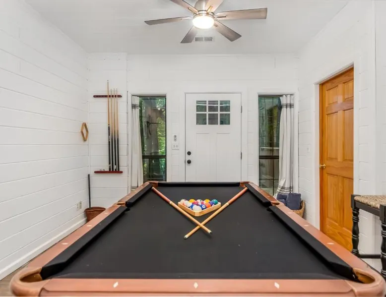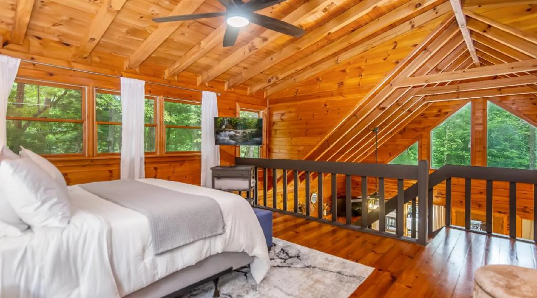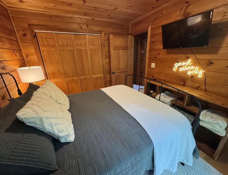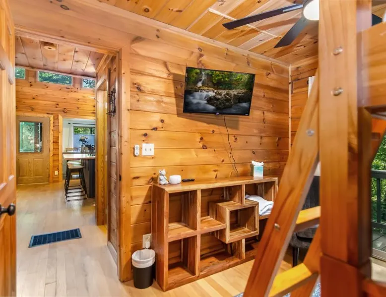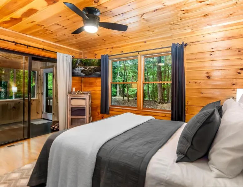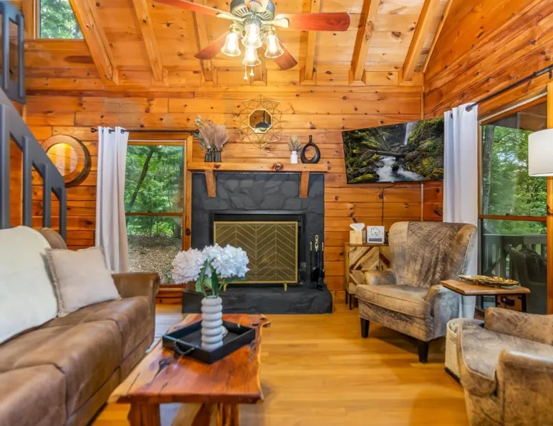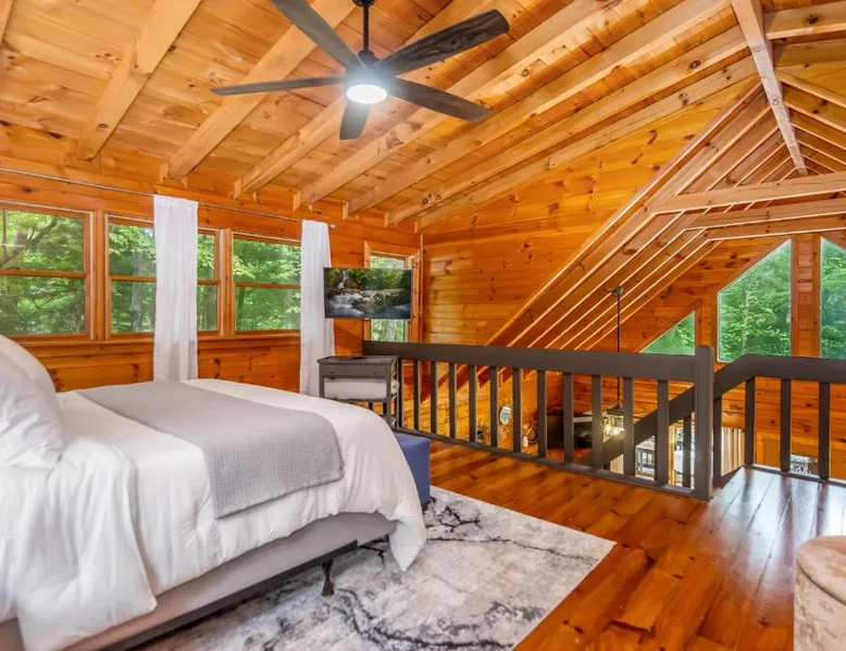 Spacious Accommodations: Downward Dog Lodge in Blue Ridge offers a spacious, recently renovated holiday home with four bedrooms and two bathrooms. The property features a living room, dining area, and family rooms, ensuring comfort for all guests. Exceptional Facilities: Guests can enjoy a fitness center, sun terrace, and lush garden. Free WiFi is available throughout the property, and amenities include a hot tub, outdoor fireplace, and electric vehicle charging station. Convenient Location: Located 76 mi from Chattanooga Metropolitan Airport, the lodge provides easy access to walking tours and hiking. Nearby attractions include Blue Ridge and the Appalachian Trail. Highly rated by guests for its excellent facilities and services. This holiday home's special features are the hot tub and the fireplace. Featuring a private entrance, this air-conditioned holiday home consists of 2 living rooms, 4 separate bedrooms and 2 bathrooms with a bath and a shower. Meals can be prepared in the kitchen, which is equipped with a stovetop, a refrigerator, a dishwasher and kitchenware. The spacious holiday home provides a washing machine, a tea and coffee maker, a seating area, a flat-screen TV with streaming services, as well as garden views. The unit offers 4 beds.