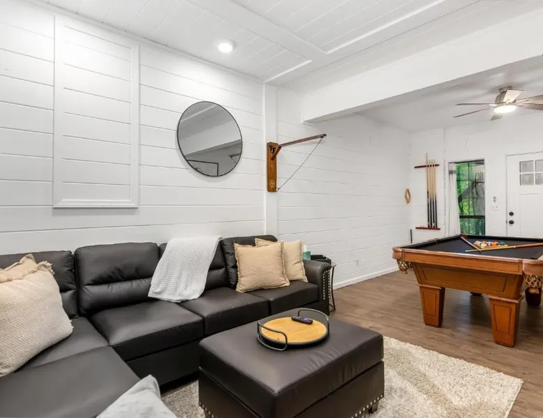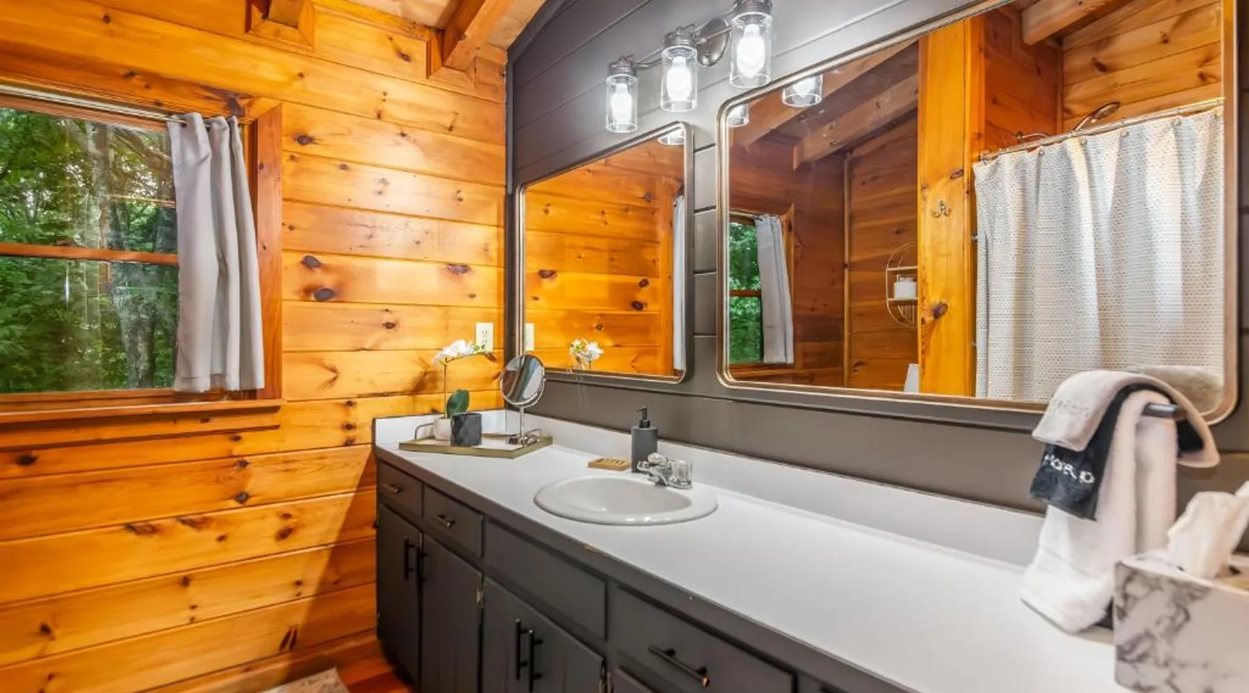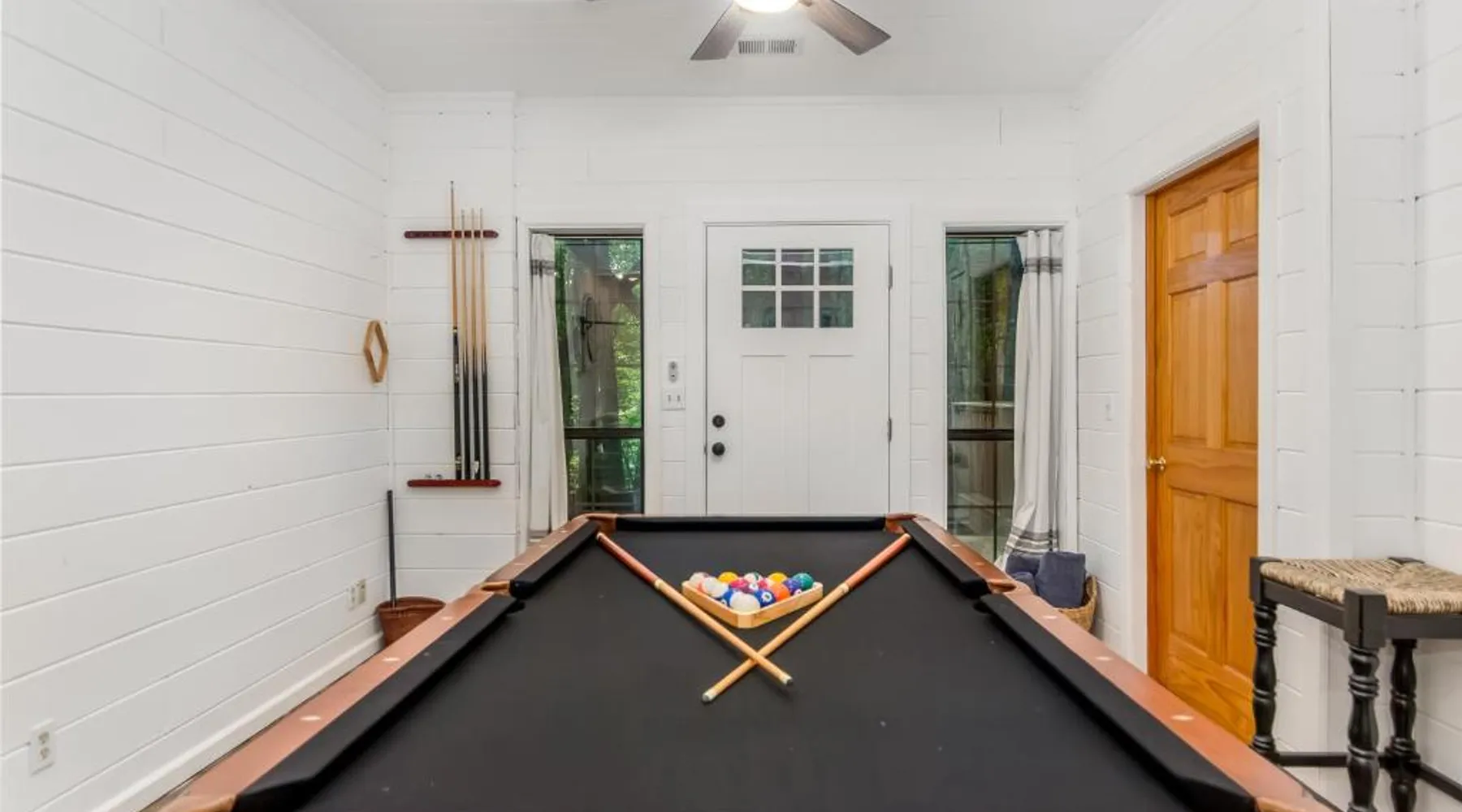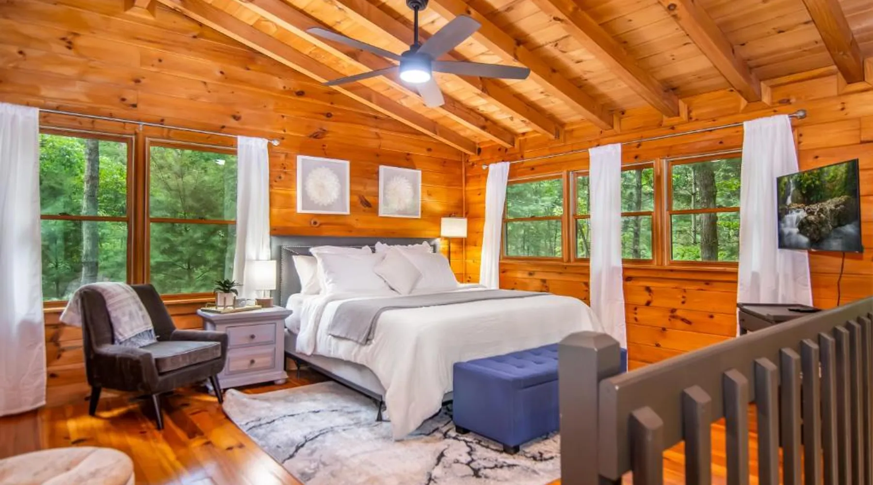 Spacious Accommodations: Downward Dog Lodge in Blue Ridge offers a spacious, recently renovated holiday home with four bedrooms and two bathrooms. The property features a living room, dining area, and family rooms, ensuring comfort for all guests. Exceptional Facilities: Guests can enjoy a fitness center, sun terrace, and lush garden. Free WiFi is available throughout the property, and amenities include a hot tub, outdoor fireplace, and electric vehicle charging station. Convenient Location: Located 76 mi from Chattanooga Metropolitan Airport, the lodge provides easy access to walking tours and hiking. Nearby attractions include Blue Ridge and the Appalachian Trail. Highly rated by guests for its excellent facilities and services. This holiday home's special features are the hot tub and the fireplace. Featuring a private entrance, this air-conditioned holiday home consists of 2 living rooms, 4 separate bedrooms and 2 bathrooms with a bath and a shower. Meals can be prepared in the kitchen, which is equipped with a stovetop, a refrigerator, a dishwasher and kitchenware. The spacious holiday home provides a washing machine, a tea and coffee maker, a seating area, a flat-screen TV with streaming services, as well as garden views. The unit offers 4 beds.