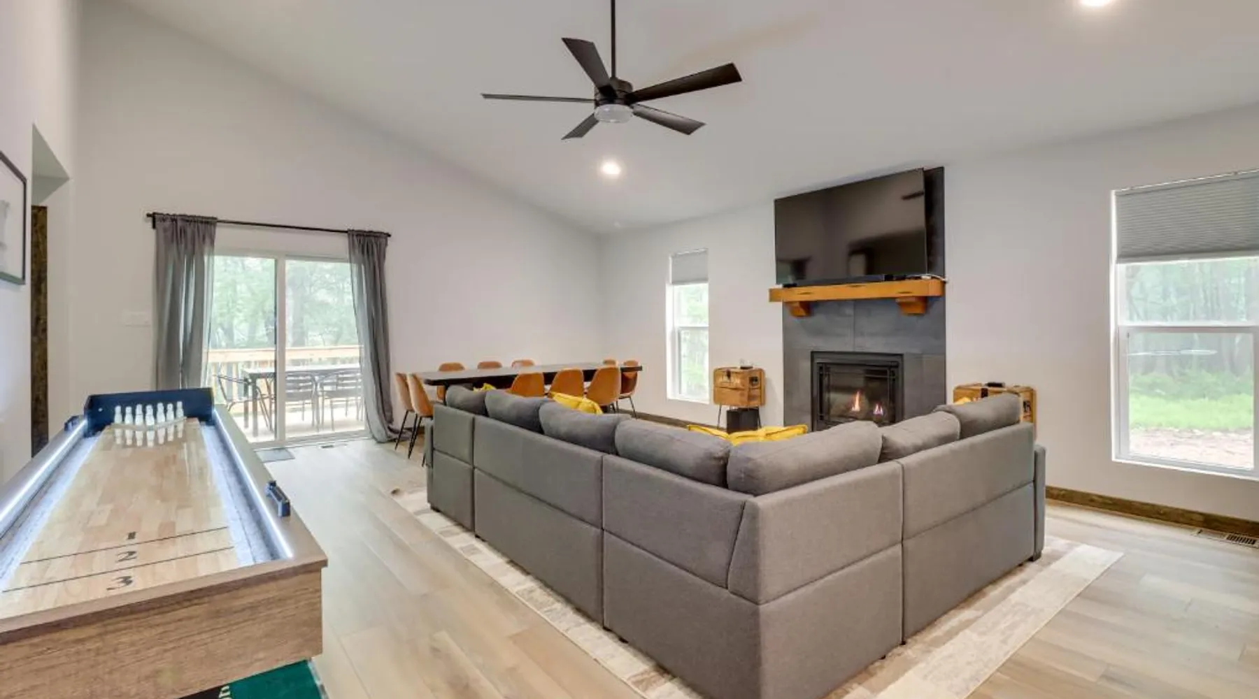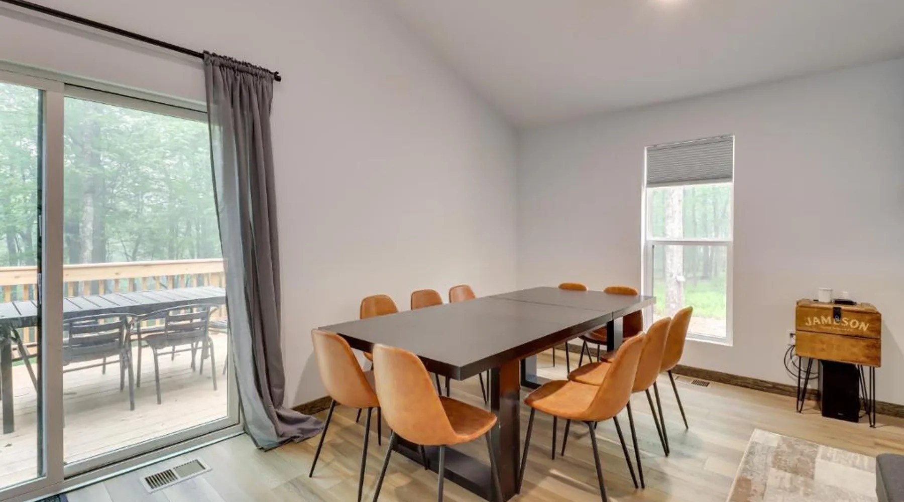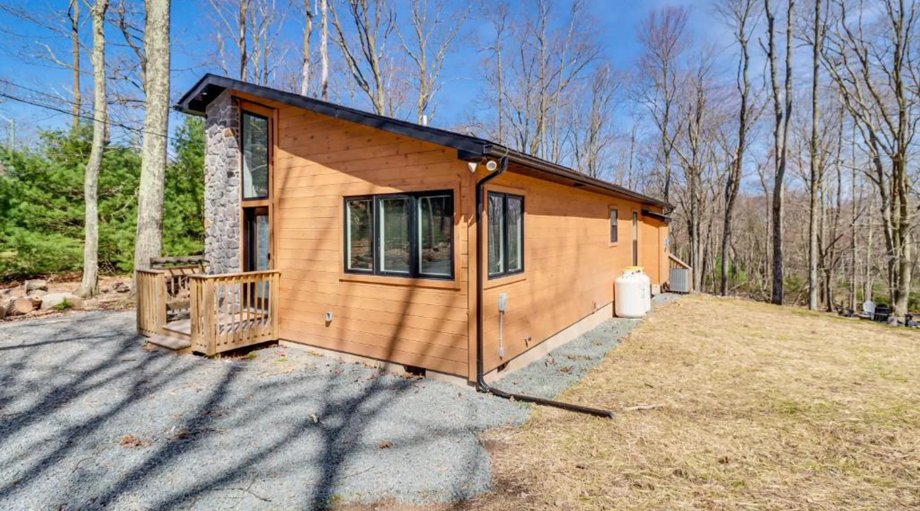 Spacious Holiday Home in Lake Harmony: Walk to Water Park Split-Rock Resort Home with Deck offers a spacious setting in Lake Harmony. The property features three bedrooms and two bathrooms, ensuring ample space for all guests. Exceptional Facilities: Guests can enjoy an indoor swimming pool, hot tub, and free WiFi. Additional amenities include air-conditioning, a washing machine, and a fully equipped kitchen with modern appliances. Comfortable Living Spaces: The home features a comfortable living room with a fireplace, perfect for relaxing. Outdoor dining areas provide additional space for leisure activities. Nearby Attractions: Located 40 mi from Wilkes-Barre/Scranton International Airport, the property is close to Jack Frost Mountain Resort (5.6 mi), Pocono Raceway (8.7 mi), Kalahari Waterpark (20 mi), and Great Wolf Lodge Pocono Mountains (22 mi). Winter sports enthusiasts will appreciate the surrounding area. The fireplace is the standout feature of this holiday home. This spacious holiday home comes with 2 living rooms, 3 separate bedrooms and 2 bathrooms with a bath and free toiletries. Guests will find a stovetop, a refrigerator, a dishwasher and kitchenware in the kitchen. The holiday home also includes a barbecue. This holiday home is air-conditioned and has a TV with cable channels, a washing machine, a private entrance and a coffee machine. The unit has 9 beds.