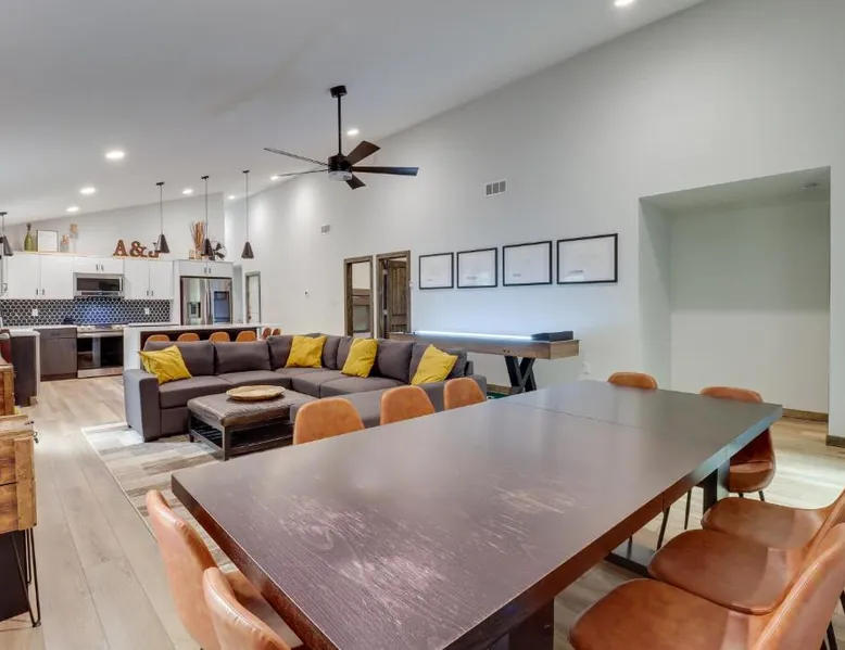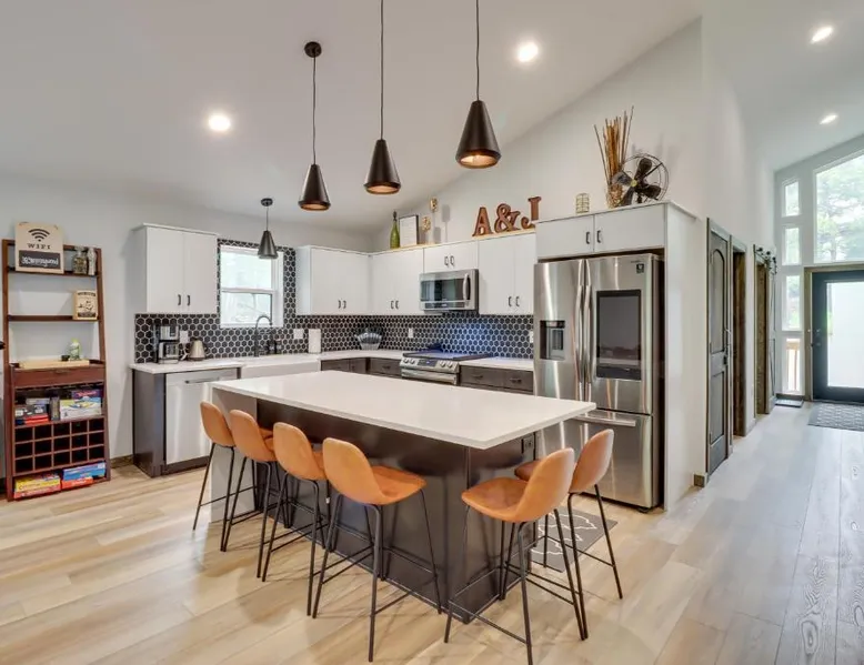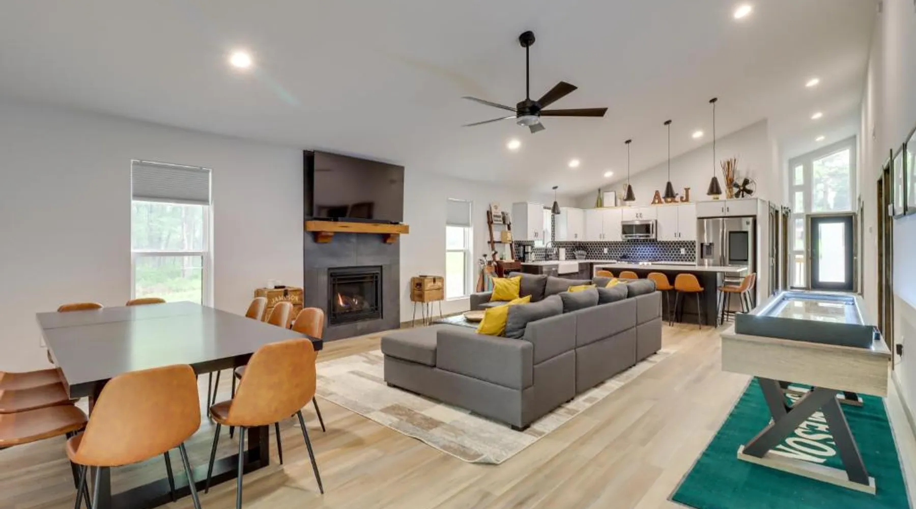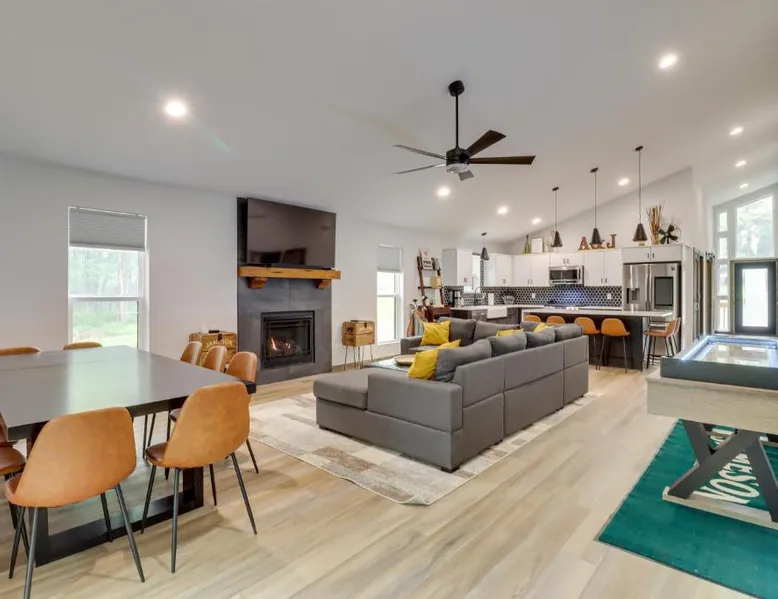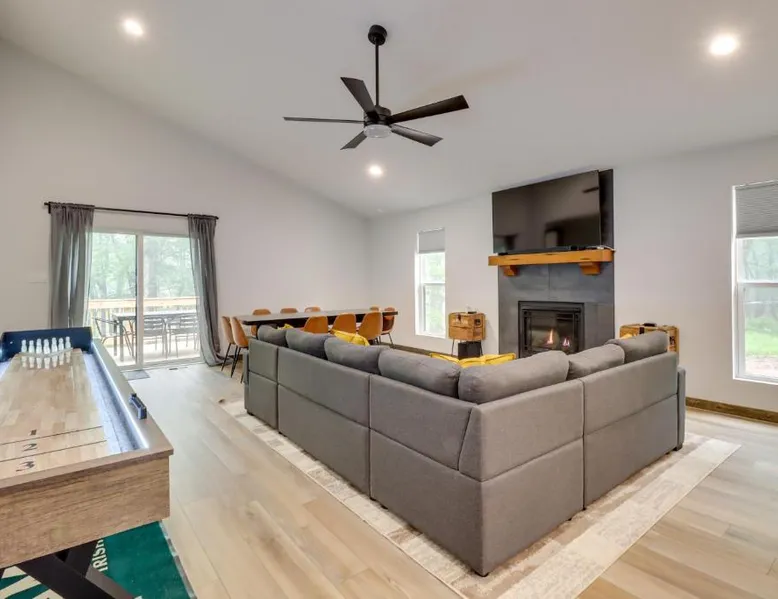 Spacious Holiday Home in Lake Harmony: Walk to Water Park Split-Rock Resort Home with Deck offers a spacious setting in Lake Harmony. The property features three bedrooms and two bathrooms, ensuring ample space for all guests. Exceptional Facilities: Guests can enjoy an indoor swimming pool, hot tub, and free WiFi. Additional amenities include air-conditioning, a washing machine, and a fully equipped kitchen with modern appliances. Comfortable Living Spaces: The home features a comfortable living room with a fireplace, perfect for relaxing. Outdoor dining areas provide additional space for leisure activities. Nearby Attractions: Located 40 mi from Wilkes-Barre/Scranton International Airport, the property is close to Jack Frost Mountain Resort (5.6 mi), Pocono Raceway (8.7 mi), Kalahari Waterpark (20 mi), and Great Wolf Lodge Pocono Mountains (22 mi). Winter sports enthusiasts will appreciate the surrounding area. The fireplace is the standout feature of this holiday home. This spacious holiday home comes with 2 living rooms, 3 separate bedrooms and 2 bathrooms with a bath and free toiletries. Guests will find a stovetop, a refrigerator, a dishwasher and kitchenware in the kitchen. The holiday home also includes a barbecue. This holiday home is air-conditioned and has a TV with cable channels, a washing machine, a private entrance and a coffee machine. The unit has 9 beds.