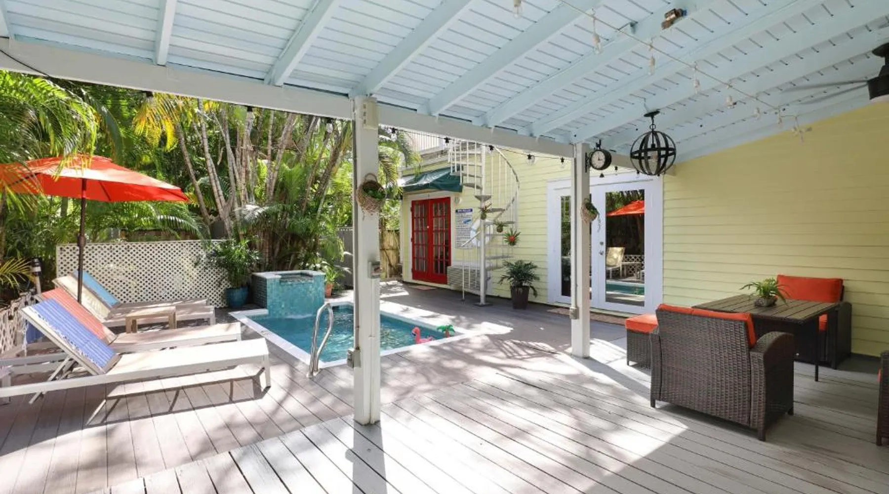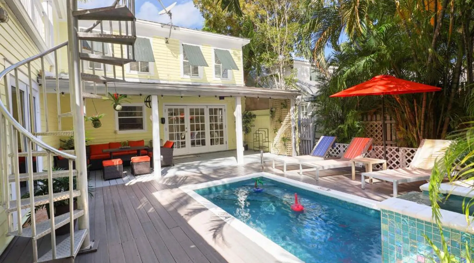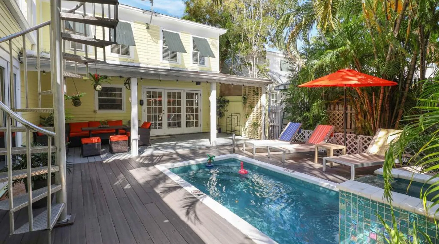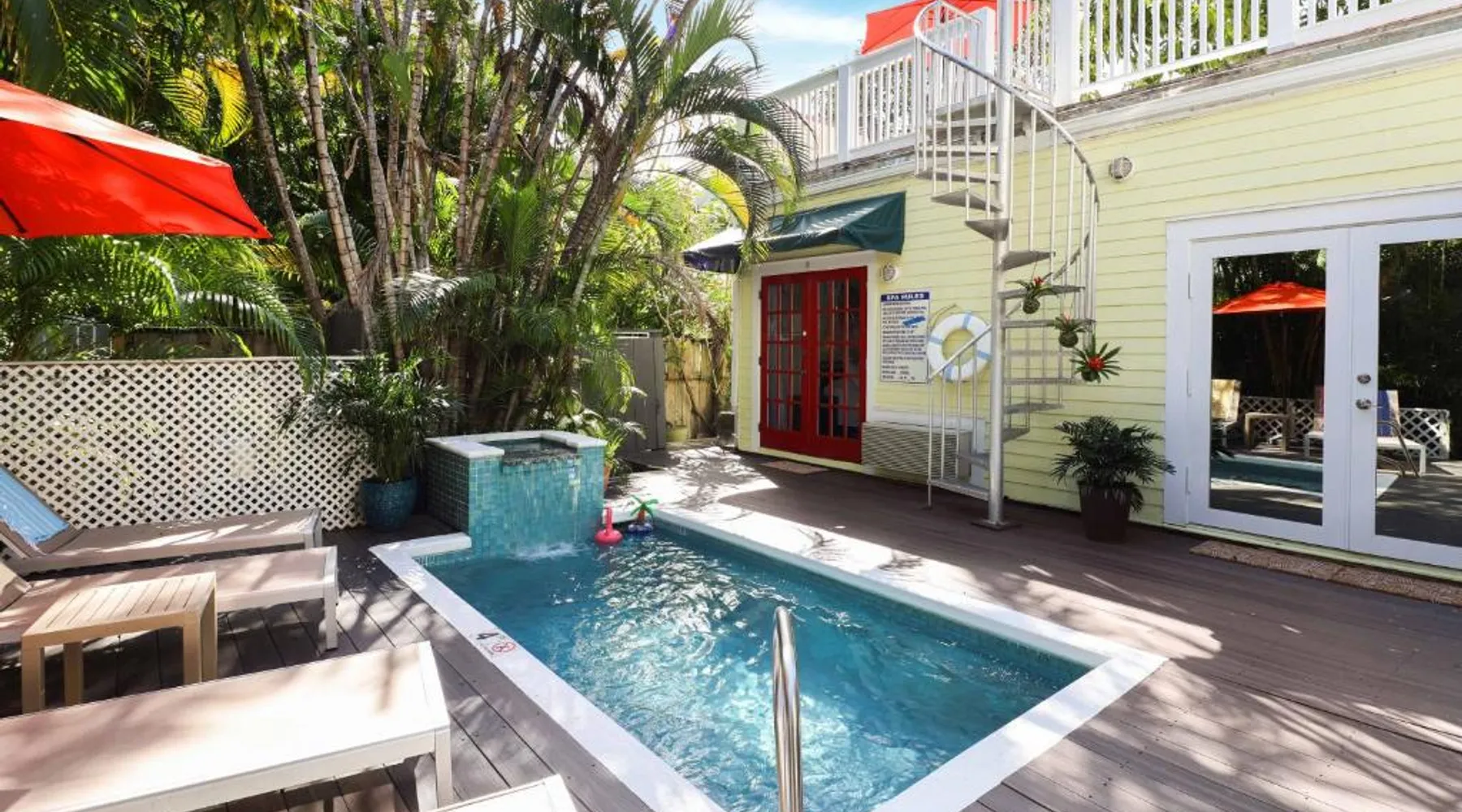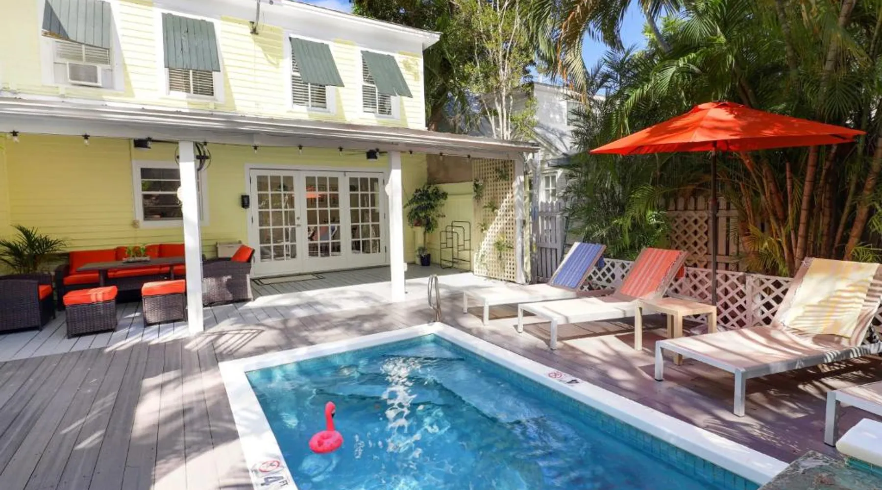 Knowles House is a vacation home featuring rooms with free Wifi and air conditioning in the center of Key West. This property offers a private pool and free private parking. Featuring a private entrance, the vacation home allows guests their privacy. The vacation home provides guests with a terrace, a seating area, a flat-screen TV, a fully equipped kitchenette with a microwave and a fridge, and a private bathroom with shower and a hair dryer. A stovetop and kitchenware are also featured, as well as a coffee machine. At the vacation home, the units are fitted with bed linen and towels. Guests can also relax in the shared lounge area. Popular points of interest near Knowles House include Simonton Street Beach, South Beach, and Duval Street. Key West International Airport is 1.9 miles away. The private pool is a top feature of this holiday home. Boasting a private entrance, this air-conditioned holiday home comes with 1 living room, 5 separate bedrooms and 5 bathrooms with a shower and a hairdryer. Guests will find a stovetop, a refrigerator, a dishwasher and kitchenware in the well-fitted kitchen. The holiday home also includes a barbecue. This holiday home has a washing machine, a tea and coffee maker, a flat-screen TV with streaming services and a terrace. The unit has 5 beds.