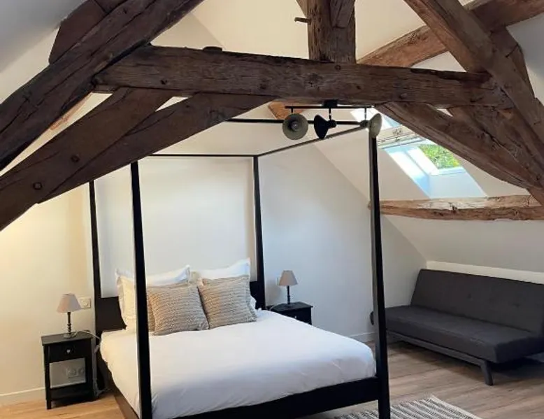 Historic Setting: Farmhouse of Château de La Motte-Feuilly in La Motte-Feuilly offers a recently renovated villa housed in a historic building. The property features a beautiful garden and a spacious terrace, ideal for relaxation. Modern Amenities: Guests enjoy free WiFi, air-conditioning, and a fully equipped kitchen with a dishwasher and oven. Additional amenities include a washing machine, work desk, and TV, ensuring a comfortable stay. Comfortable Accommodations: The villa consists of two bedrooms and three bathrooms, providing ample space for families. Free on-site private parking is available, and the property is pet-friendly. Local Attractions: Dryades Golf is 7.5 mi away, National Golf 29 mi, and Chateauroux Shooting Center 29 mi from the property. Reception staff speak English, Spanish, French, and Russian. The fully equipped kitchen has a stovetop, a refrigerator, a dishwasher and an oven. The air-conditioned villa features a flat-screen TV, a washing machine, a private entrance, tumble dryer as well as garden views. The unit has 2 beds.
