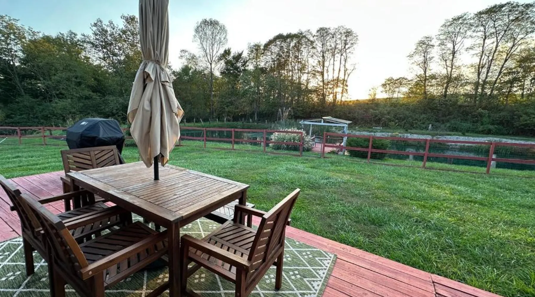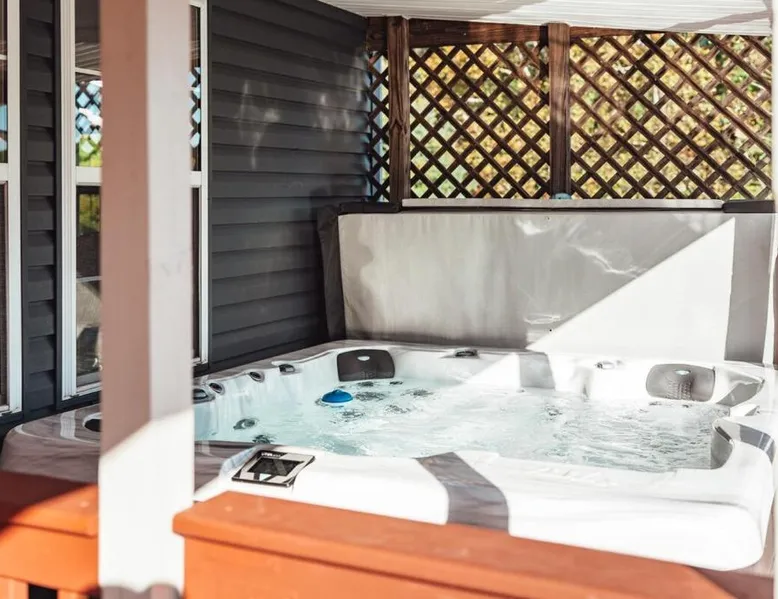 Elegant Holiday Home in Rockbridge: Sunset Cottage Hocking Hills offers a serene retreat in Rockbridge, Ohio. Guests enjoy a beautiful garden, a seasonal outdoor swimming pool, and free WiFi throughout the property. Comfortable Accommodations: The holiday home features one bedroom and one bathroom, equipped with air-conditioning, a hot tub, and family rooms. Free on-site private parking is available for guests. Modern Amenities: The property includes a fully equipped kitchen with a refrigerator, microwave, dishwasher, oven, and tea and coffee maker. Additional amenities include a washing machine, work desk, and TV. Nearby Attractions: Brass Ring Golf Club is located 13 mi away, and Rickenbacker International Airport is 44 mi from the property. This holiday home's standout features are the private pool and hot tub. Guests can make meals in the kitchen that is equipped with a refrigerator, a dishwasher, an oven and a microwave. The air-conditioned holiday home provides a flat-screen TV, a washing machine, a tea and coffee maker and tumble dryer. The unit offers 1 bed.