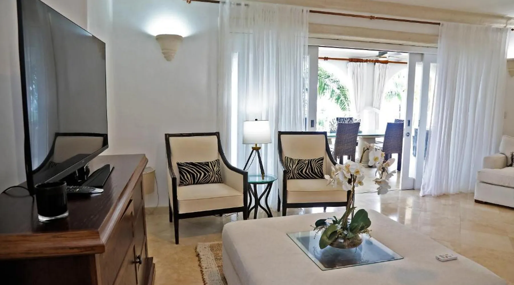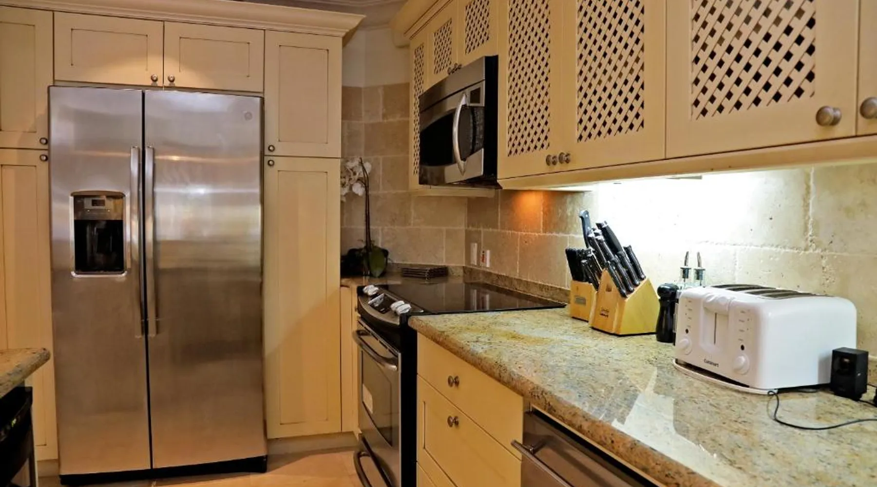 Spacious Accommodations: Saint Peter's Bay Beachfront 309 in Saint Peter offers spacious aparthotel units with three bedrooms and three bathrooms. Each apartment features a fully equipped kitchen, balcony with sea views, and a dining area. Exceptional Facilities: Guests enjoy a lush garden, terrace, outdoor swimming pool, and a bar. Free WiFi is available throughout the property, ensuring connectivity. Additional amenities include a hot tub, 24-hour front desk, and free on-site private parking. Comfortable Living: The aparthotel provides a comfortable stay with air-conditioning, bathrobes, and a spa bath. Each unit is equipped with a washing machine, dining table, and a fully fitted kitchen. Breakfast options include continental, American, buffet, and full English/Irish. Prime Location: Located 19 mi from Grantley Adams International Airport, Saint Peter's Bay Beachfront 309 is a short walk from Godings Bay Beach and close to Mullins Beach and Gibbes Beach. Highly rated by guests for its spaciousness and excellent facilities. This spacious apartment features 3 bedrooms, kitchen, a terrace and 3 bathrooms with a bath. In the well-equipped kitchen, guests will find a stovetop, a refrigerator, kitchenware and a microwave. The air-conditioned apartment features a flat-screen TV, a washing machine, a tea and coffee maker, a dining area as well as sea views. The unit has 3 beds.