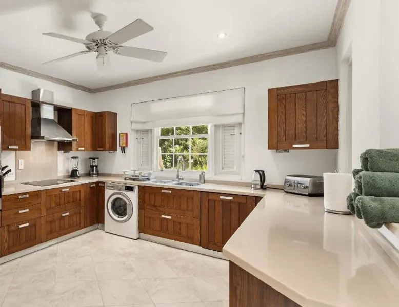 Spacious Accommodations: Blue Horizon Battaleys Mews Mullins Barbados in Mullins offers a spacious villa with three bedrooms and two bathrooms. The property features a private pool, terrace, and balcony, ensuring ample space for relaxation. Outdoor Amenities: Guests can enjoy a year-round outdoor swimming pool, tennis court, and lush garden. The terrace and balcony provide ideal settings for outdoor dining and leisure activities. Free WiFi is available throughout the property. Convenient Location: Located 19 mi from Grantley Adams International Airport, the villa is a short walk from Mullins Beach and close to Gibbes Beach and Godings Bay Beach. Nearby attractions enhance the stay with various activities such as snorkeling. Guest Services: Private check-in and check-out services, a fitness room, hot tub, and outdoor play area cater to all guest needs. Free on-site private parking is provided, and the property is highly rated for its convenient location. Guests will have a special experience as this villa provides a private pool. In the well-equipped kitchen, guests will find a stovetop, a refrigerator, a dishwasher and kitchenware. The spacious villa offers air conditioning, a washing machine, a private entrance, a tea and coffee maker, as well as a flat-screen TV with streaming services. The unit offers 4 beds.