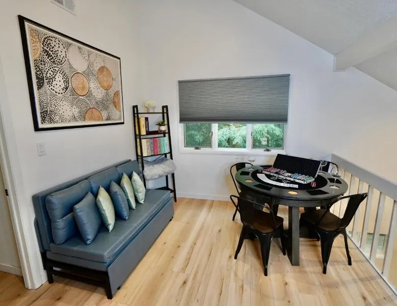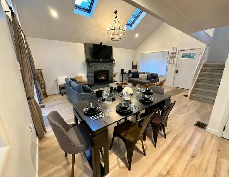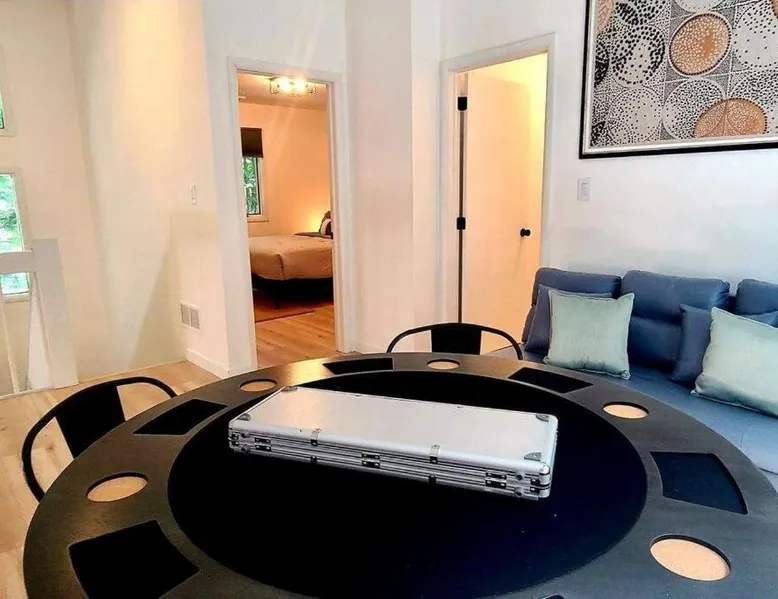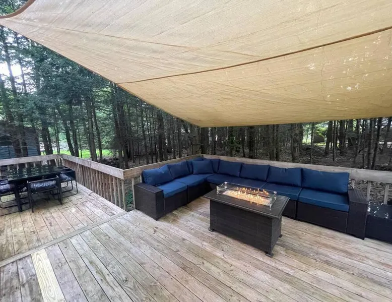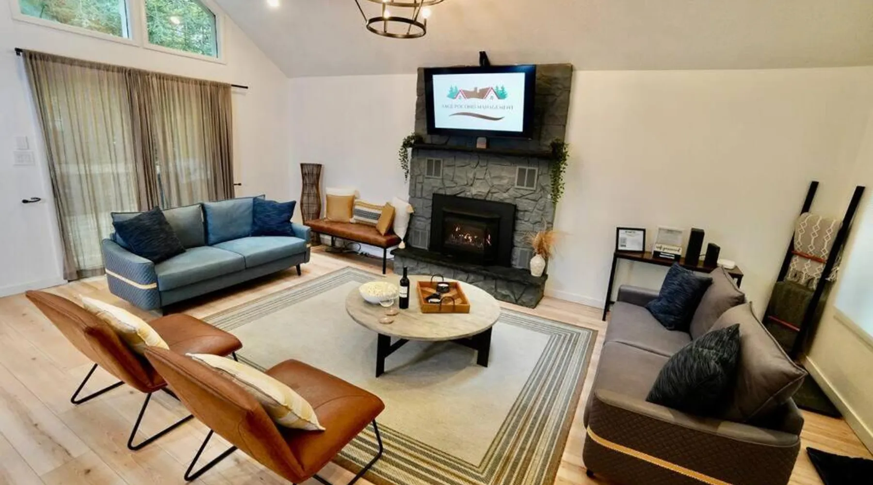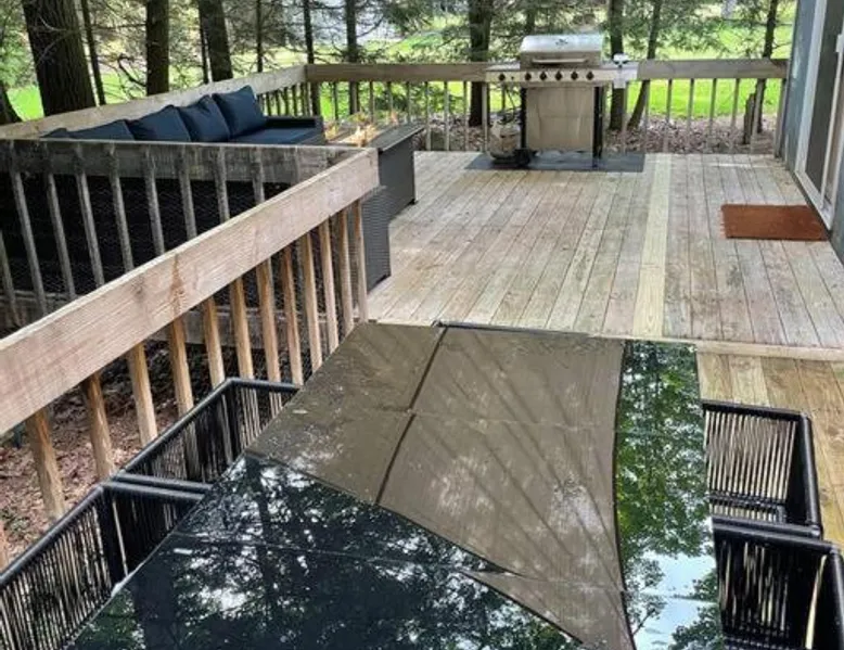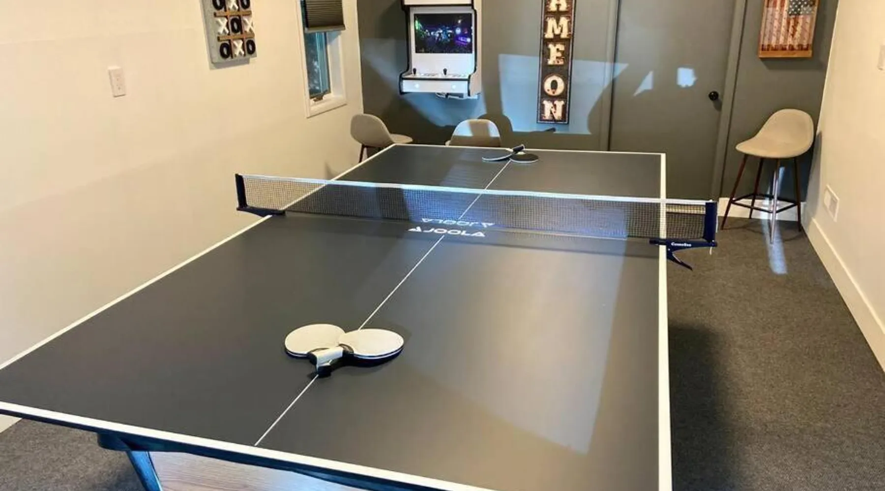Spacious Holiday Home: Poconos Oasis with Game Room in Pocono Summit offers a spacious setting with three bedrooms and two bathrooms. The living room features a sofa bed and a fireplace, providing comfort for all guests. Modern Amenities: Guests enjoy free WiFi, air-conditioning, streaming services, and a fully equipped kitchen with a dishwasher, microwave, and oven. Additional amenities include a washing machine, spa bath, and outdoor dining area. Convenient Location: Located 40 mi from Wilkes-Barre/Scranton International Airport, the property is near attractions such as Kalahari Waterpark (2.5 mi), Great Wolf Lodge Pocono Mountains (8.1 mi), and Delaware Water Gap National Recreation Area (23 mi). The spa bath and fireplace are the special features of this holiday home. Guests will find a stovetop, a refrigerator, a dishwasher and an oven in the fully equipped kitchen. The holiday home also comes with a barbecue. The spacious air-conditioned holiday home features a flat-screen TV with streaming services, a washing machine, a private entrance, a tea and coffee maker as well as a quiet street view. The unit has 5 beds.