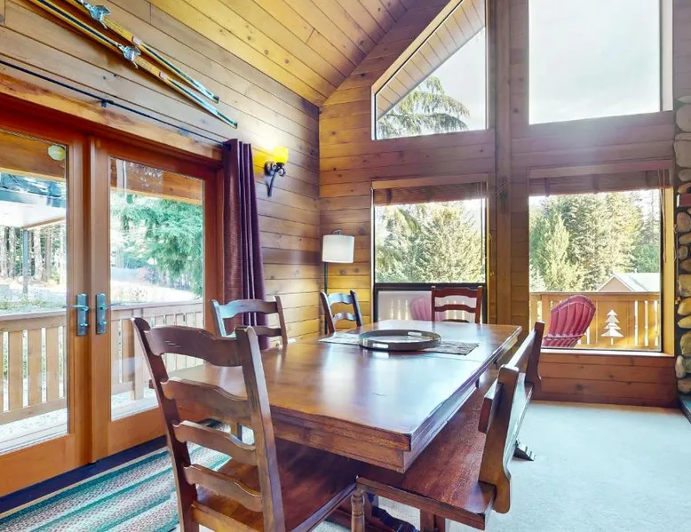 Spacious Holiday Home in Snoqualmie Pass: Mountain View Getaway offers a spacious holiday home in Snoqualmie Pass, United States. The property features two bedrooms and two bathrooms, a comfortable living room, and a fully equipped kitchen. Outdoor Amenities: Guests can enjoy an outdoor fireplace, hot tub, and outdoor seating area. The terrace and balcony provide mountain views, while the patio is perfect for relaxation. Modern Facilities: The holiday home includes streaming services, a washing machine, and a work desk. Additional amenities include a microwave, dishwasher, and free toiletries. Activities and Attractions: Skiing enthusiasts can enjoy winter sports in the surrounding area. Snoqualmie Casino is 29 mi away, and Snoqualmie Falls is 30 mi from the property. Seattle Lake Union Seaplane Base is 56 mi distant. The hot tub is a top feature of this holiday home. This spacious holiday home comes with 1 living room, 2 separate bedrooms and 2 bathrooms with a hairdryer and free toiletries. Guests will find a stovetop, a refrigerator, a dishwasher and kitchenware in the well-fitted kitchen. The holiday home also includes a barbecue. Boasting a terrace with mountain views, this holiday home also features a washing machine and a TV with streaming services. The unit has 6 beds and 2 futons.
