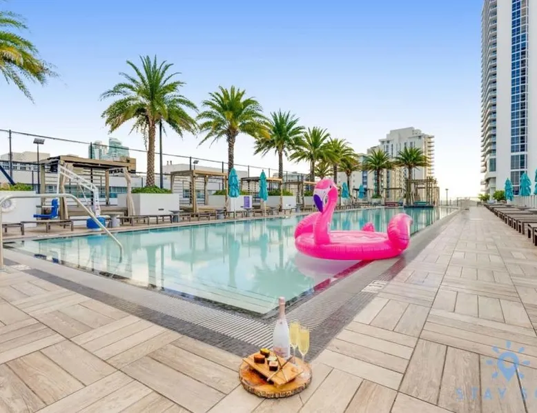 Comfortable Accommodations: Coastal Relaxation - Parking Included - Amazing Pools in Hollywood offers a two-bedroom, three-bathroom apartment with a living room. The property includes air-conditioning, a fitness center, outdoor swimming pool, and free WiFi. Modern Amenities: Guests can enjoy a hot tub, washing machine, patio, fully equipped kitchen with a refrigerator, microwave, dishwasher, and oven. Additional amenities include a work desk, TV, and free on-site parking. Prime Location: Located 11 mi from Fort Lauderdale-Hollywood International Airport, the apartment is a 4-minute walk from North City Beach Park. Nearby attractions include Hard Rock Stadium (9.9 mi) and Broward Center for the Performing Arts (14 mi). A restaurant is also in the surroundings. Highly Rated by Guests: Guests appreciate the excellent facilities and comfortable accommodations, making it a preferred choice for a relaxing stay. Guests will have a special experience as the holiday home provides a hot tub. This air-conditioned holiday home consists of 1 living room, 2 separate bedrooms and 3 bathrooms with a hairdryer. Meals can be prepared in the kitchen, which is equipped with a stovetop, a refrigerator, a dishwasher and kitchenware. This holiday home features a washing machine, a tea and coffee maker, a TV with cable channels and a patio. The unit offers 4 beds.