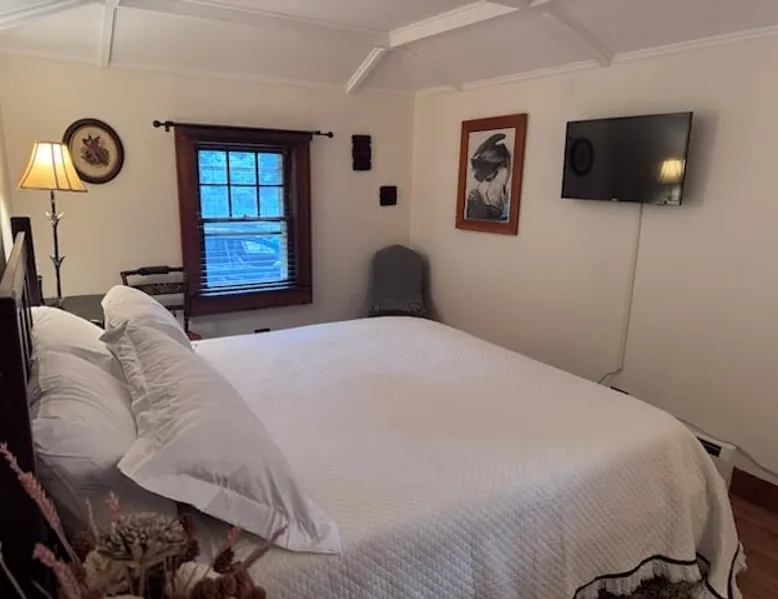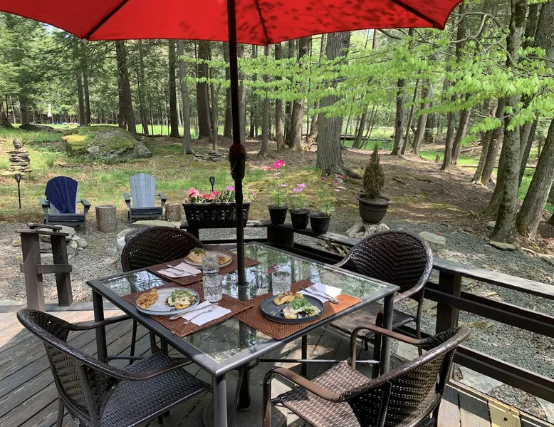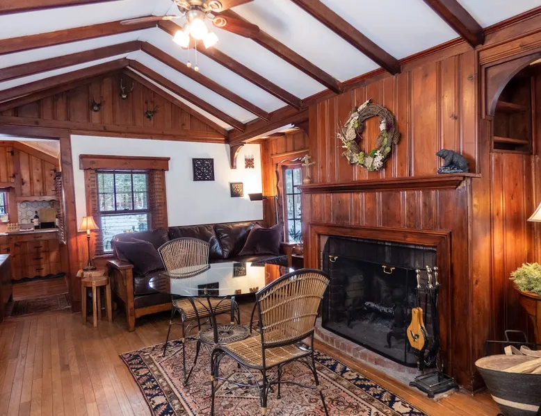 On arrival you will feel like you are in a fairy tale at Enchanted Fox Dell Cottage, presented by StayBettr Vacation Rentals. Nooks and crannies abound at this lovingly maintained cottage. Original wood features and inviting bay windows adorn the home. Yet modern luxuries abound in the recently renovated bathroom suite. On cold Catskills winter nights, the fireplace will be a center of conversation and games for your group. The space Outdoors you'll have expansive decks and shaded dining area to enjoy the mountain breezes, sunsets, and stars here in the Catskills. The back deck includes a gas and table seating for 4. There is also a creek-side fire ring in the backyard. Detailed Information on Spaces (See Floorplans in Photos): Main Level: Bedroom 1: King Bed, TV Bedroom 2: Full Bed. TV Bedrooms 1 and 2 share a bathroom with shower. Guest access Guests will have access to the entire property. Other things to note You will be required to sign a rental agreement after the booking is confirmed. Full terms of the agreement are available on request. Additionally, you will be required to upload an approved government identification card or passport when you complete the rental agreement. If you have questions about either of these requirements please message us prior to booking. Fees may apply for early check-ins, late check-outs, and additional optional services. We monitor for compliance to occupancy rules using various technologies at the property. This home is pet free. No exceptions. No more than 2 cars allowed.