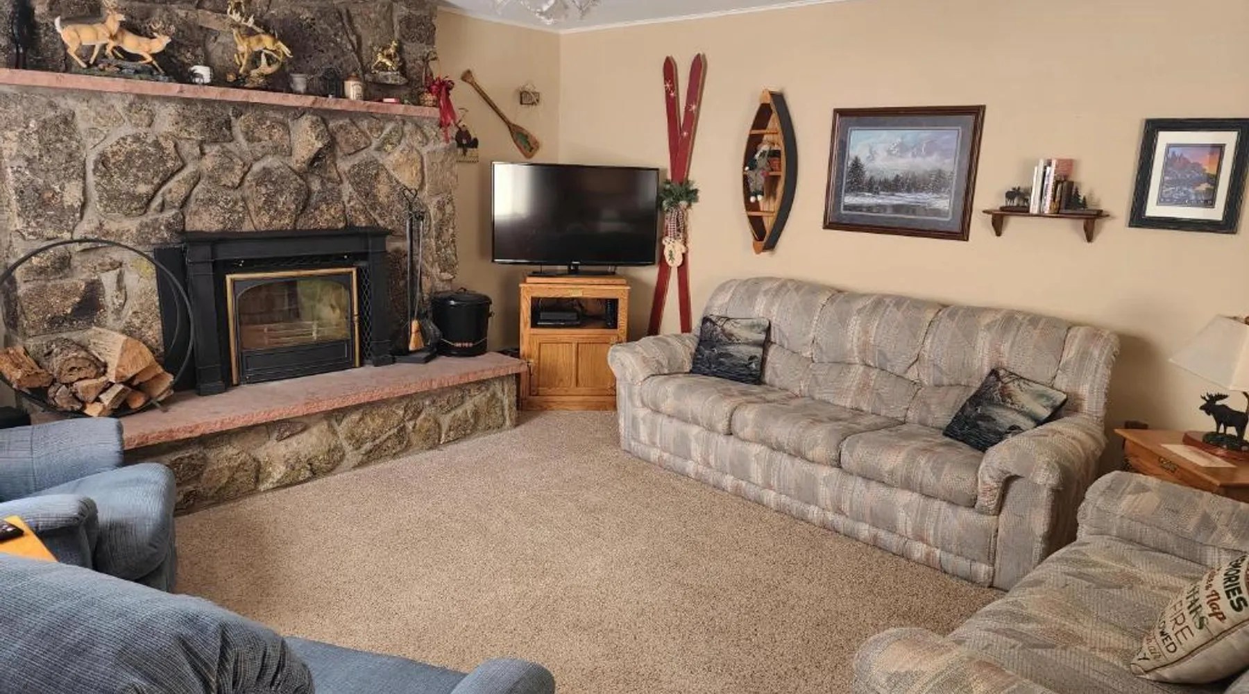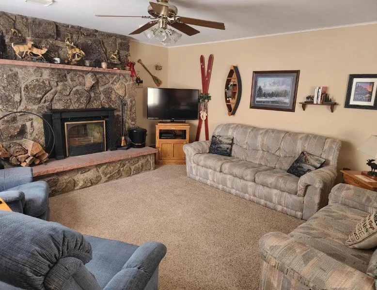 Comfortable Accommodations: Rocky Mountain National Park Entrance one Mile in Grand Lake offers a holiday home with two bedrooms and a bathroom. The ground-floor unit features a private entrance, carpeted and tiled floors, and a sofa bed. Modern Amenities: Guests enjoy free WiFi, a washing machine, and a fully equipped kitchen with a dishwasher, microwave, and oven. Additional amenities include a fireplace, barbecue, patio, and outdoor dining area. Scenic Views: The property offers mountain views and a quiet street setting. An outdoor furniture set enhances the relaxing atmosphere. Local Attractions: Rocky Mountain Metropolitan Airport is 107 mi away. Boating opportunities are available in the surrounding area. The fireplace is a top feature of this holiday home. Boasting a private entrance, this holiday home also comes with 2 bedrooms, a seating area and 1 bathroom with a bath and a hairdryer. Guests will find a stovetop, a refrigerator, a dishwasher and kitchenware in the fully equipped kitchen. The holiday home also includes a barbecue. Among the room amenities are a washing machine, a tea and coffee maker, a dining area as well as a patio and mountain views. The unit has 4 beds.