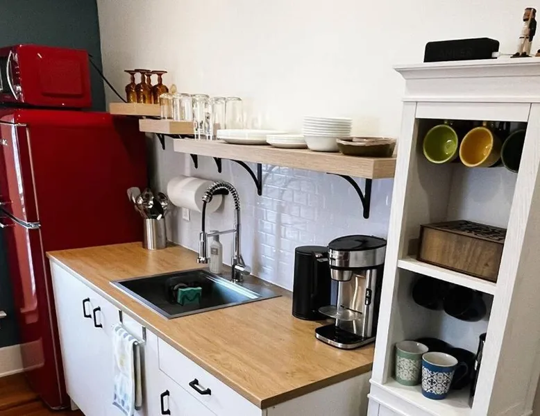 Historic Setting: Fiesinger House in Sandusky offers a private apartment in a historic home. The property features a garden and terrace, complemented by free WiFi. Comfortable Living: The apartment includes three bedrooms and a bathroom. Amenities include air-conditioning, a kitchenette, tea and coffee maker, garden views, and a work desk. Outdoor Spaces: Guests can enjoy an outdoor fireplace, seating area, and picnic area. Free on-site private parking is available. Local Attractions: Merry Go Round Museum is a 6-minute walk away, Sandusky State Theater 2297 feet, and Sandusky Maritime Museum less than 0.6 mi. Cleveland Hopkins International Airport is 52 mi from the property. In the kitchenette, guests will find a stovetop, a refrigerator and a microwave. The air-conditioned apartment features a flat-screen TV, a private entrance, a tea and coffee maker, a high chair for children as well as garden views. The unit has 4 beds.