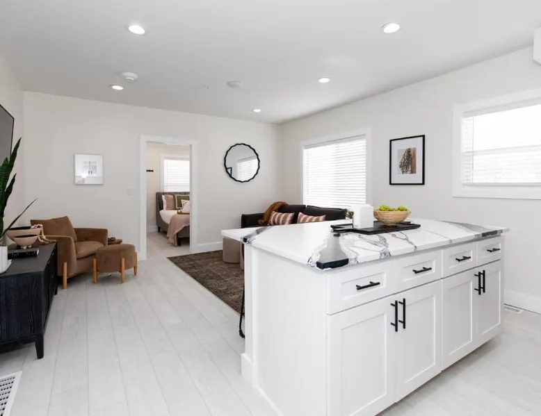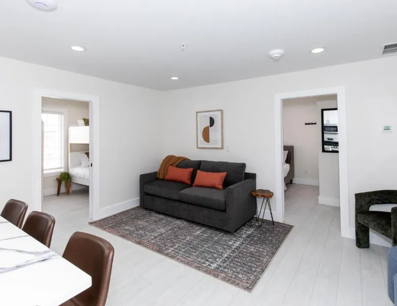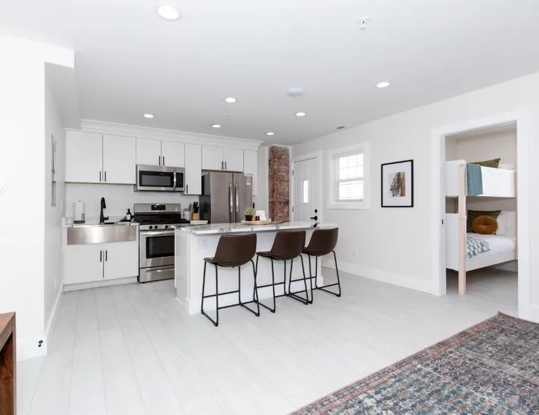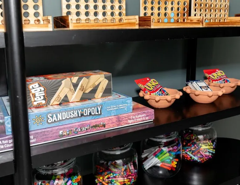 Comfortable Accommodations: Inn At Fulton Boutique Hotel in Sandusky offers family rooms with air-conditioning, kitchen facilities, and balconies. Each room includes a tea and coffee maker, hairdryer, coffee machine, refrigerator, microwave, dishwasher, TV, kitchenware, oven, stovetop, and toaster. Convenient Location: Located 53 mi from Cleveland Hopkins International Airport, the hotel is a short walk from the Merry Go Round Museum and close to Sandusky State Theater and Sandusky Maritime Museum. Nearby attractions include Cedar Point Amusement Park (4.3 mi), Kalahari Waterpark Resort (6.8 mi), African Safari Wildlife Park (12 mi), and Mill Hollow Bacon Woods Memorial Park (27 mi). In the well-fitted kitchen, guests will find a stovetop, a refrigerator, a dishwasher and kitchenware. Boasting a balcony, this quadruple room also features air conditioning, a tea and coffee maker and a flat-screen TV.