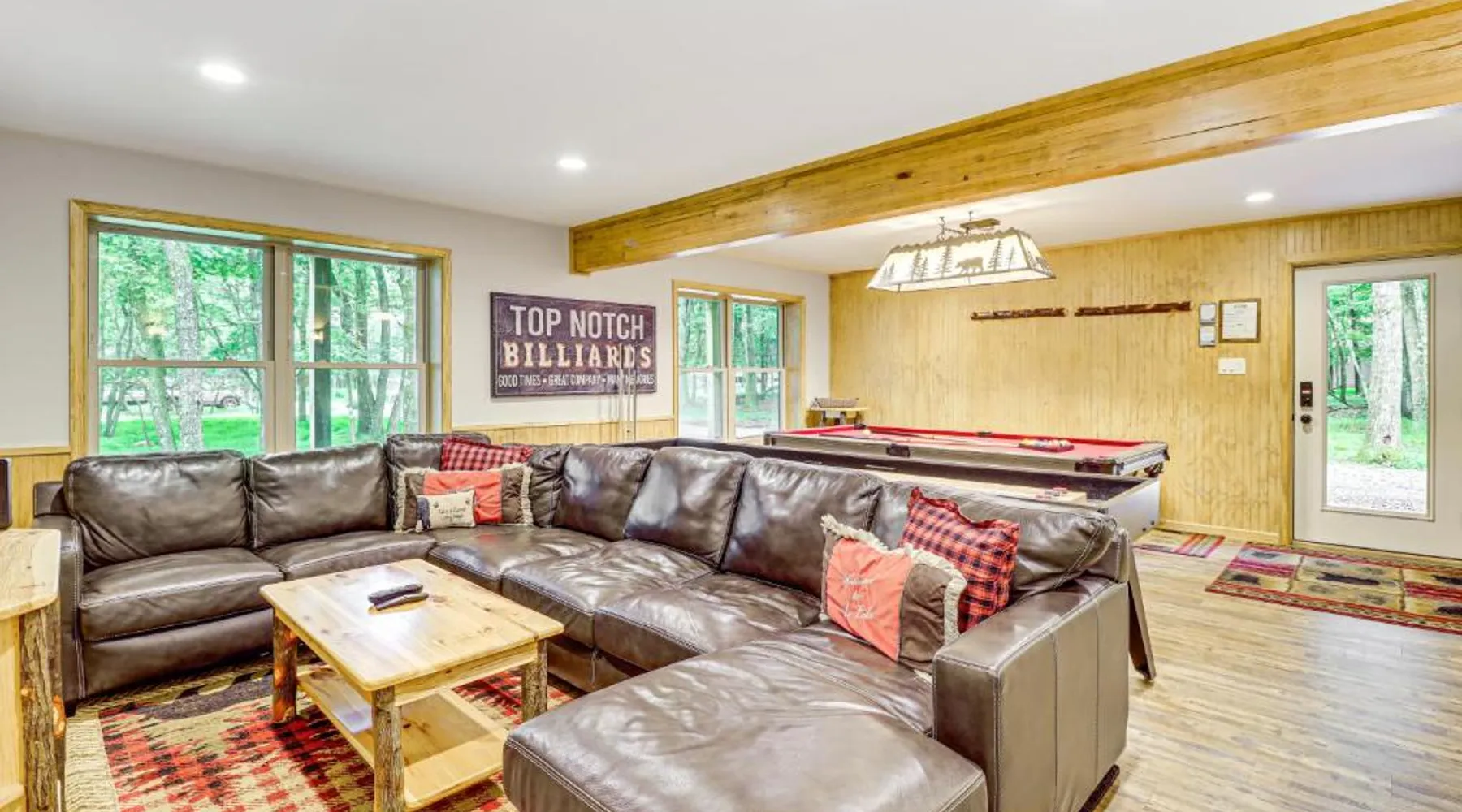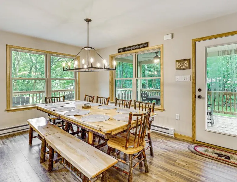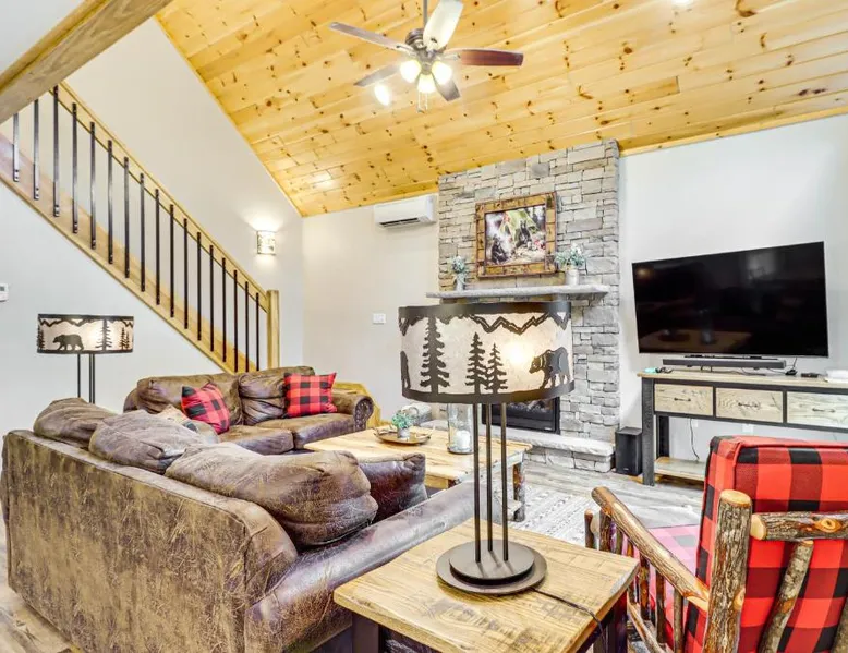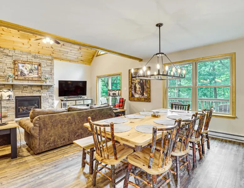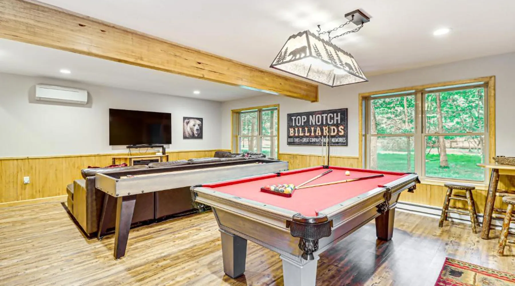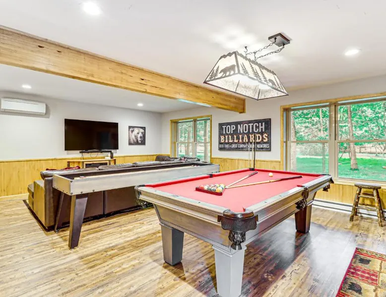Spacious Accommodations: Forest Views and Hot Tub Poconos Cozy Cabin in Albrightsville offers a spacious holiday home with five bedrooms and three bathrooms. The living room features a fireplace and dining area, ensuring comfort for all guests. Outdoor Amenities: Guests can enjoy an outdoor swimming pool and hot tub, perfect for relaxation. Free WiFi is available throughout the property, enhancing the stay experience. Leisure Facilities: The property includes a games room with various games, providing entertainment for all ages. Additional amenities include air-conditioning, washing machine, and a fully equipped kitchen with modern appliances. The hot tub and fireplace are the standout features of this holiday home. This spacious holiday home includes 2 living rooms, 5 separate bedrooms and 3 bathrooms with a bath or a shower and free toiletries. Guests will find a stovetop, a refrigerator, a dishwasher and kitchenware in the kitchen. The holiday home also features a barbecue. The air-conditioned holiday home offers a flat-screen TV with cable channels, a washing machine, a private entrance and a coffee machine. The unit has 11 beds.