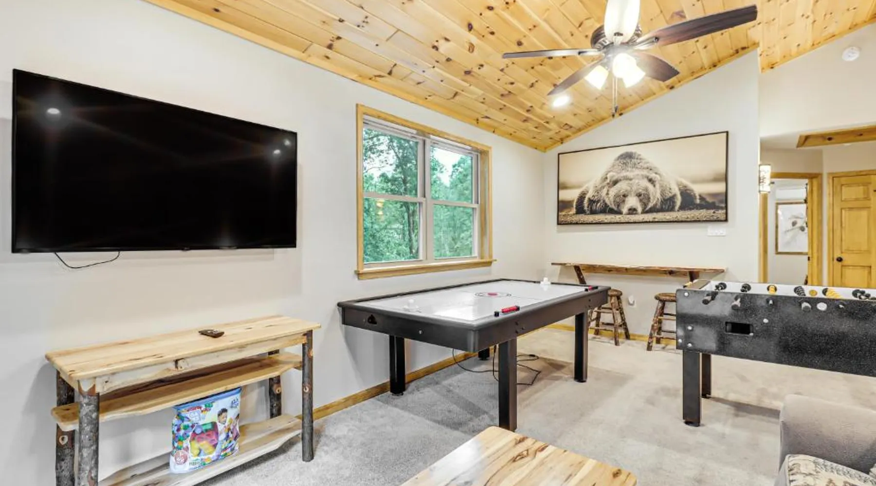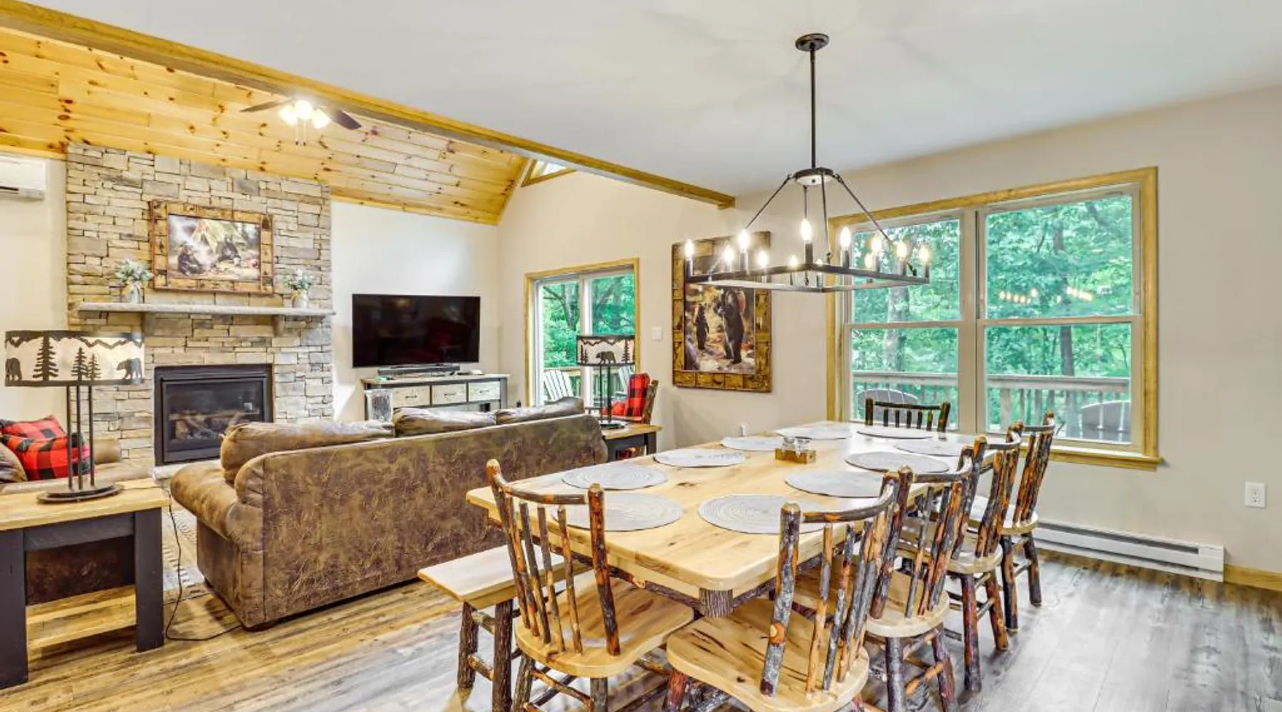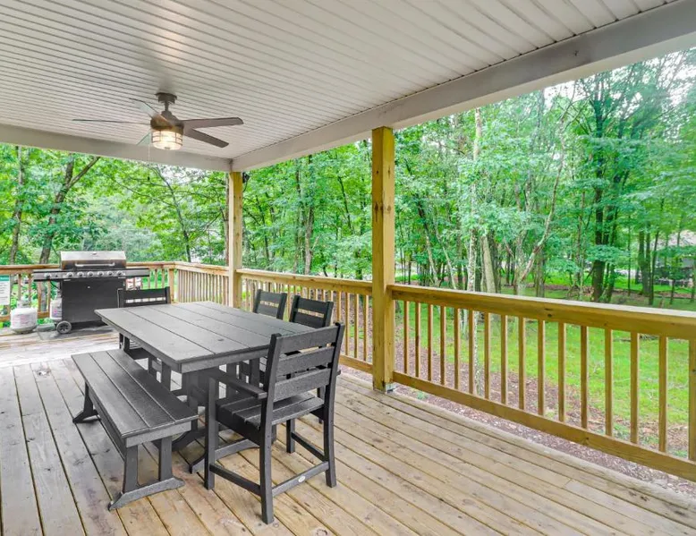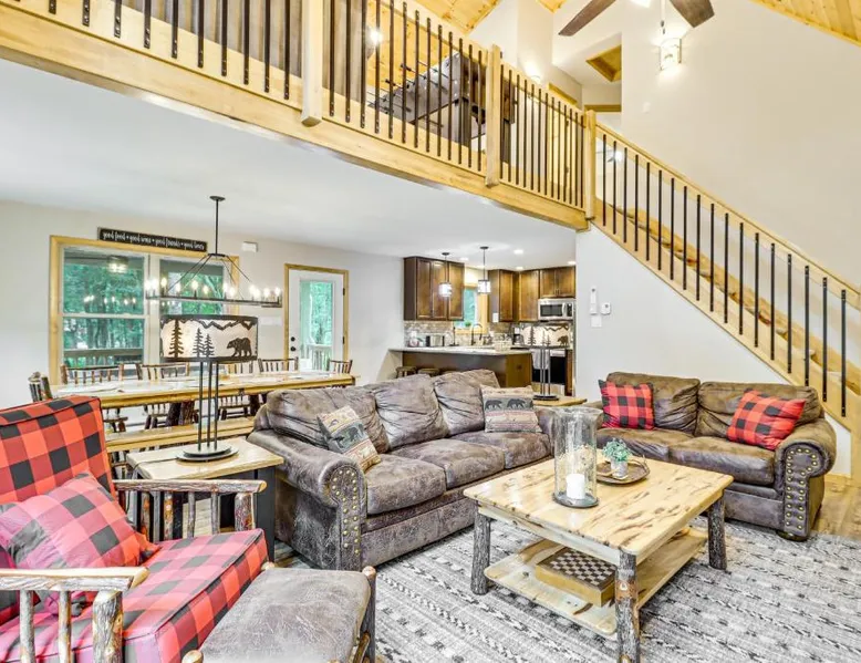 Spacious Accommodations: Forest Views and Hot Tub Poconos Cozy Cabin in Albrightsville offers a spacious holiday home with five bedrooms and three bathrooms. The living room features a fireplace and dining area, ensuring comfort for all guests. Outdoor Amenities: Guests can enjoy an outdoor swimming pool and hot tub, perfect for relaxation. Free WiFi is available throughout the property, enhancing the stay experience. Leisure Facilities: The property includes a games room with various games, providing entertainment for all ages. Additional amenities include air-conditioning, washing machine, and a fully equipped kitchen with modern appliances. The hot tub and fireplace are the standout features of this holiday home. This spacious holiday home includes 2 living rooms, 5 separate bedrooms and 3 bathrooms with a bath or a shower and free toiletries. Guests will find a stovetop, a refrigerator, a dishwasher and kitchenware in the kitchen. The holiday home also features a barbecue. The air-conditioned holiday home offers a flat-screen TV with cable channels, a washing machine, a private entrance and a coffee machine. The unit has 11 beds.