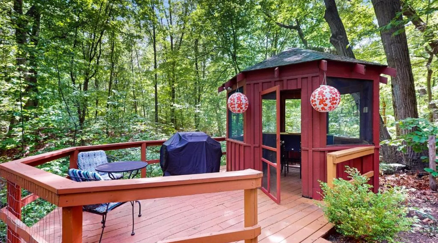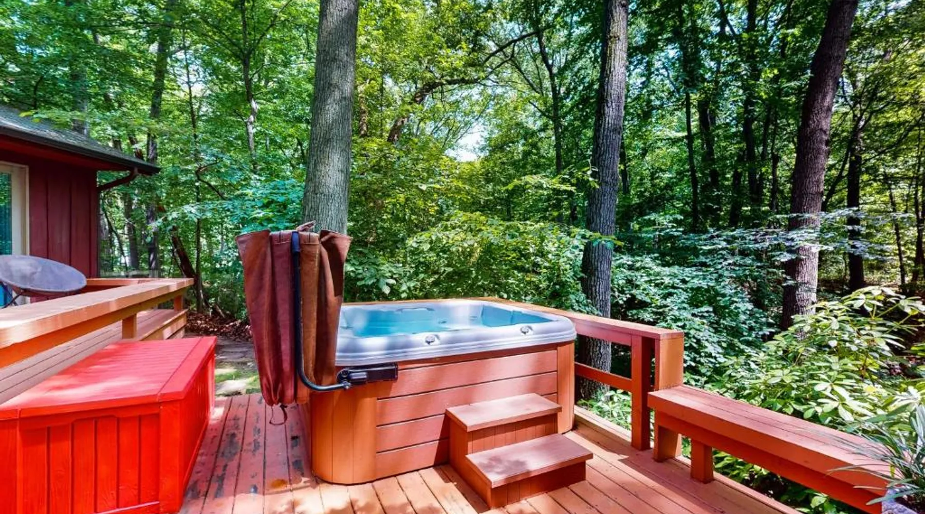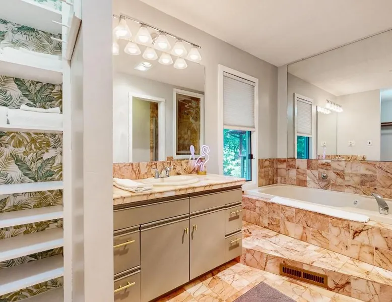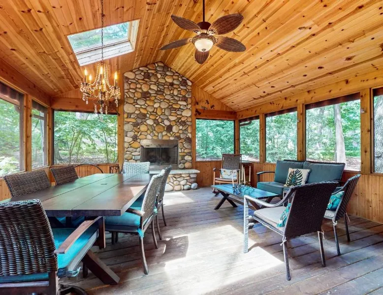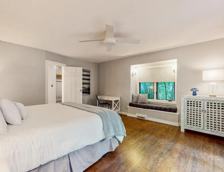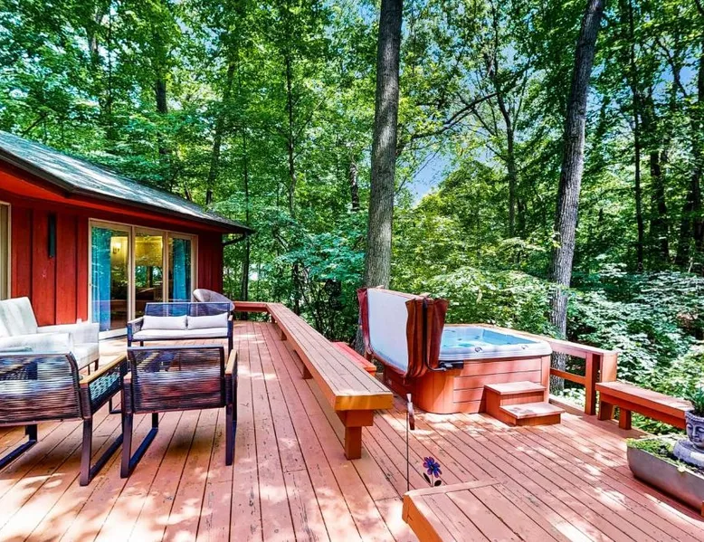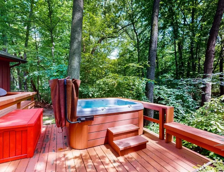 Spacious Holiday Home in New Buffalo: The Tree House offers a spacious setting with two bedrooms and two bathrooms. Guests enjoy a private entrance and a fully equipped kitchen with modern appliances. Outdoor Amenities: The property features an outdoor fireplace, hot tub, and outdoor seating area. Additional amenities include air-conditioning, streaming services, and a washing machine. Convenient Location: Located 35 mi from South Bend Regional Airport, The Tree House is 1.4 mi from New Buffalo Beach. Nearby attractions include the New Buffalo Marina and the New Buffalo Golf Club. This luxurious holiday home has a hot tub, a spa bath and a fireplace. The spacious holiday home features 2 bedrooms and 2 bathrooms with a hairdryer and free toiletries. Guests will find a stovetop, a refrigerator, a dishwasher and kitchenware in the fully equipped kitchen. The holiday home also offers a barbecue. The air-conditioned holiday home provides a flat-screen TV with streaming services, a washing machine, a private entrance and a tea and coffee maker. The unit offers 4 beds.