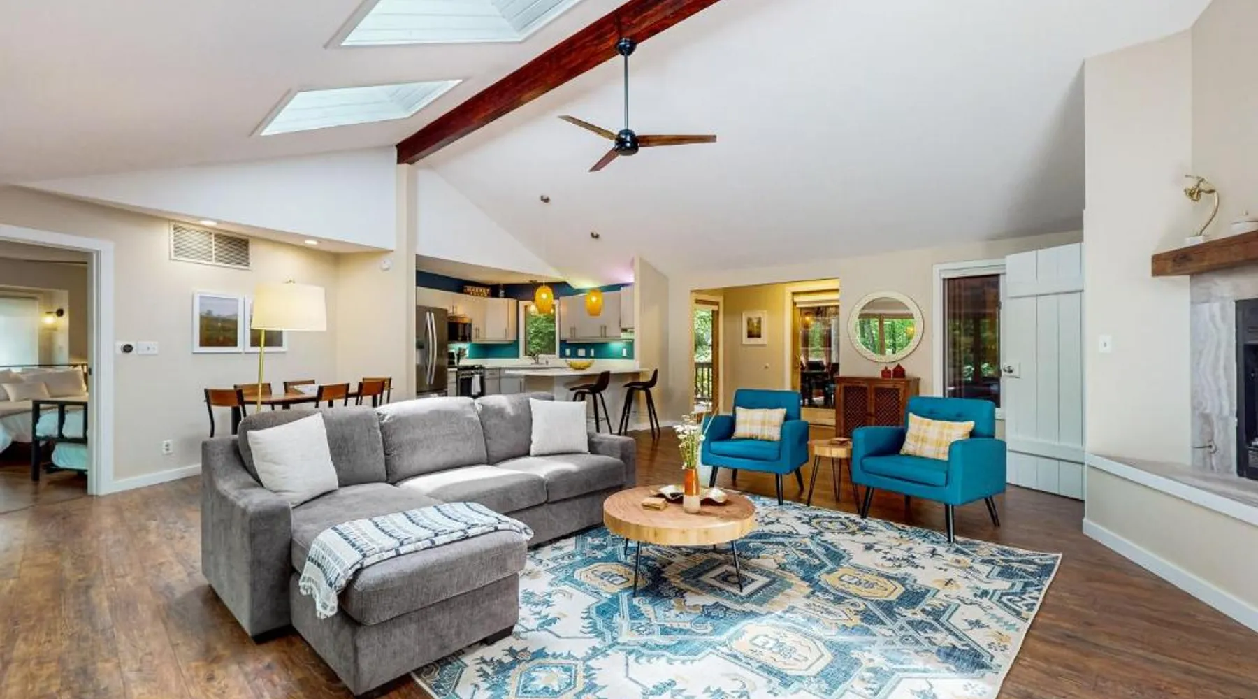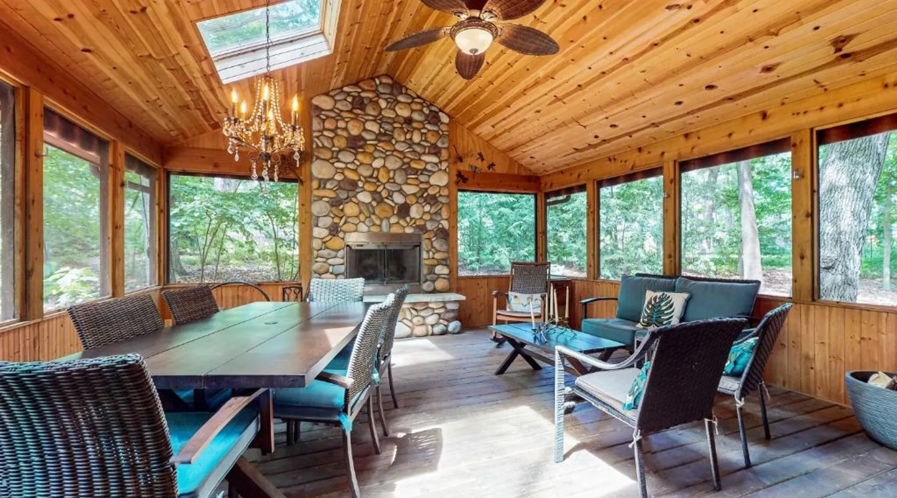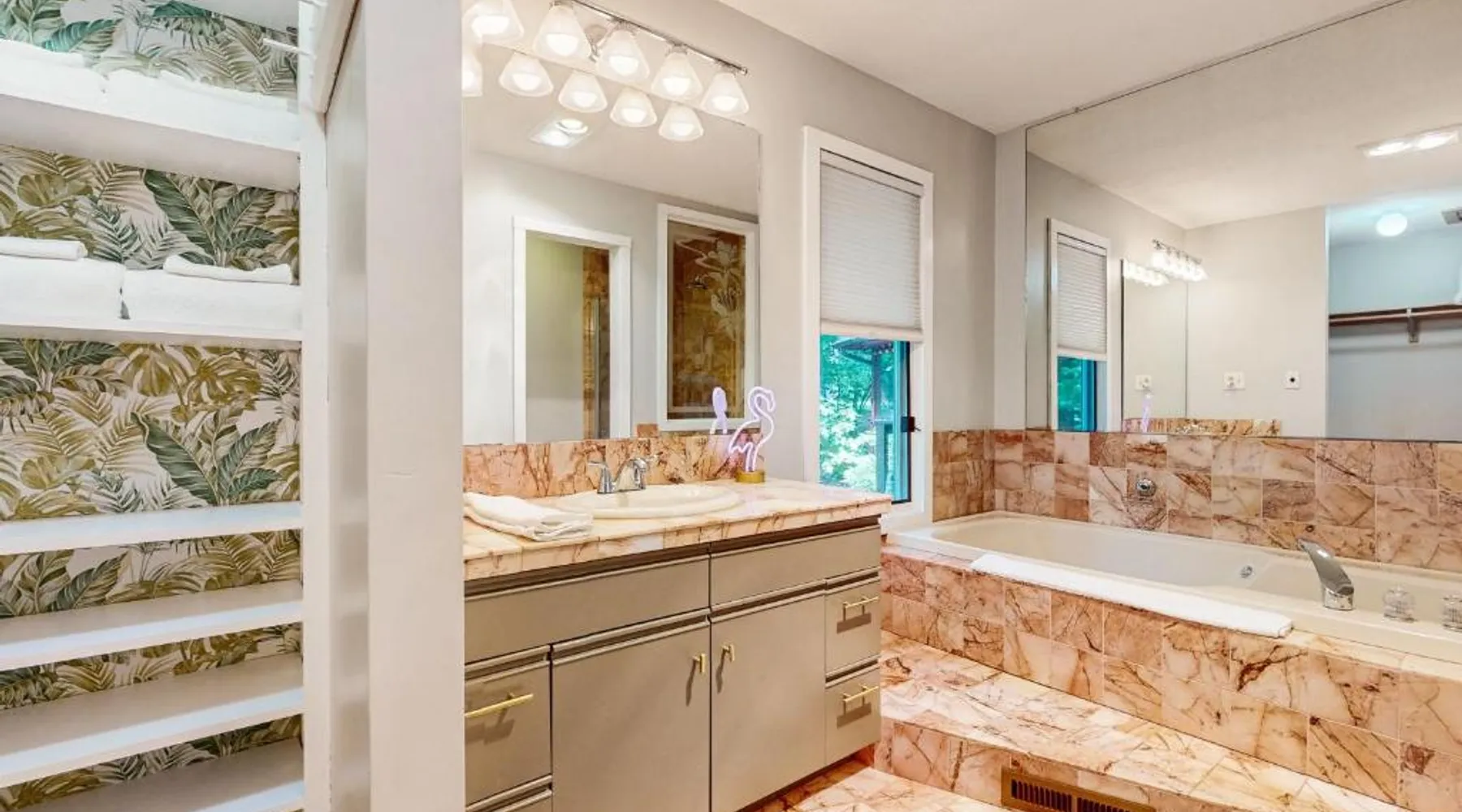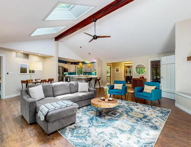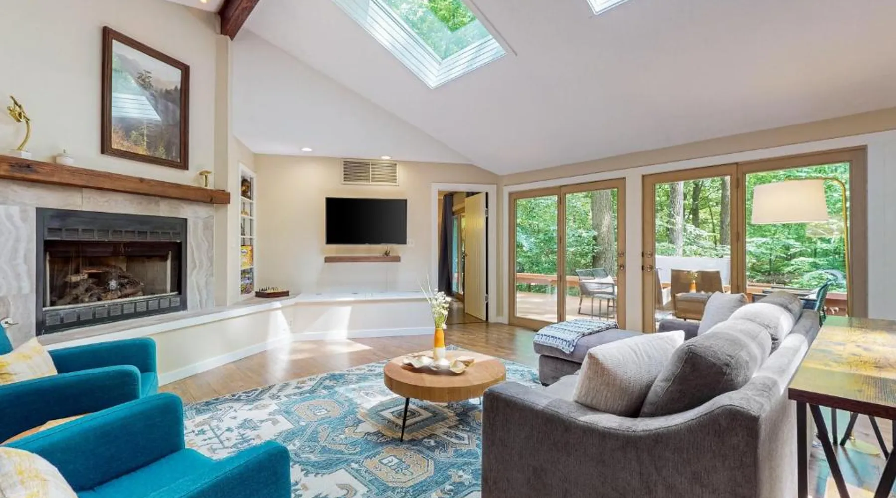 Spacious Holiday Home in New Buffalo: The Tree House offers a spacious setting with two bedrooms and two bathrooms. Guests enjoy a private entrance and a fully equipped kitchen with modern appliances. Outdoor Amenities: The property features an outdoor fireplace, hot tub, and outdoor seating area. Additional amenities include air-conditioning, streaming services, and a washing machine. Convenient Location: Located 35 mi from South Bend Regional Airport, The Tree House is 1.4 mi from New Buffalo Beach. Nearby attractions include the New Buffalo Marina and the New Buffalo Golf Club. This luxurious holiday home has a hot tub, a spa bath and a fireplace. The spacious holiday home features 2 bedrooms and 2 bathrooms with a hairdryer and free toiletries. Guests will find a stovetop, a refrigerator, a dishwasher and kitchenware in the fully equipped kitchen. The holiday home also offers a barbecue. The air-conditioned holiday home provides a flat-screen TV with streaming services, a washing machine, a private entrance and a tea and coffee maker. The unit offers 4 beds.