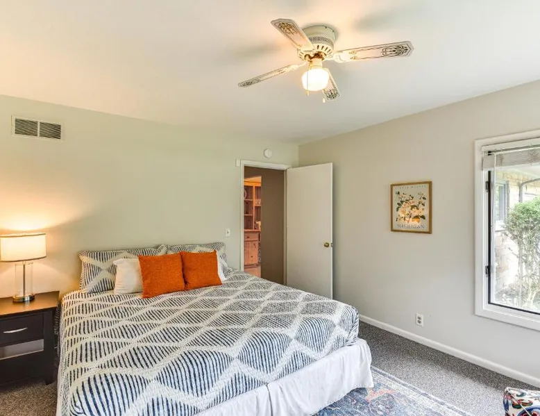 Spacious Accommodations: Charming Union Pier Home with Deck Half-Mi to Beach in Union Pier offers three bedrooms and three bathrooms. The living room features a dining table and comfortable seating areas. Modern Amenities: Guests enjoy free WiFi, air-conditioning, and a fully equipped kitchen with a coffee machine, dishwasher, and microwave. Additional amenities include a washing machine, patio, and outdoor dining area. Convenient Location: Located 29 mi from South Bend Regional Airport, the property provides easy access to local attractions. Paid on-site parking is available for guests. Highly Rated by Guests: The holiday home receives high ratings for its spaciousness and excellent facilities, ensuring a pleasant and comfortable stay. This spacious holiday home is consisted of of 1 living room, 3 separate bedrooms and 3 bathrooms with a bath and free toiletries. Guests will find a stovetop, a refrigerator, a dishwasher and kitchenware in the well-equipped kitchen. The holiday home also has a barbecue. This holiday home is air-conditioned and features a flat-screen TV with cable channels, a washing machine, a private entrance and a coffee machine. The unit offers 5 beds.