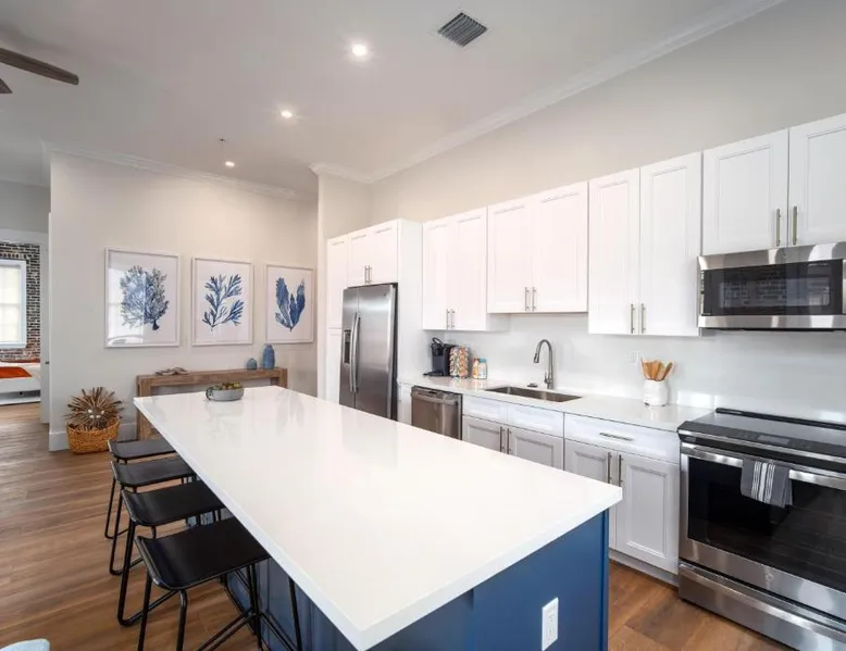 Spacious Accommodations: Harbor House Suite A in Key West offers a spacious holiday home with four bedrooms and four bathrooms. The property features a living room, dining area, and outdoor dining space. Modern Amenities: Guests enjoy free WiFi, air-conditioning, a fully equipped kitchen, washing machine, and a work desk. Additional amenities include a dishwasher, microwave, TV, and a sofa bed. Prime Location: Located in the city center, the holiday home is 3.1 mi from Key West International Airport. Nearby attractions include Simonton Street Beach (4-minute walk), Key West Aquarium (few steps), and Mallory Square (656 feet). Local Activities: Water sports are available in the surrounding area, providing opportunities for relaxation and adventure. Featuring a private entrance, this air-conditioned apartment consists of 1 living room, 4 separate bedrooms and 4 bathrooms with a bath or a shower and a hairdryer. The well-fitted kitchen features a refrigerator, a dishwasher, kitchenware and an oven. The spacious apartment provides a washing machine, a tea and coffee maker, a seating area, a TV with cable channels, as well as sea views. The unit offers 8 beds.