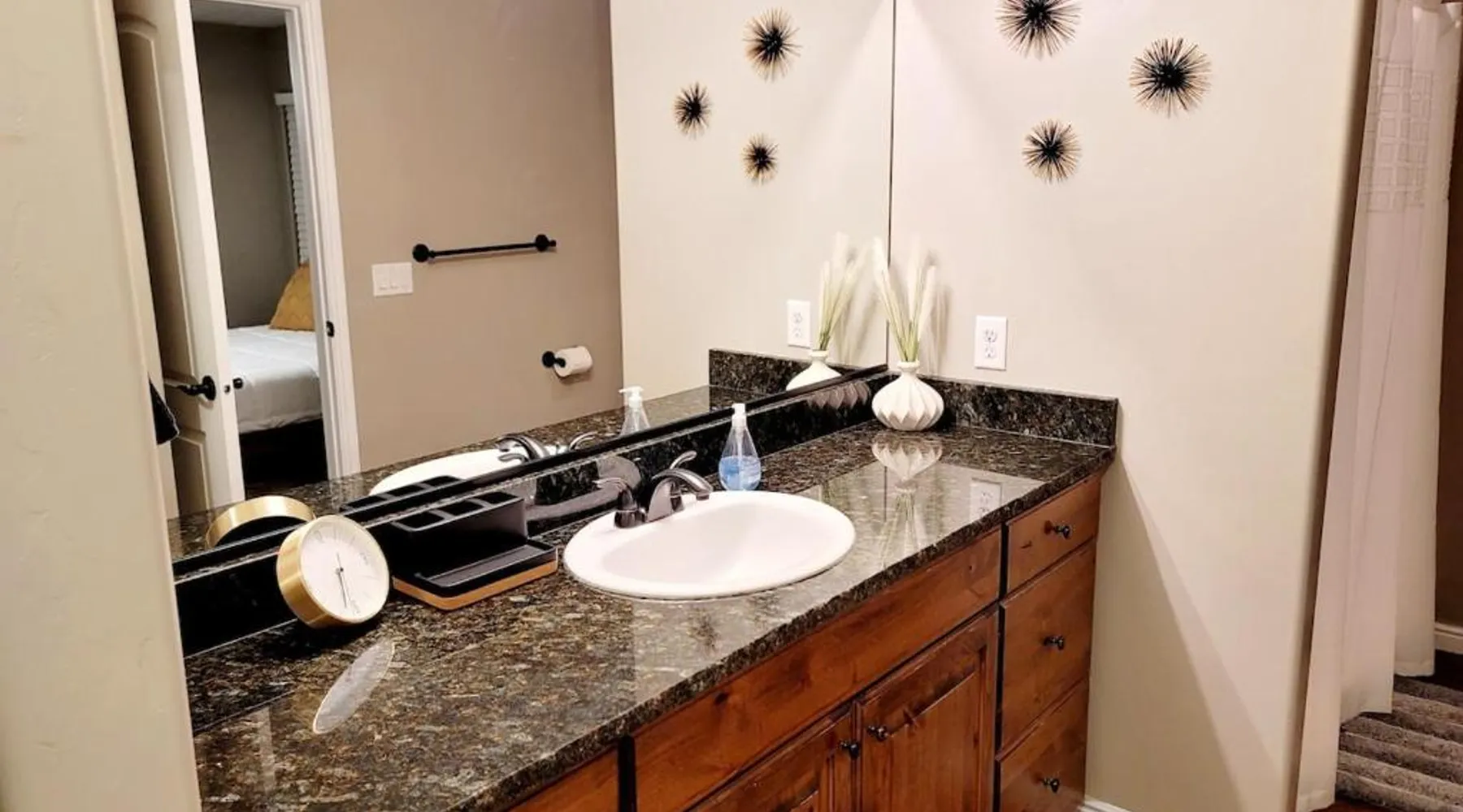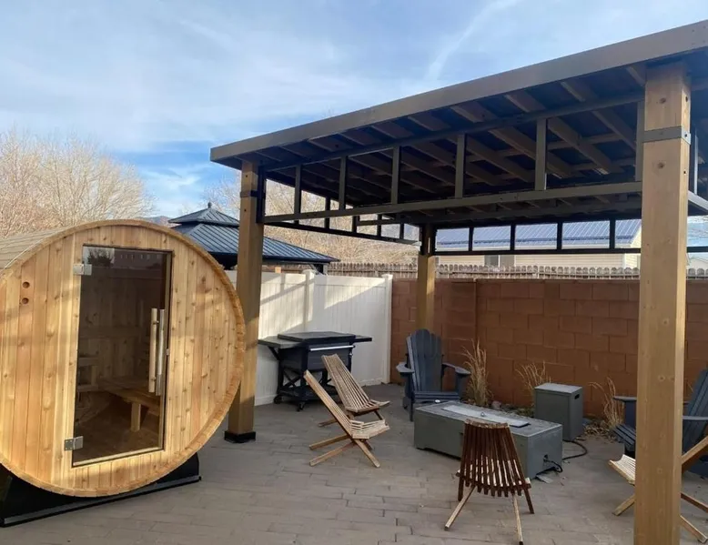 Spacious Holiday Home in Cedar City: Cedar Getaway offers a spacious holiday home in Cedar City, Utah. The property features a garden and free WiFi, ensuring a comfortable stay. Modern Amenities: Guests can enjoy air-conditioning, a hot tub, balcony, washing machine, fully equipped kitchen, sauna, private pool, tea and coffee maker, hairdryer, refrigerator, microwave, dishwasher, TV, private entrance, oven, and stovetop. Convenient Location: Located 1.2 mi from Cedar City Regional Airport, the property is 2.2 mi from Southern Utah University, 2.7 mi from Eccles Coliseum, and 24 mi from Cedar Breaks National Monument. Guests will have a special experience as this holiday home provides a private pool, a hot tub and a sauna. In the fully equipped kitchen, guests will find a stovetop, a refrigerator, a dishwasher and an oven. The spacious holiday home offers air conditioning, a washing machine, a private entrance, a tea and coffee maker and a flat-screen TV. The unit offers 1 bed.