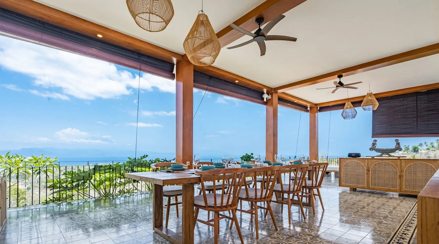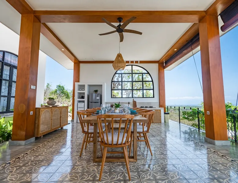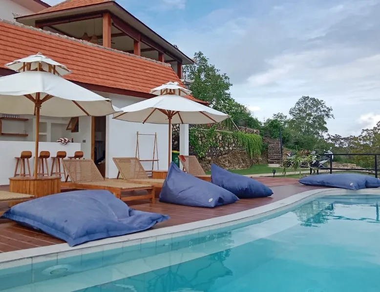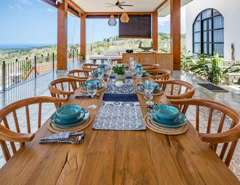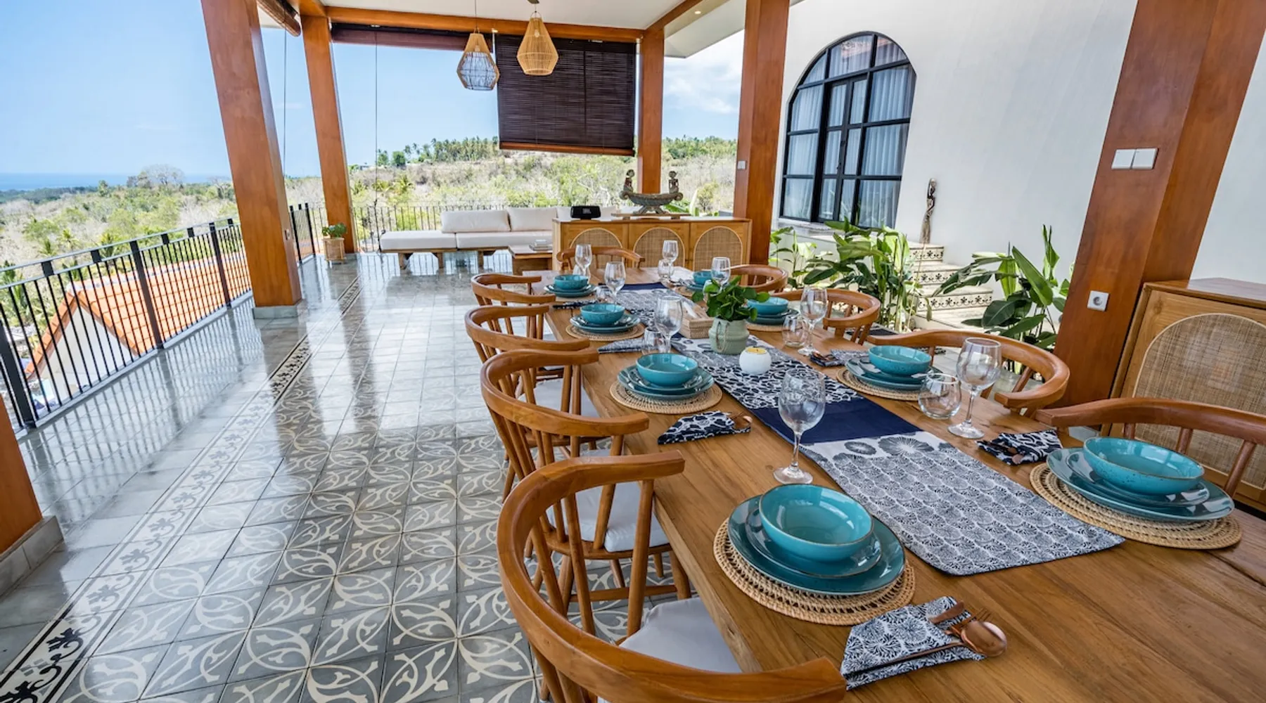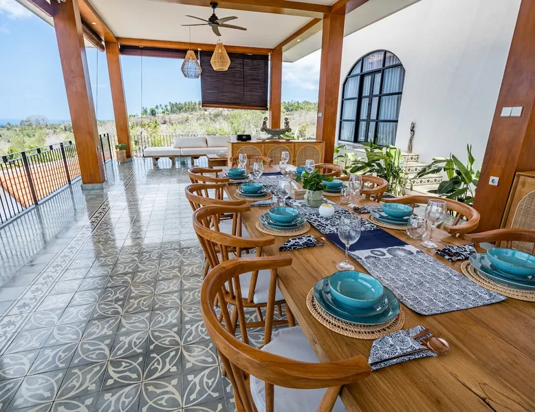 Full-service Villa - let us take care of everything for you Delicious breakfast included Amazing views of Mount Agung, the island and the ocean Large private swimming pool 2000 sqm of gardens The space 🏡 Villa Bhoemi Highlights: 🛏️ 4 King Size Spacious Bedrooms: Comfortably sleeps 8-12 guests, ideal for families or groups. 🛀 4 ensuite Bathrooms: Designed with calming elements for a relaxing experience. 🪴 Open Living Room: Enjoy breathtaking views from our spacious and airy living area. 🍳 Fully Operational Kitchen: Equipped with everything you need for cooking up delicious meals. 👙 Large Infinity Pool: Dive into our stunning pool, complete with a pool bar and sundeck for ultimate relaxation. 🏕️ 2000 sqm of Green Gardens: Explore and unwind in our lush, expansive gardens. ☕️ Delicious Breakfast Included: Start your day with a complimentary breakfast prepared by our staff. 👩🏽🍳 Fully Staffed: Our attentive team is here to ensure your stay is comfortable and enjoyable--including to help you plan the trip/activities in Nusa Penida and help you arrange the transportation around the island. 🏝️ Best View in Nusa Penida: Marvel at the island’s most spectacular views from our villa. 🌅🌄 Sunrise & Sunset Vistas: Experience the beauty of both sunrise and sunset! Completely off-grid, with our own water source and soon-to-be-installed solar power. We have some books and games for you to enjoy, or you can use our yoga mats for a sunrise yoga session on our sun deck. We even have a tent for those who like to camp in our garden! High speed Starlink internet access is provided for the whole area of the villa. Guest access Our villa is a spacious 4-bedroom property set on a beautiful 2000-square-meter hillside. You can easily reach us by car or motorbike. Our location is 10mins drive from the main road where you can find nice bars and restaurants. We’re about a 15-minute drive from Toya Pakeh harbor (if arriving from Sanur) or 25 minutes from Sampalan harbor (if arriving from Kusamba). If you need any assistance with transportation to or from our place, feel free to reach out—we’re happy to help! Other things to note We are completely off-grid, meaning that we have our own water well and we use solar power and superfast Starlink Internet. It also means that we are in a very peaceful, quiet area of the island, with no restaurants or shops in the direct vicinity. The main road is only a few minutes ride away tho!