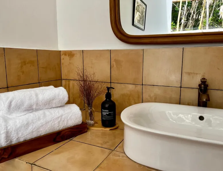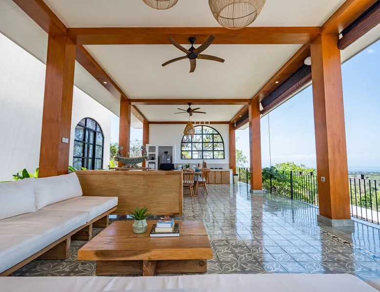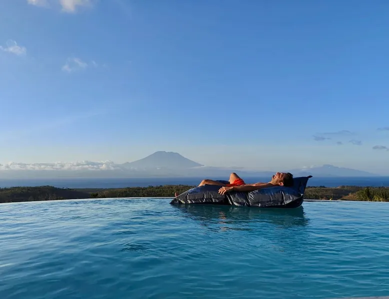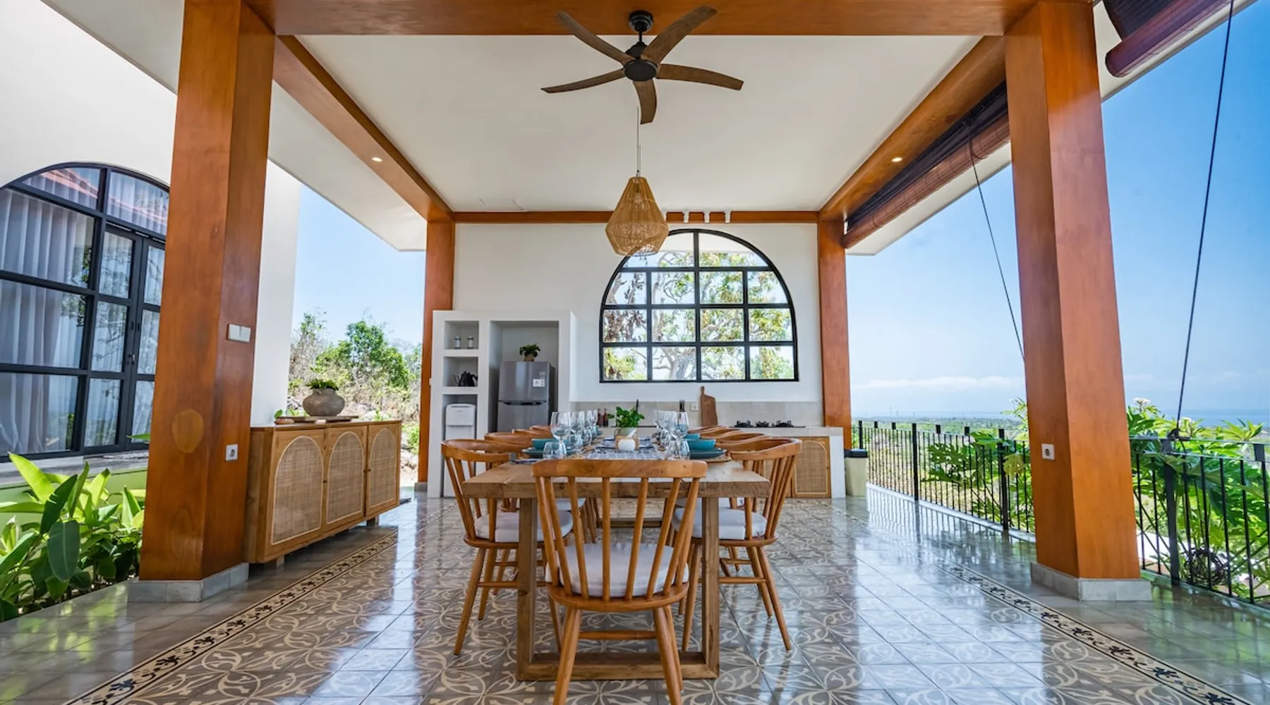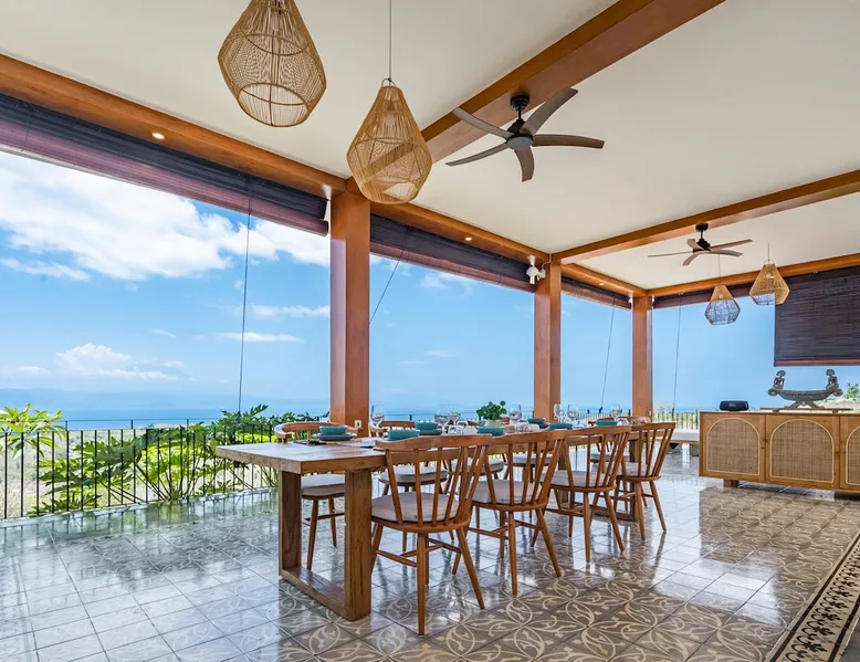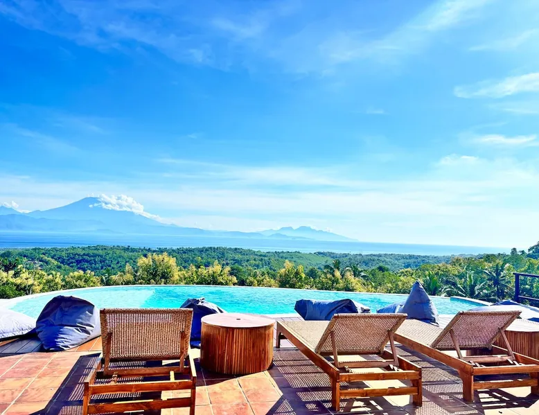 Full-service Villa - let us take care of everything for you Delicious breakfast included Amazing views of Mount Agung, the island and the ocean Large private swimming pool 2000 sqm of gardens The space 🏡 Villa Bhoemi Highlights: 🛏️ 4 King Size Spacious Bedrooms: Comfortably sleeps 8-12 guests, ideal for families or groups. 🛀 4 ensuite Bathrooms: Designed with calming elements for a relaxing experience. 🪴 Open Living Room: Enjoy breathtaking views from our spacious and airy living area. 🍳 Fully Operational Kitchen: Equipped with everything you need for cooking up delicious meals. 👙 Large Infinity Pool: Dive into our stunning pool, complete with a pool bar and sundeck for ultimate relaxation. 🏕️ 2000 sqm of Green Gardens: Explore and unwind in our lush, expansive gardens. ☕️ Delicious Breakfast Included: Start your day with a complimentary breakfast prepared by our staff. 👩🏽🍳 Fully Staffed: Our attentive team is here to ensure your stay is comfortable and enjoyable--including to help you plan the trip/activities in Nusa Penida and help you arrange the transportation around the island. 🏝️ Best View in Nusa Penida: Marvel at the island’s most spectacular views from our villa. 🌅🌄 Sunrise & Sunset Vistas: Experience the beauty of both sunrise and sunset! Completely off-grid, with our own water source and soon-to-be-installed solar power. We have some books and games for you to enjoy, or you can use our yoga mats for a sunrise yoga session on our sun deck. We even have a tent for those who like to camp in our garden! High speed Starlink internet access is provided for the whole area of the villa. Guest access Our villa is a spacious 4-bedroom property set on a beautiful 2000-square-meter hillside. You can easily reach us by car or motorbike. Our location is 10mins drive from the main road where you can find nice bars and restaurants. We’re about a 15-minute drive from Toya Pakeh harbor (if arriving from Sanur) or 25 minutes from Sampalan harbor (if arriving from Kusamba). If you need any assistance with transportation to or from our place, feel free to reach out—we’re happy to help! Other things to note We are completely off-grid, meaning that we have our own water well and we use solar power and superfast Starlink Internet. It also means that we are in a very peaceful, quiet area of the island, with no restaurants or shops in the direct vicinity. The main road is only a few minutes ride away tho!