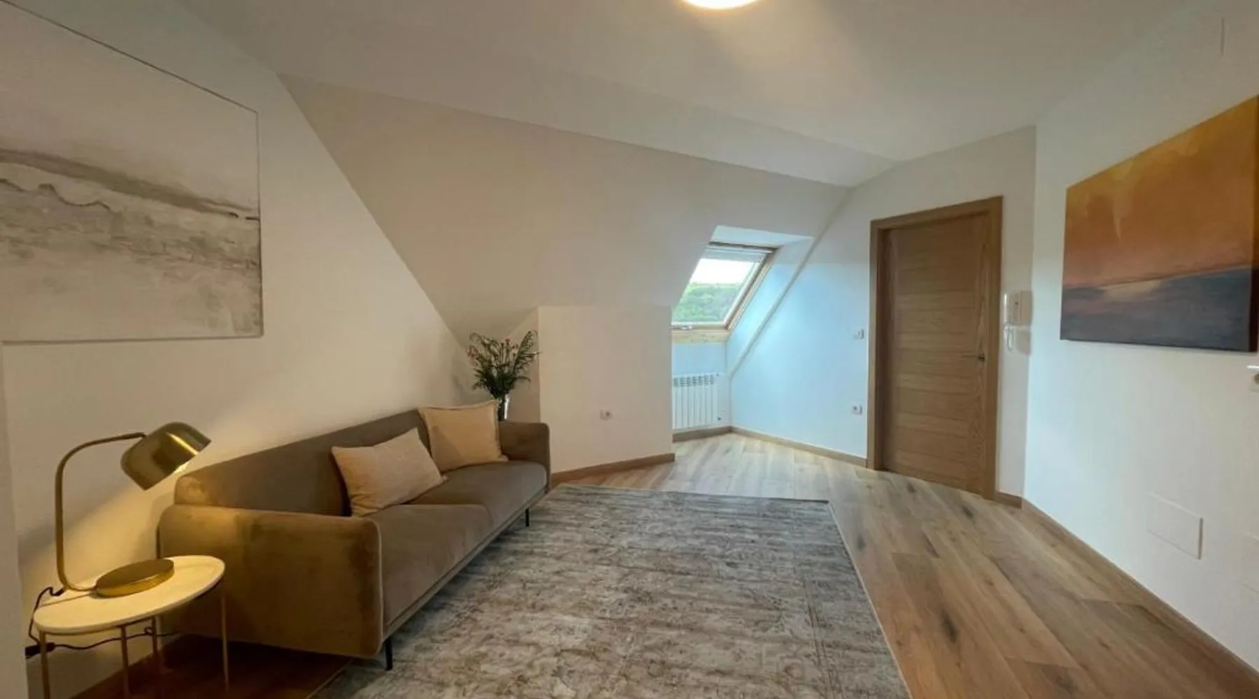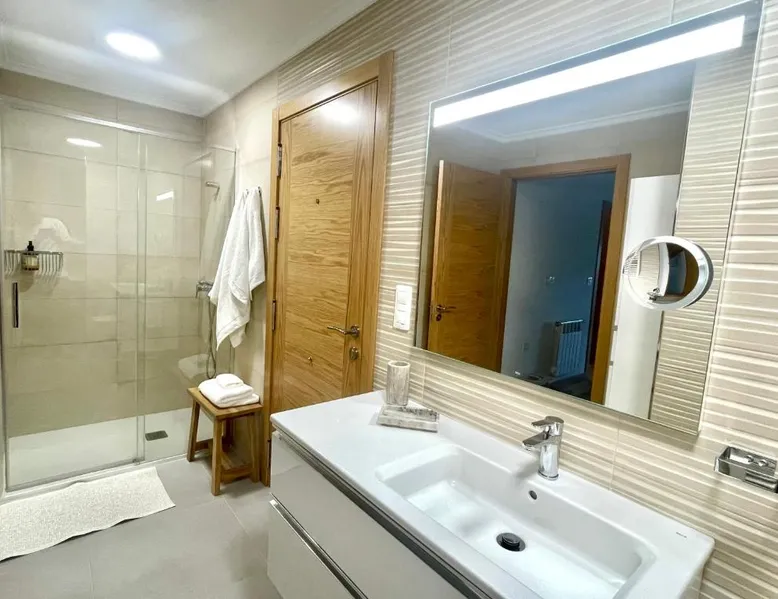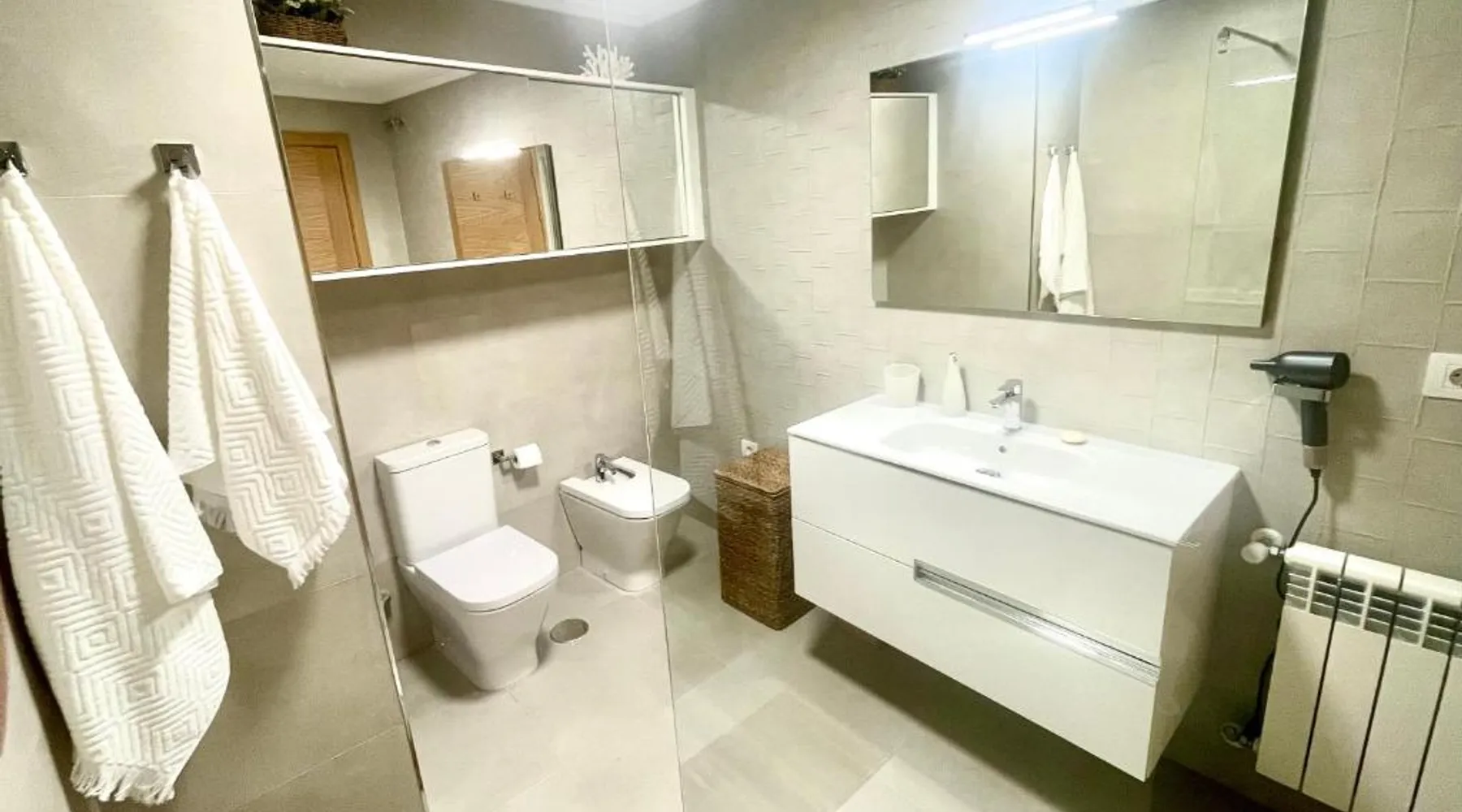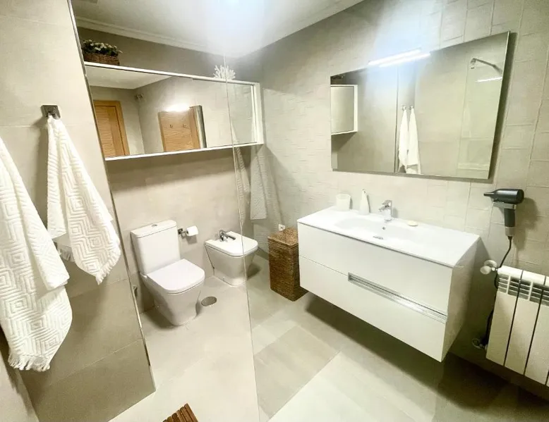 Spacious Accommodations: Duplex FARO in Chantada offers a spacious apartment with two bedrooms and two bathrooms. The living room features a sofa and a dining area, providing ample space for relaxation and entertainment. Modern Amenities: Guests enjoy free WiFi, a elevator, and a fully equipped kitchenette with a coffee machine, dishwasher, and oven. Additional amenities include a washing machine, work desk, and mountain views. Convenient Location: Located 62 mi from Santiago de Compostela Airport, the property is 24 mi from As Burgas Thermal Springs and Auditorium - Exhibition Center. Pazo da Touza Golf is 27 mi away. Highly rated by guests. This spacious apartment consists of 2 living rooms, 2 separate bedrooms and 2 bathrooms with a shower and a bidet. The well-fitted kitchen features a stovetop, a refrigerator, a dishwasher and kitchenware. The apartment provides a flat-screen TV, a washing machine, a private entrance, a tea and coffee maker as well as mountain views. The unit offers 2 beds.