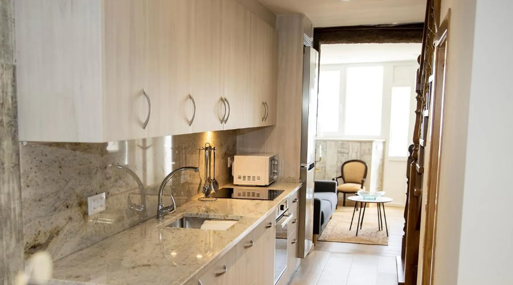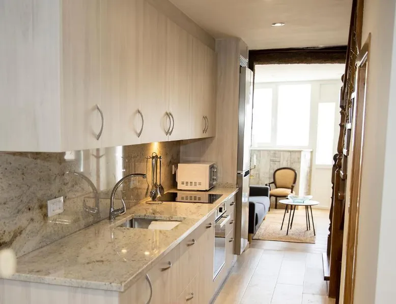 Historic Setting: Casa Larán in Chantada offers a recently renovated holiday home housed in a historic building. The property features a garden and terrace, providing relaxing outdoor spaces. Comfortable Accommodations: The holiday home includes two bedrooms and two bathrooms, along with a spacious living room. Family rooms offer ample space for all guests. Modern Amenities: Guests enjoy free WiFi, air-conditioning, a fully equipped kitchen, washing machine, and free private parking. Additional amenities include a dining area, sofa bed, and work desk. Nearby Attractions: Located 65 mi from Santiago de Compostela Airport, Casa Larán is 25 mi from As Burgas Thermal Springs and Auditorium - Exhibition Center. Pazo da Touza Golf is 28 mi away. Highly rated by guests. The fully equipped kitchen has a stovetop, a refrigerator, a dishwasher and kitchenware. The holiday home features air conditioning, a washing machine, a terrace with garden views as well as a shared bathroom boasting a shower. The unit has 4 beds.